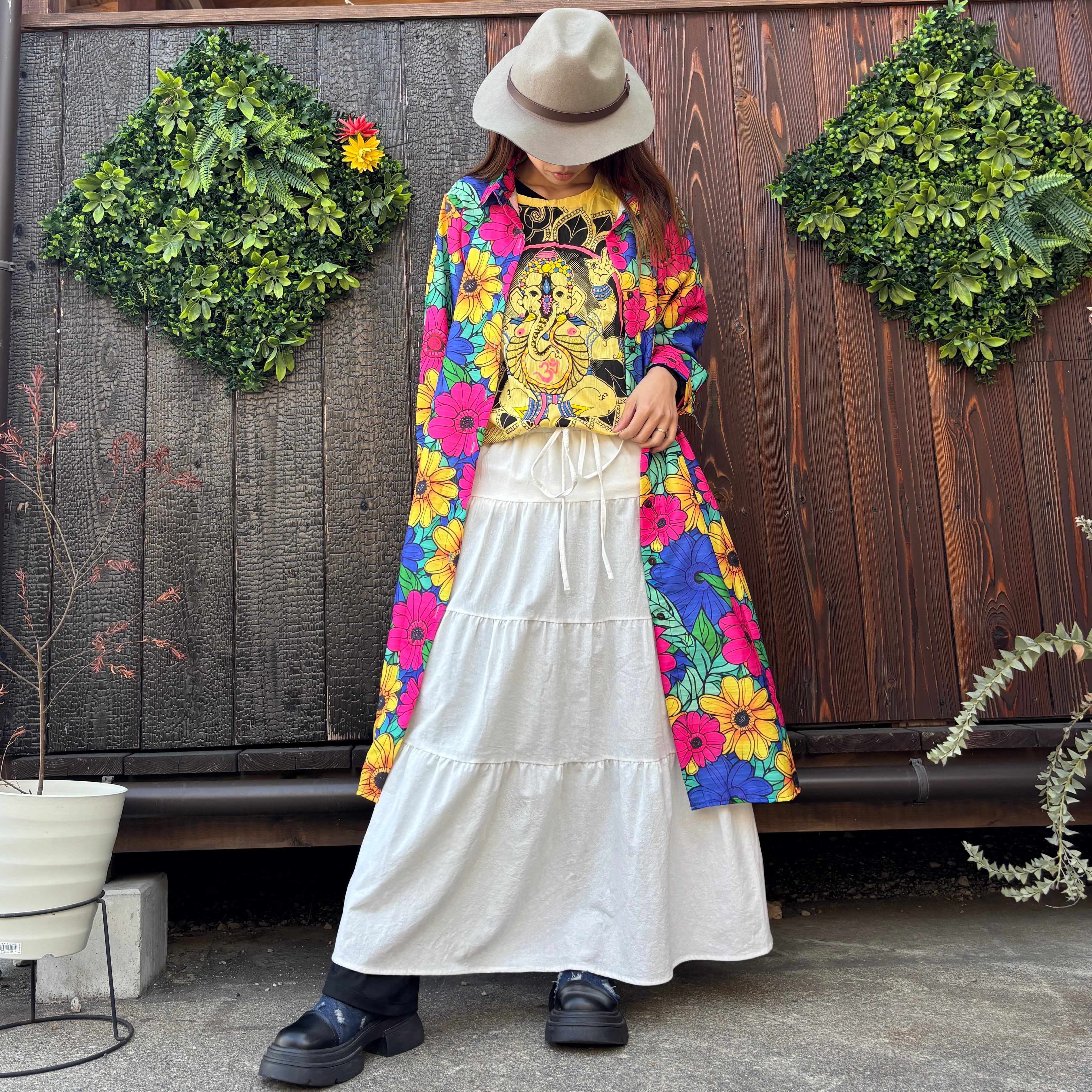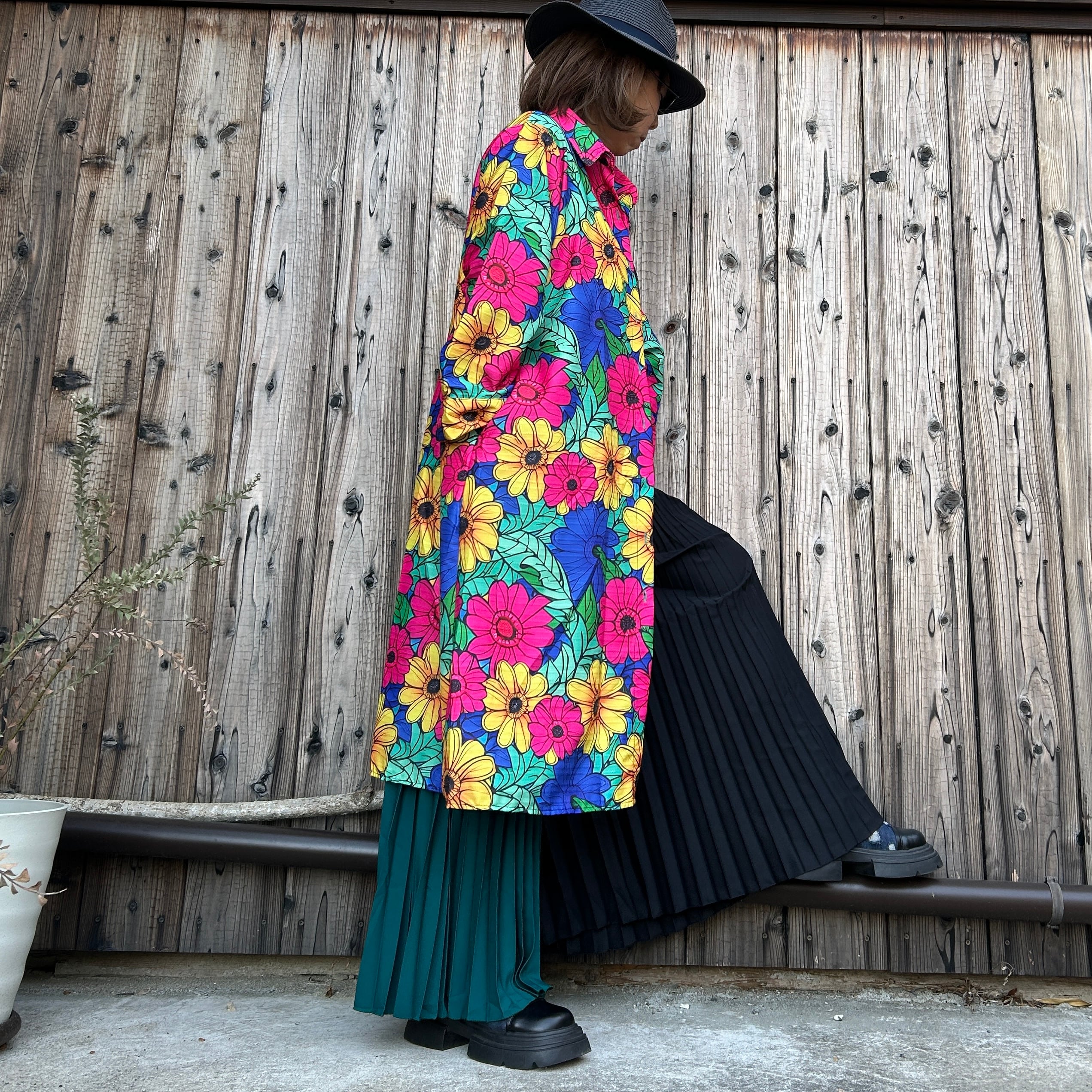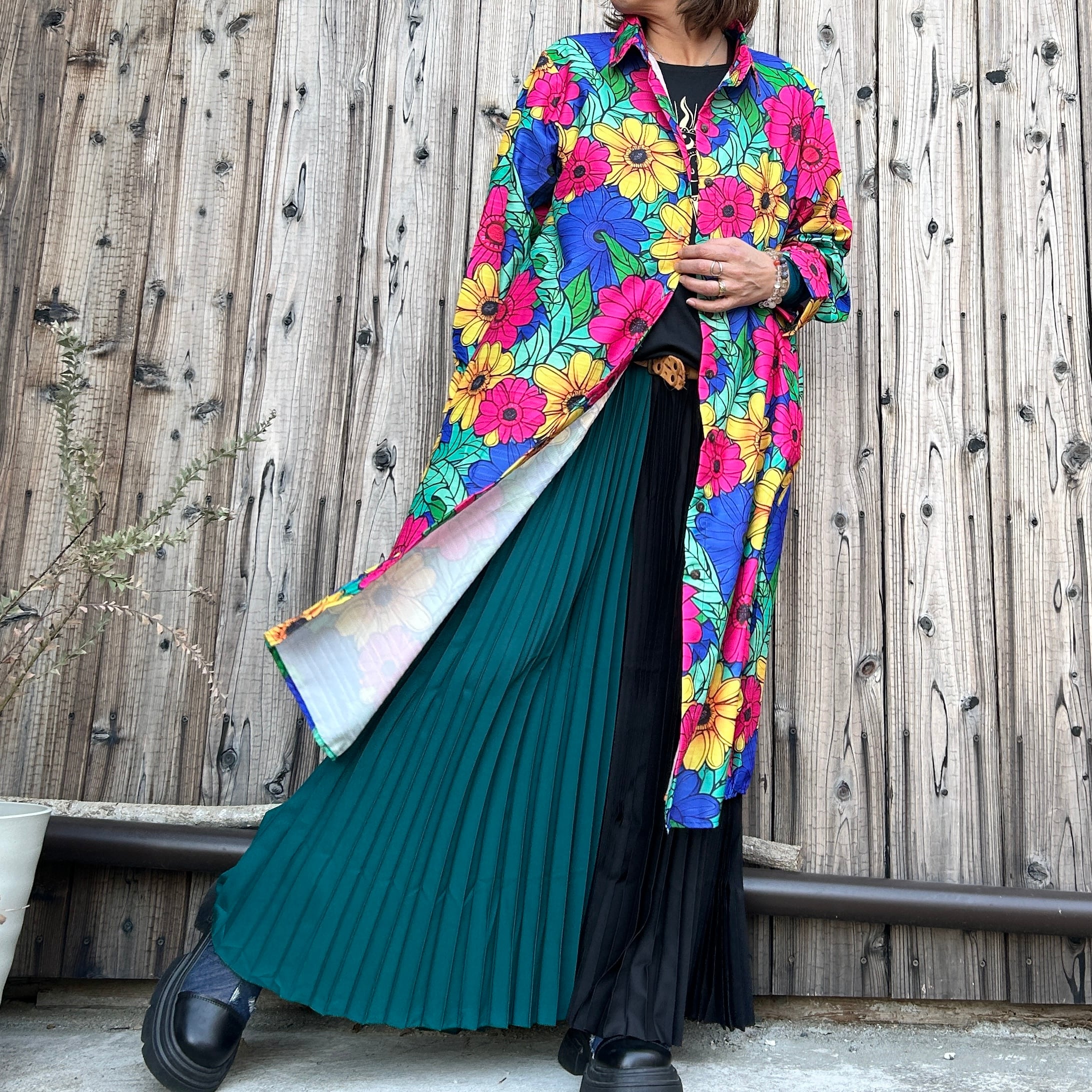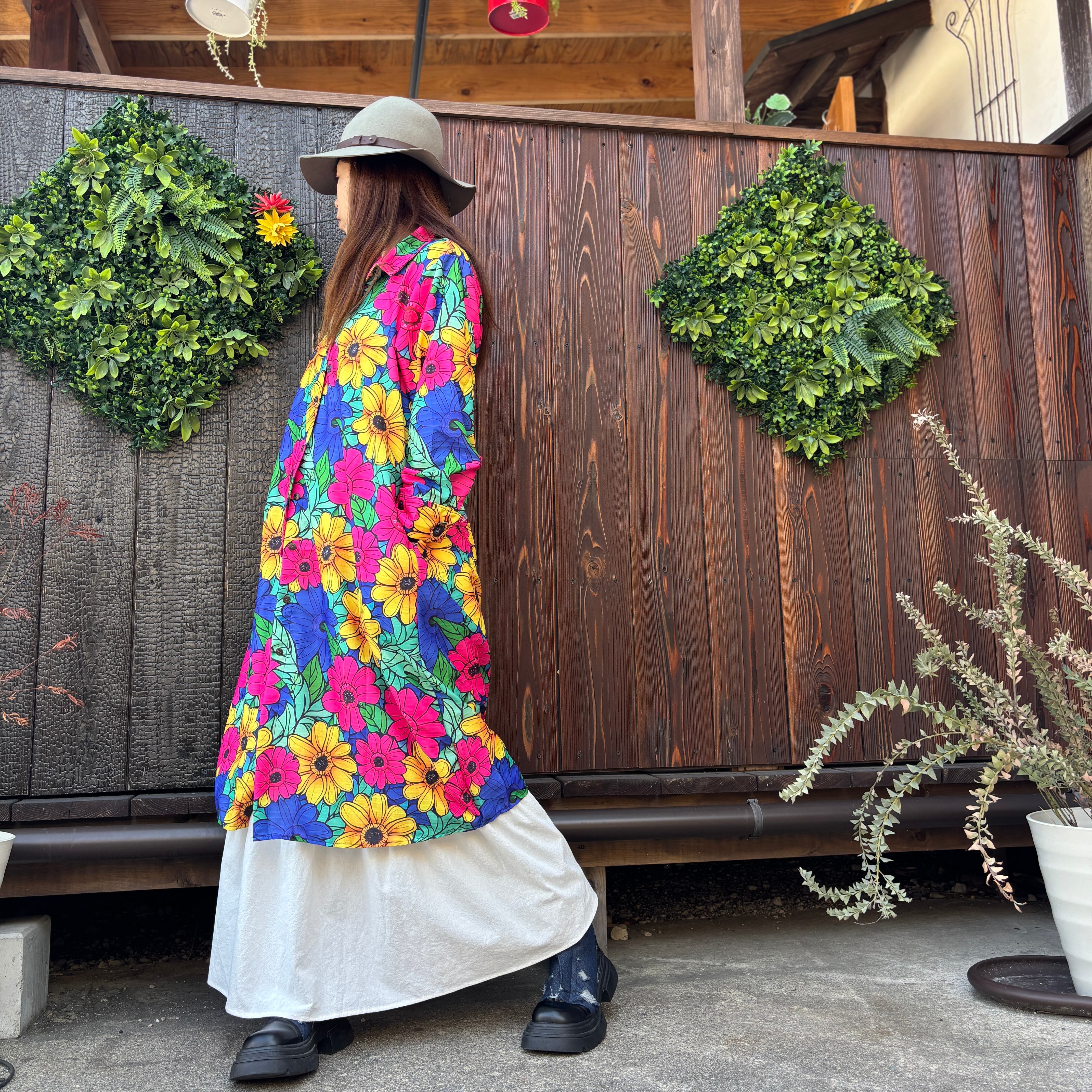カラフル花柄ロングシャツ