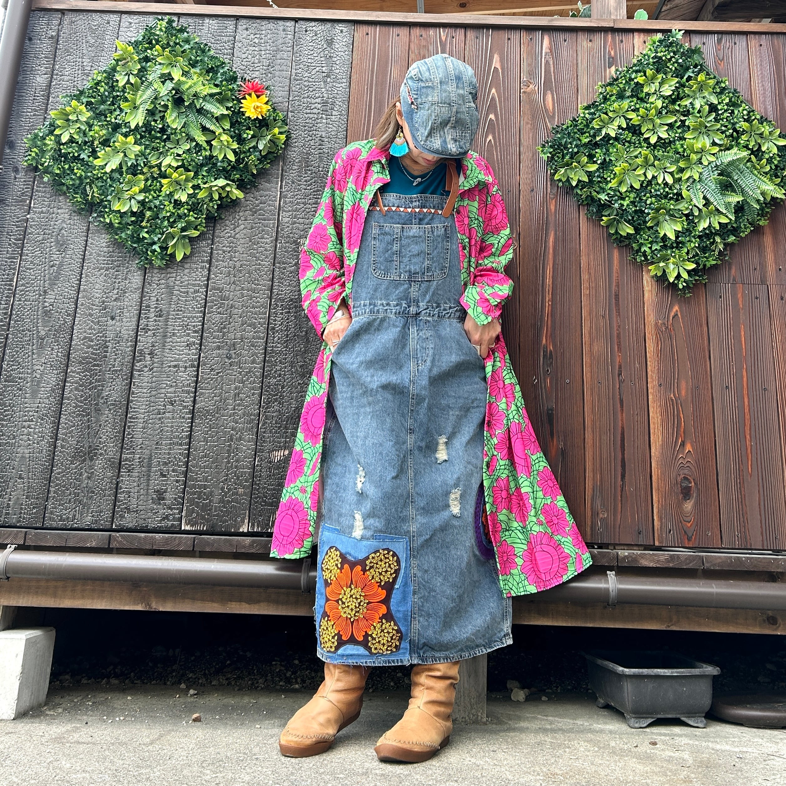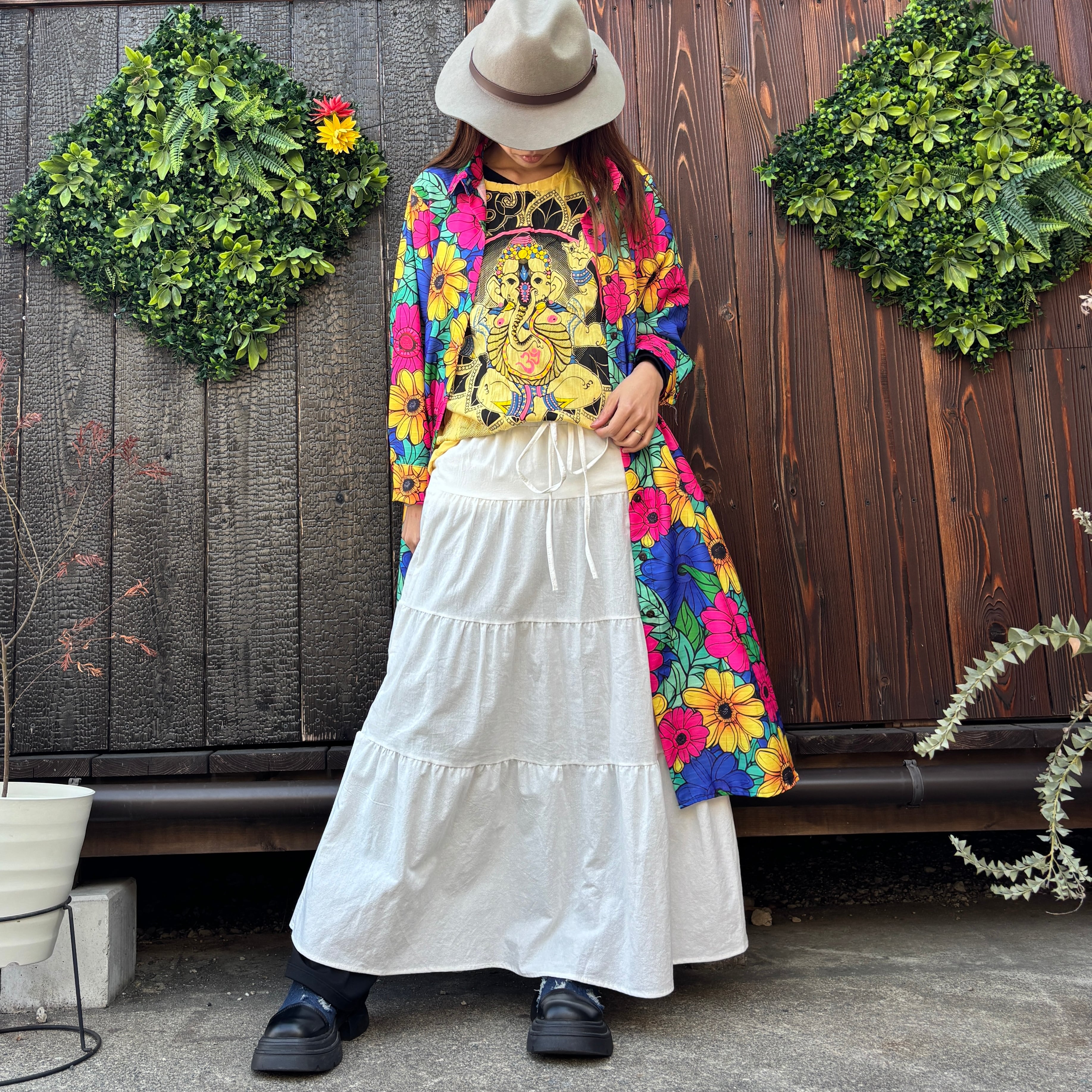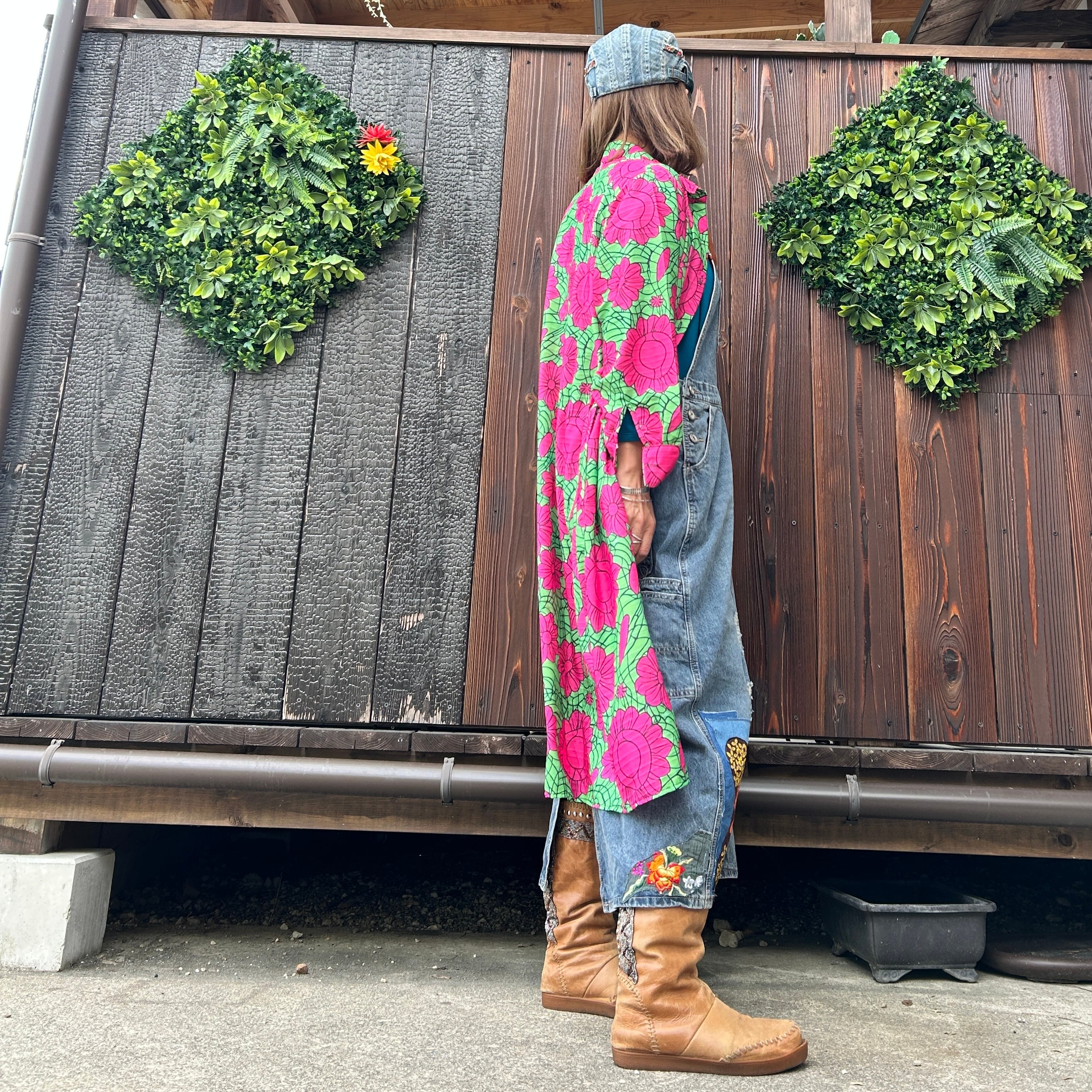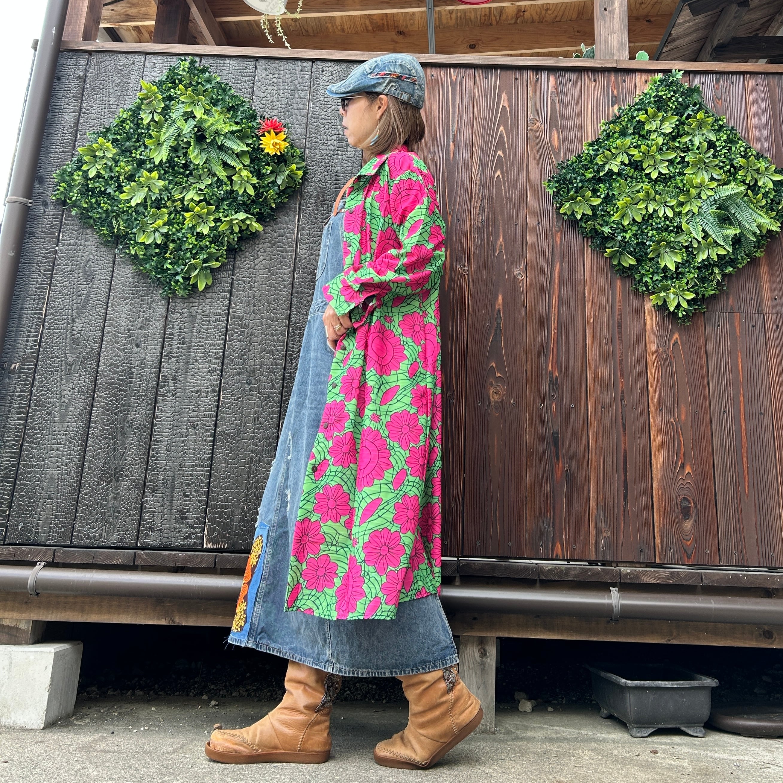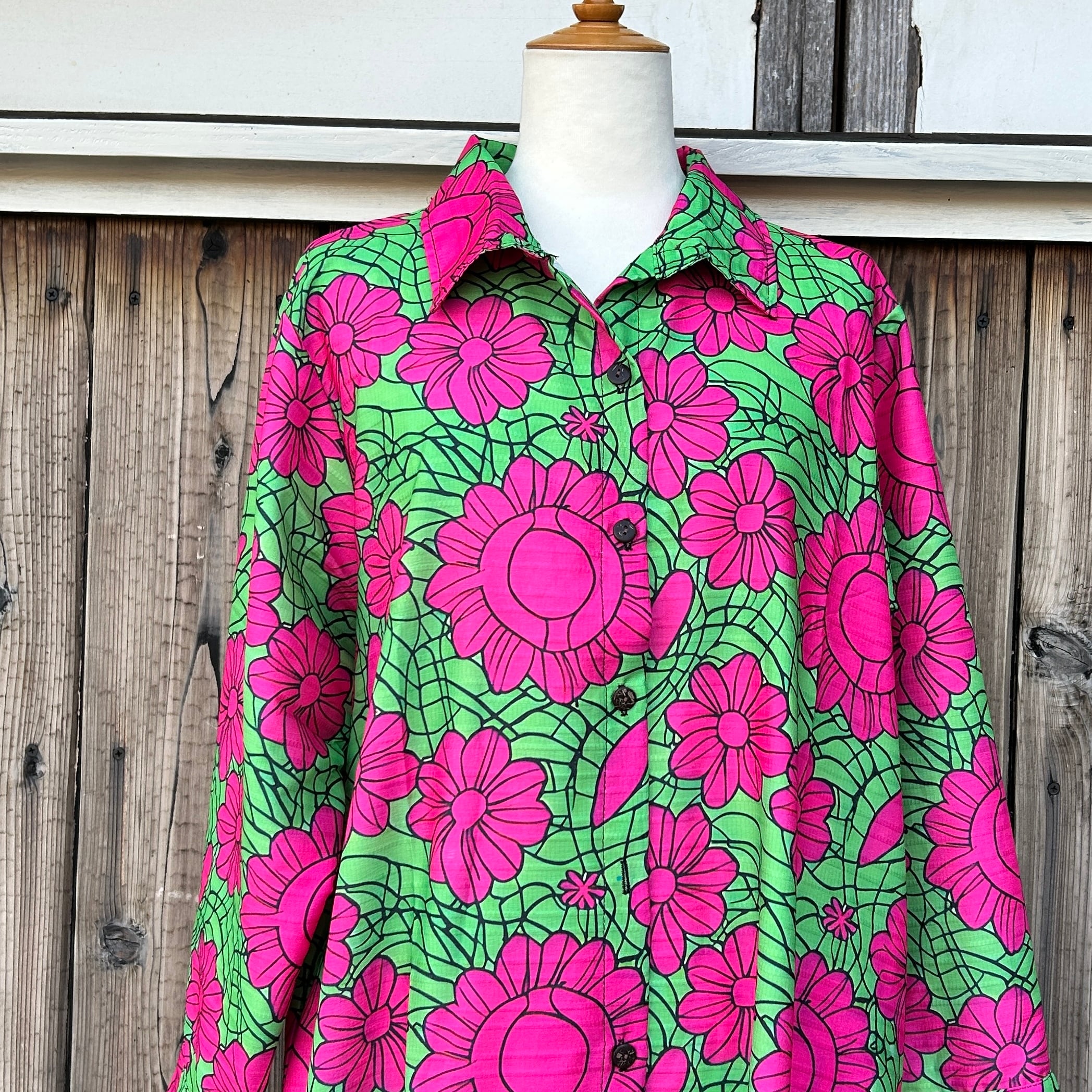 カラフル花柄ロングシャツ