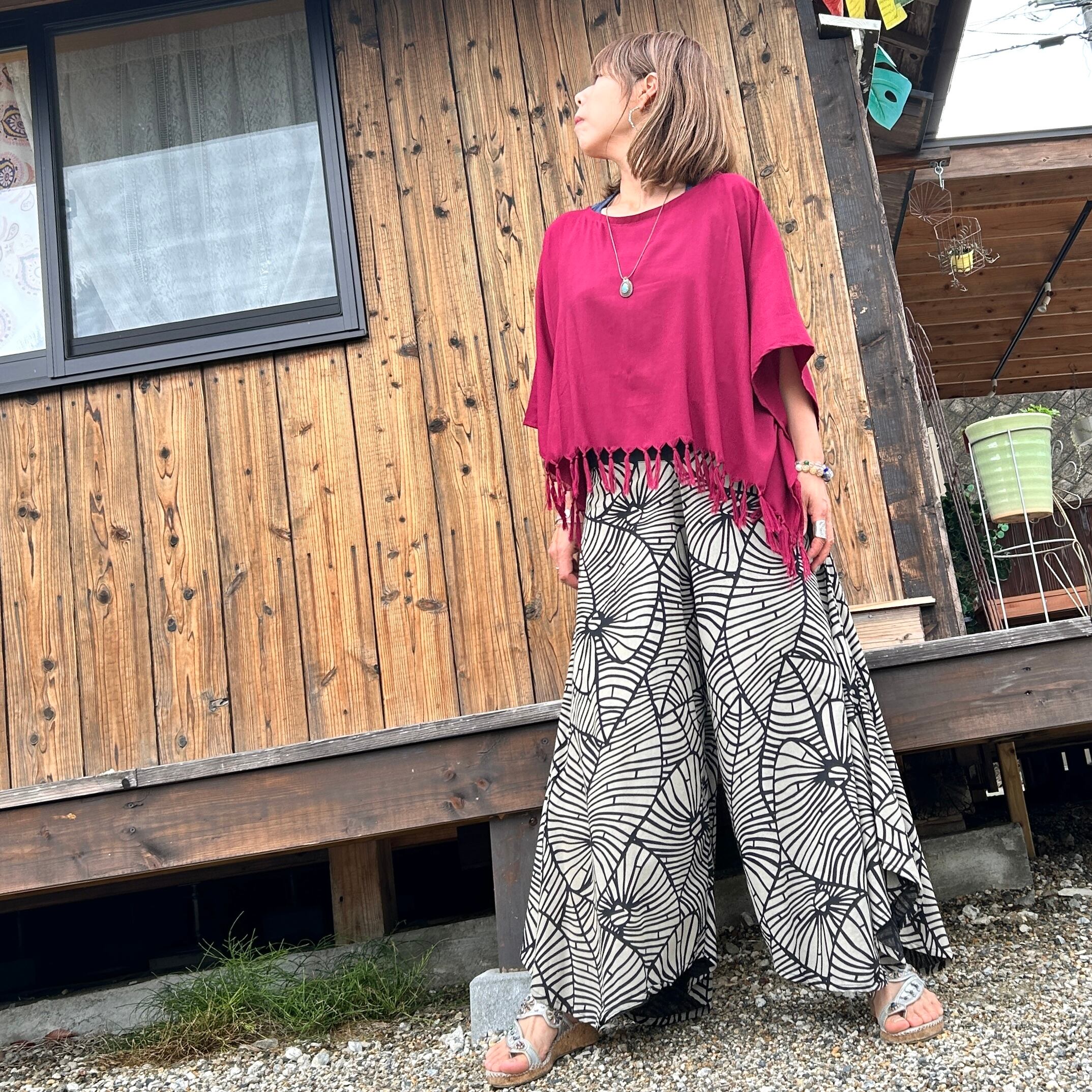 柔らかなレーヨン素材を使用し、フリンジがあしらわれたスタイリッシュなデザインが特徴です。軽やかな着心地で、リラックスした雰囲気を演出してくれます! ■特徴 ゆったりとしたシルエットが体型を気にせずおしゃれを楽しめるポイントです。カジュアルなコーディネートにもぴったりで、デニムやスカートと合わせると、エフォートレスなスタイルが完成します。フリンジが動くたびに揺れ、女性らしい印象を与えてくれます!