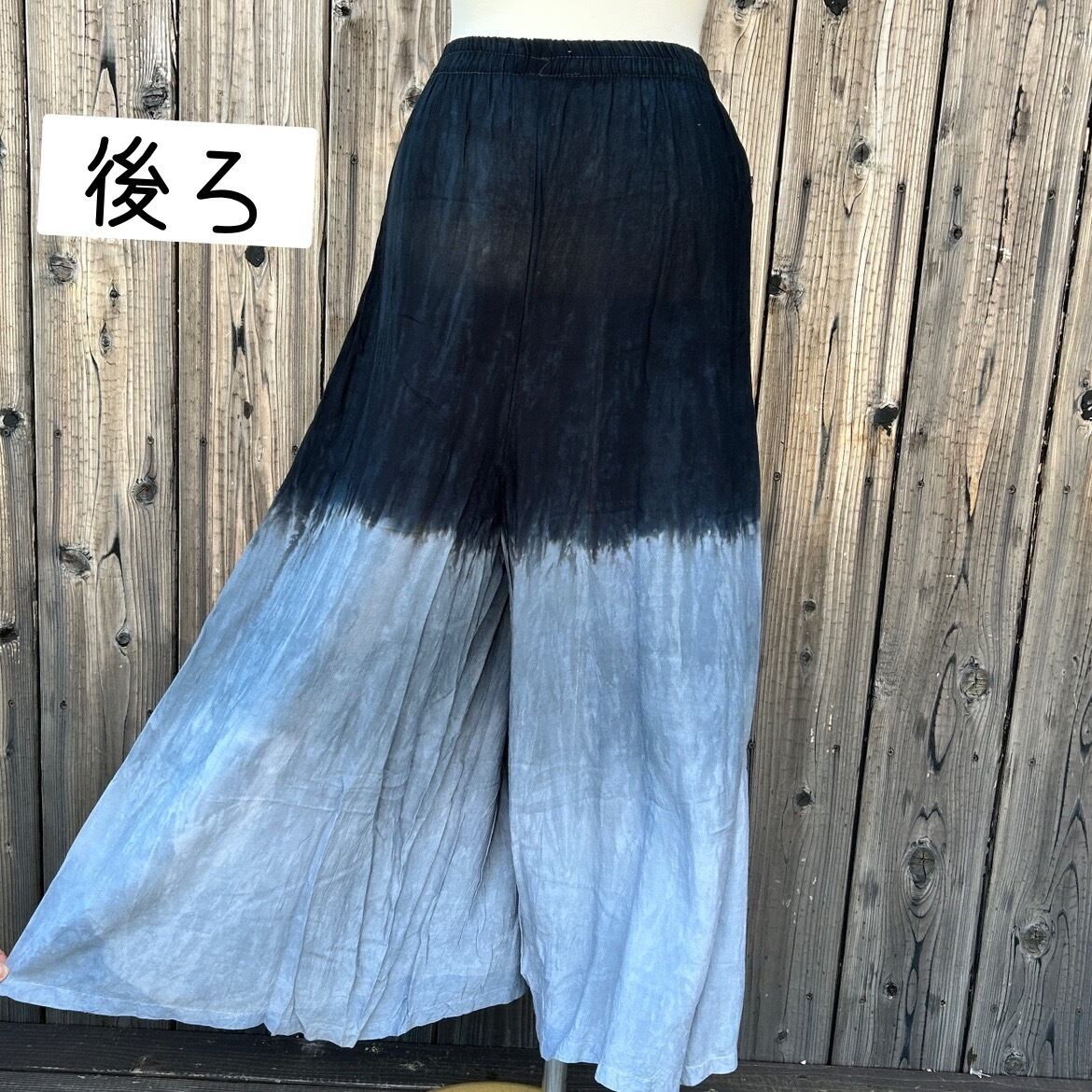 レーヨン生地で作られた柔らかく滑らかな肌触り。ウエストは背中側がゴムシャーリングになっていてゆったりしたはき心地で楽ちんコーデ