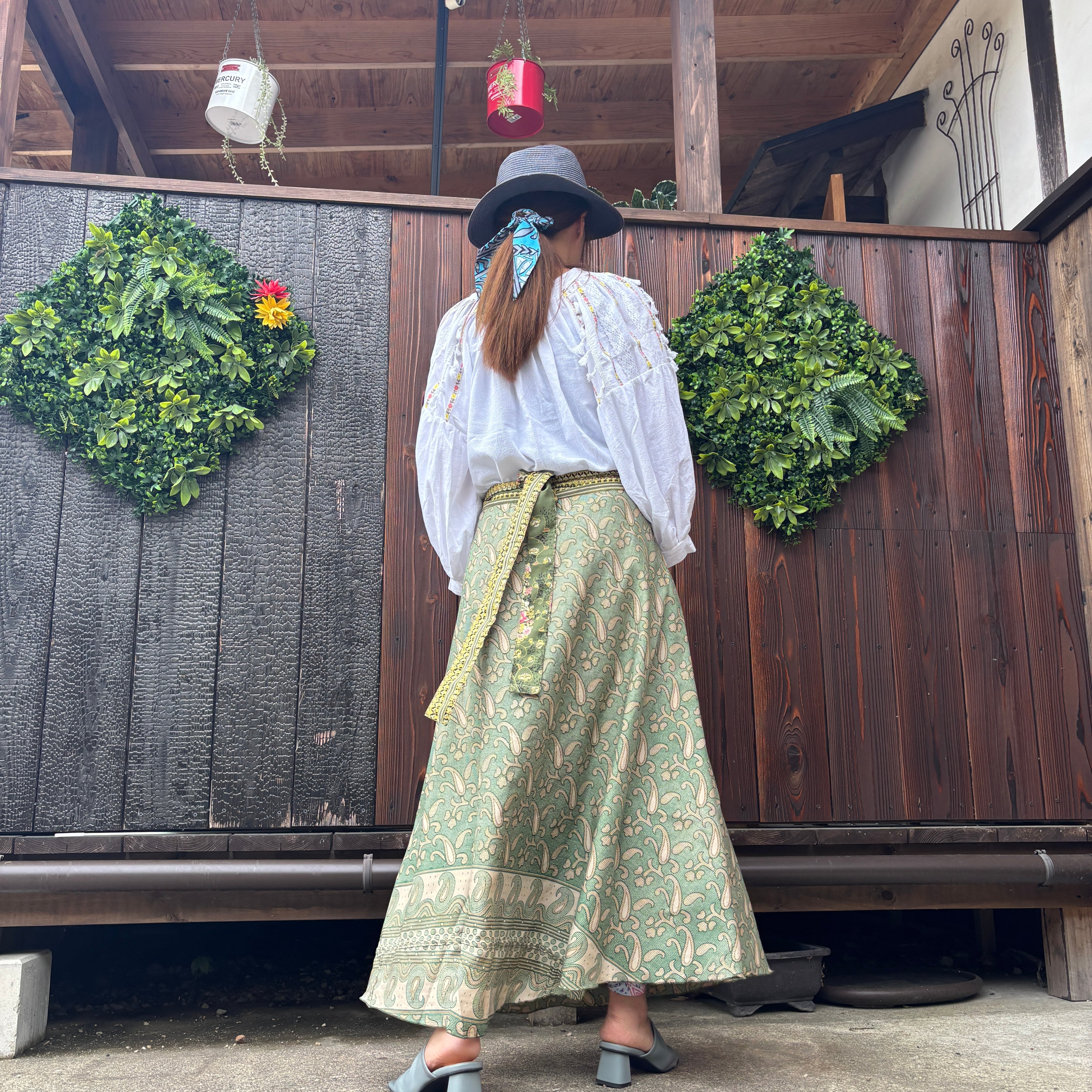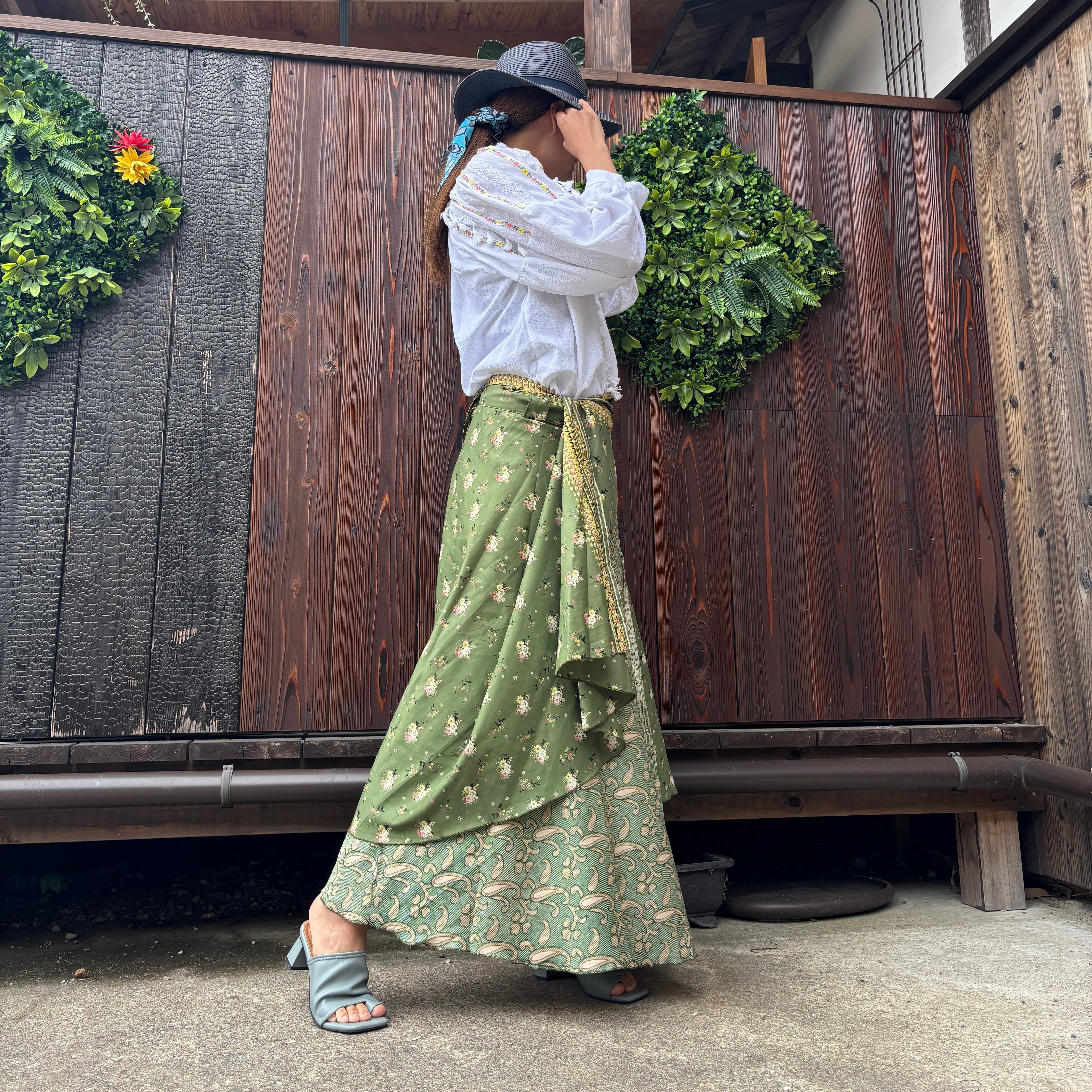 一枚で2通りのコーデが楽しめる、リバーシブルインドサリー巻きスカートです。