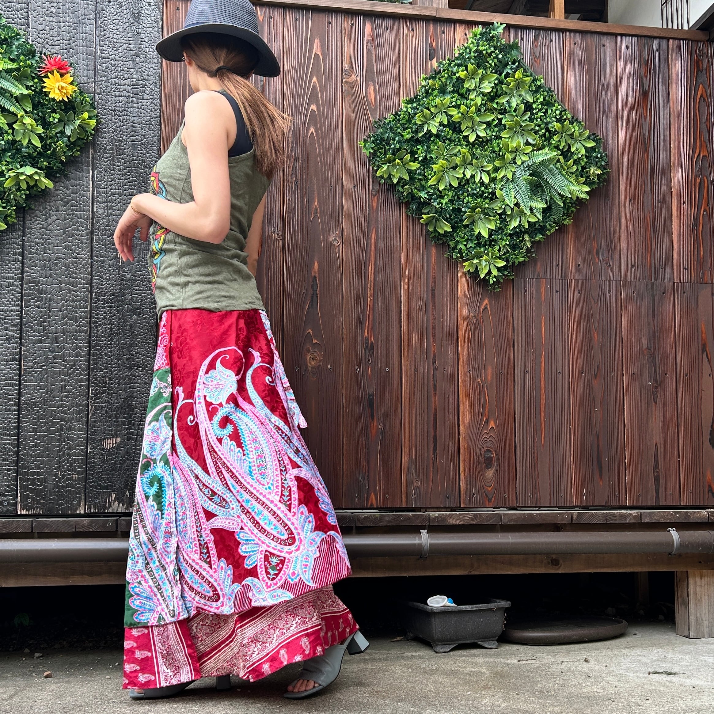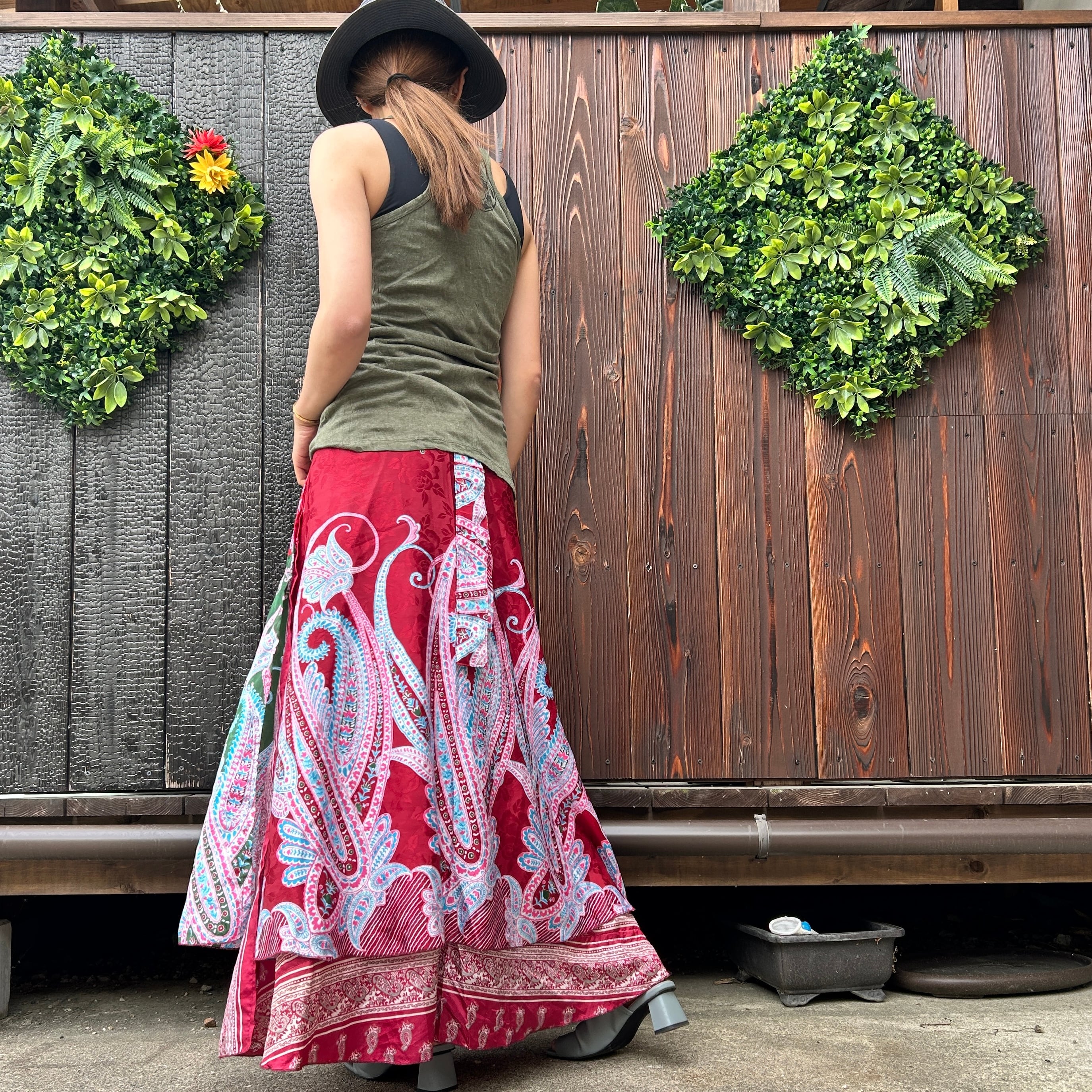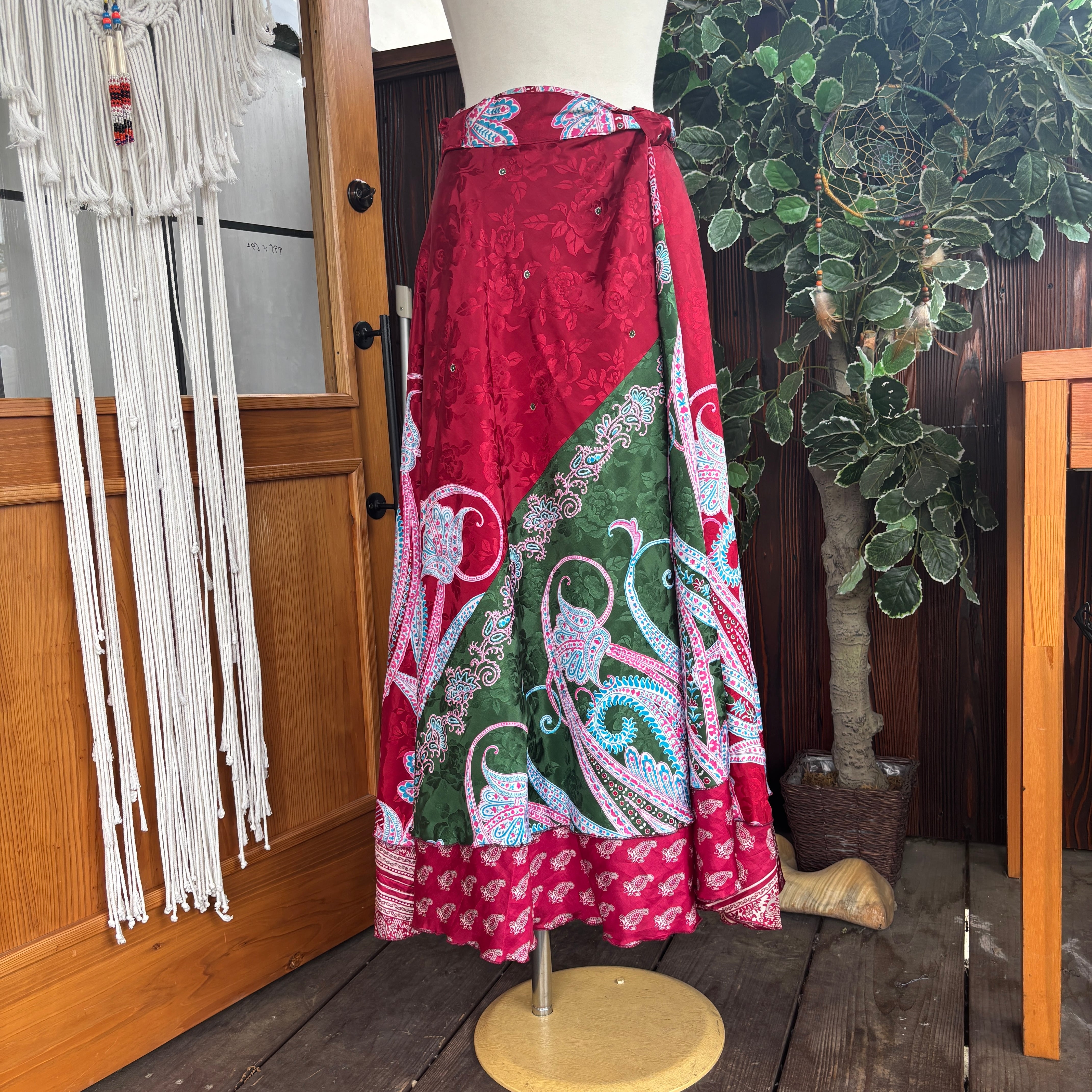 一枚で2通りのコーデが楽しめる、リバーシブルインドサリー巻きスカートです。