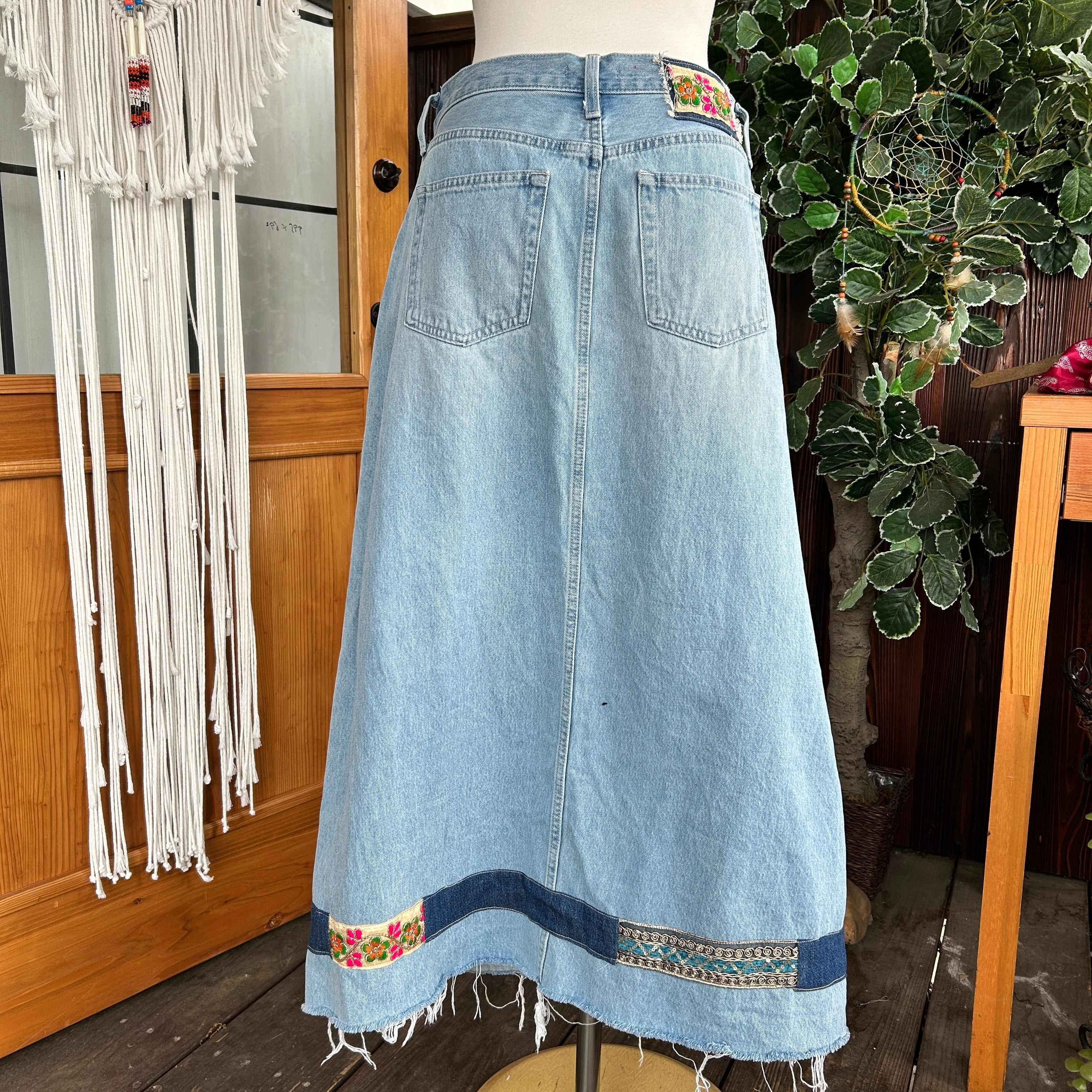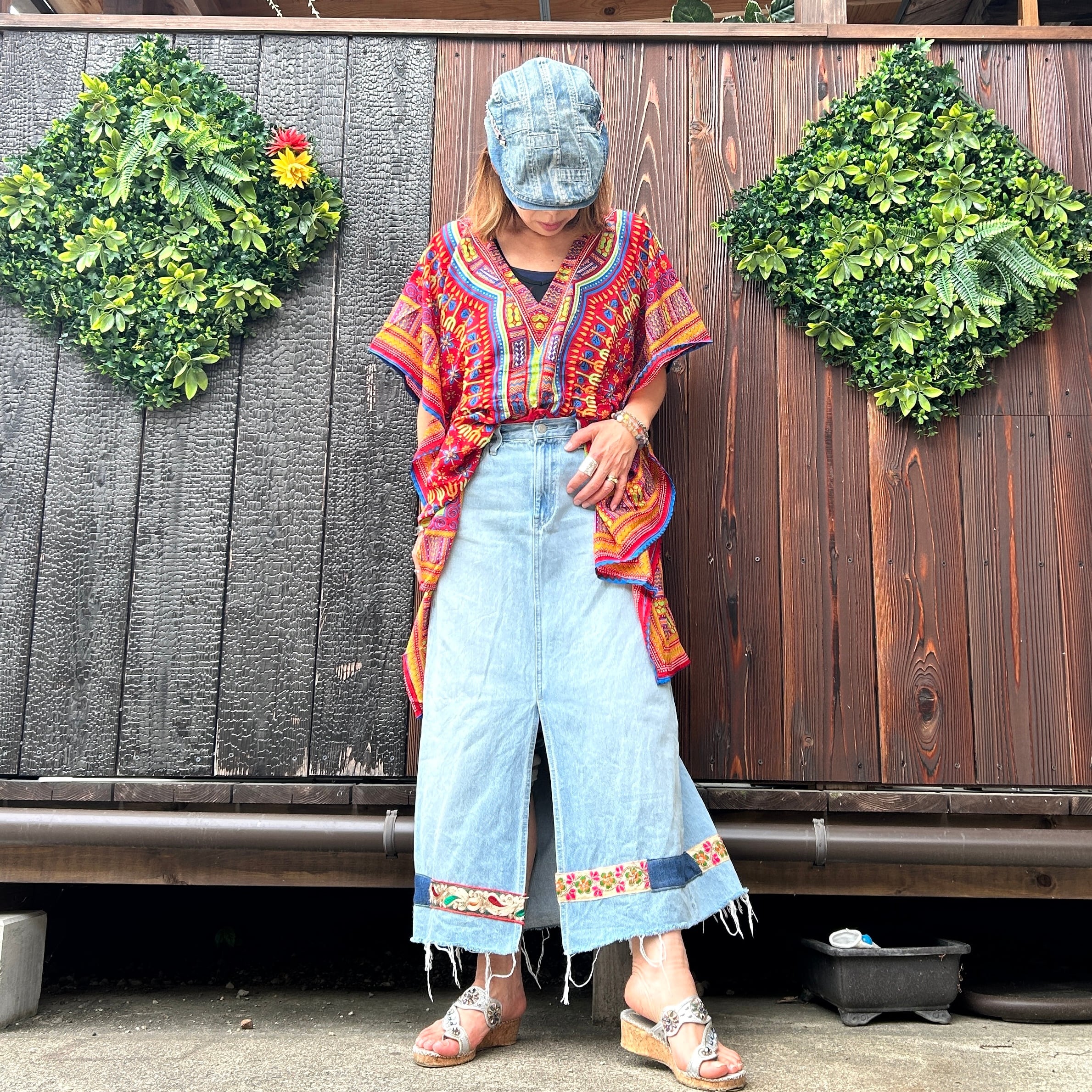 カジュアルさとエスニックな雰囲気を兼ね備えており、無造作に合わせてもお洒落な印象を与えてくれます。デニムの風合いが、シンプルなトップスやアクセサリーとも相性抜群ですので、コーディネートの幅が広がります♪