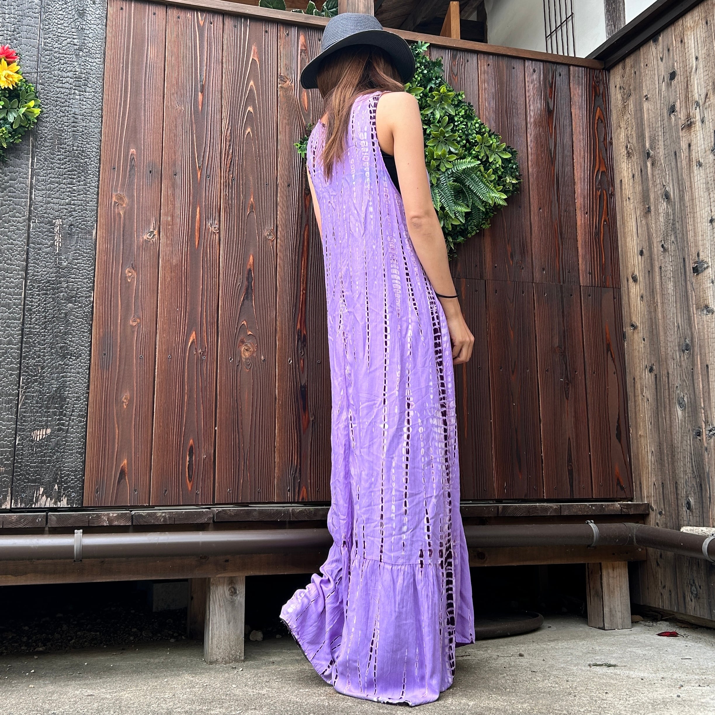 デザイン性抜群のタイダイ裾フリルロングワンピースが登場しました!独特なタイダイ柄が個性的な印象を与え、どんなシーンにもマッチする魅力的なアイテムです。Vネックデザインが首元を美しく見せ、裾フリルがふんわりとしたシルエットを演出します。特別な一枚になること間違いなしです!