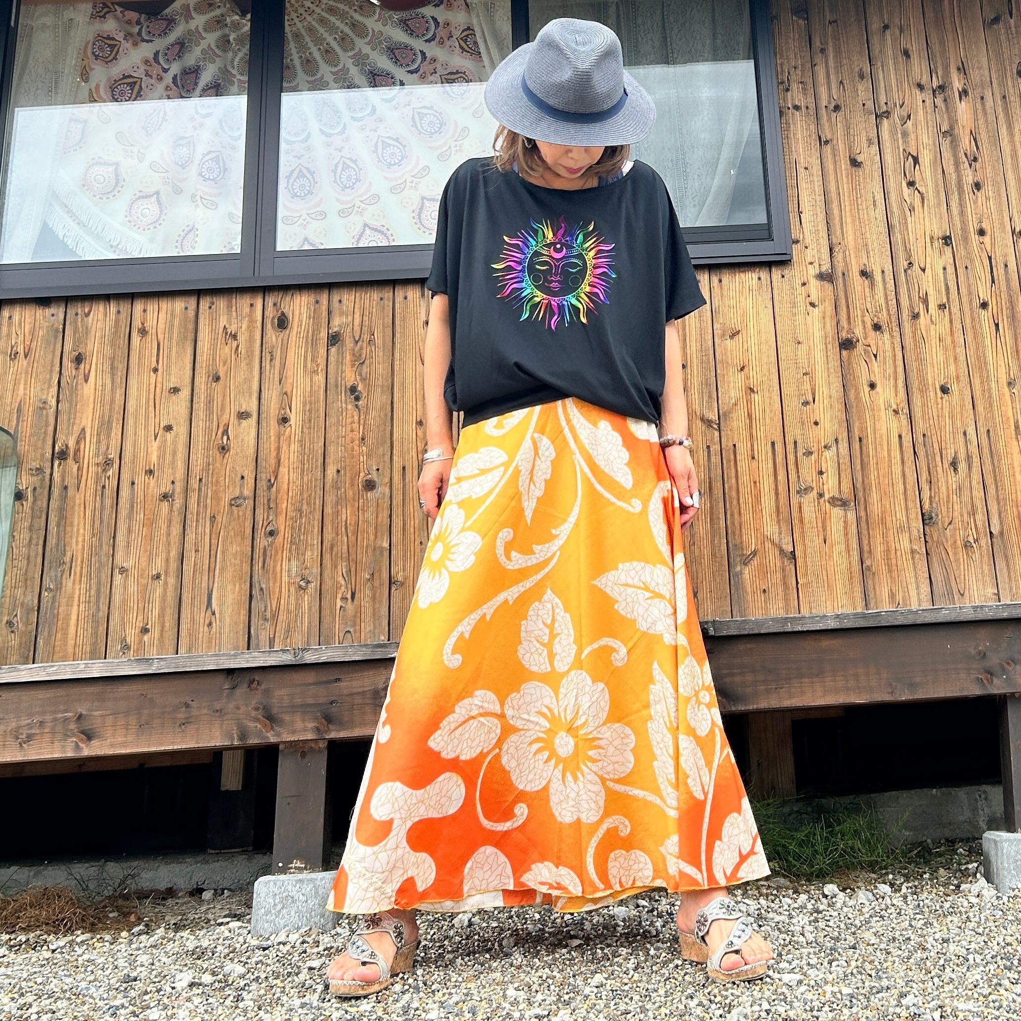 一枚で2通りのコーデが楽しめる、リバーシブルインドサリー巻きスカートです。