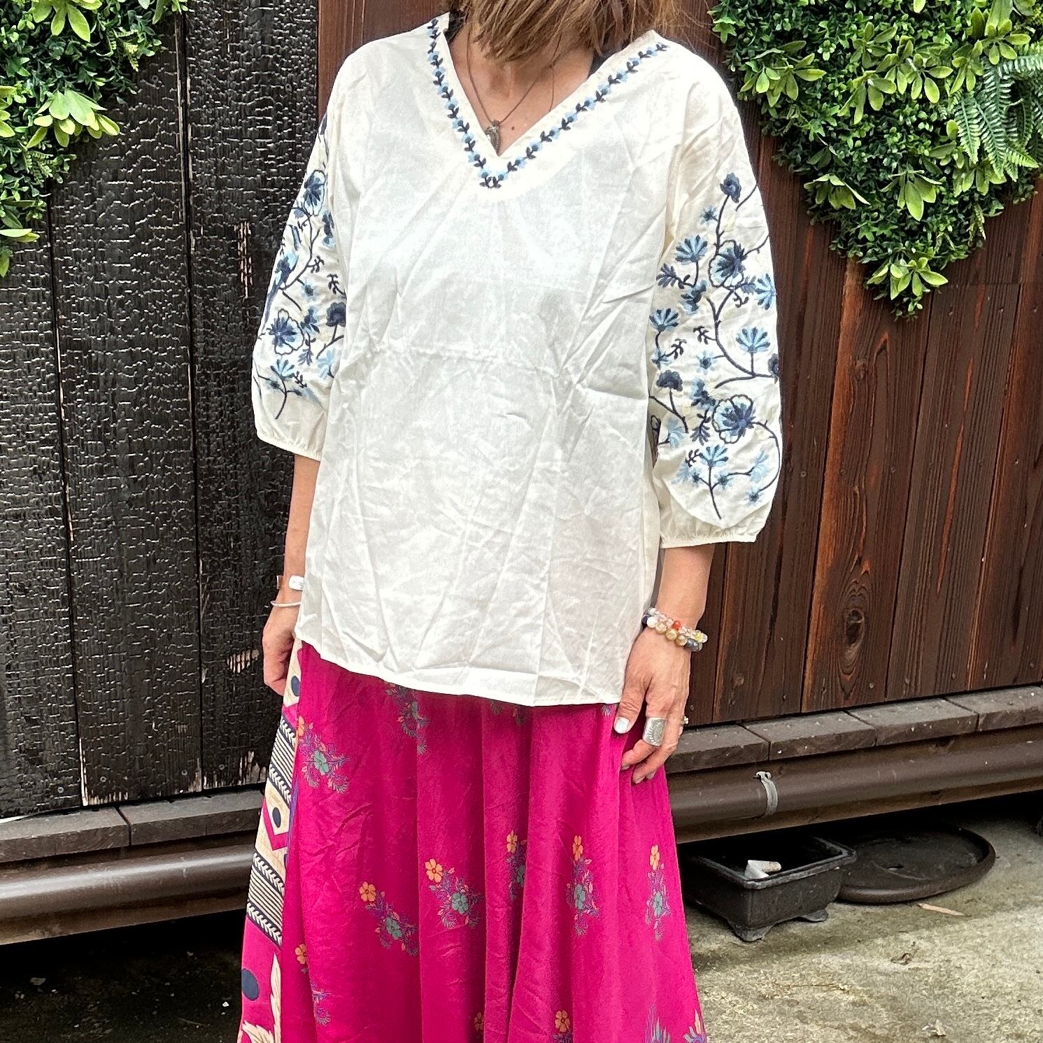 一枚で華やかさを演出する、刺繍ふんわりブラウスです。