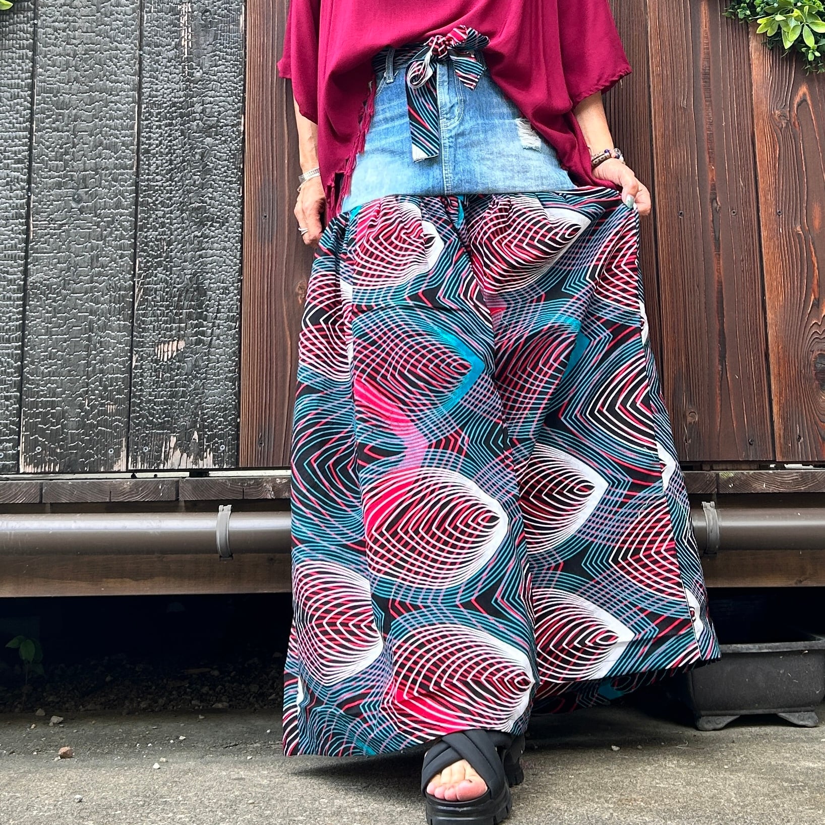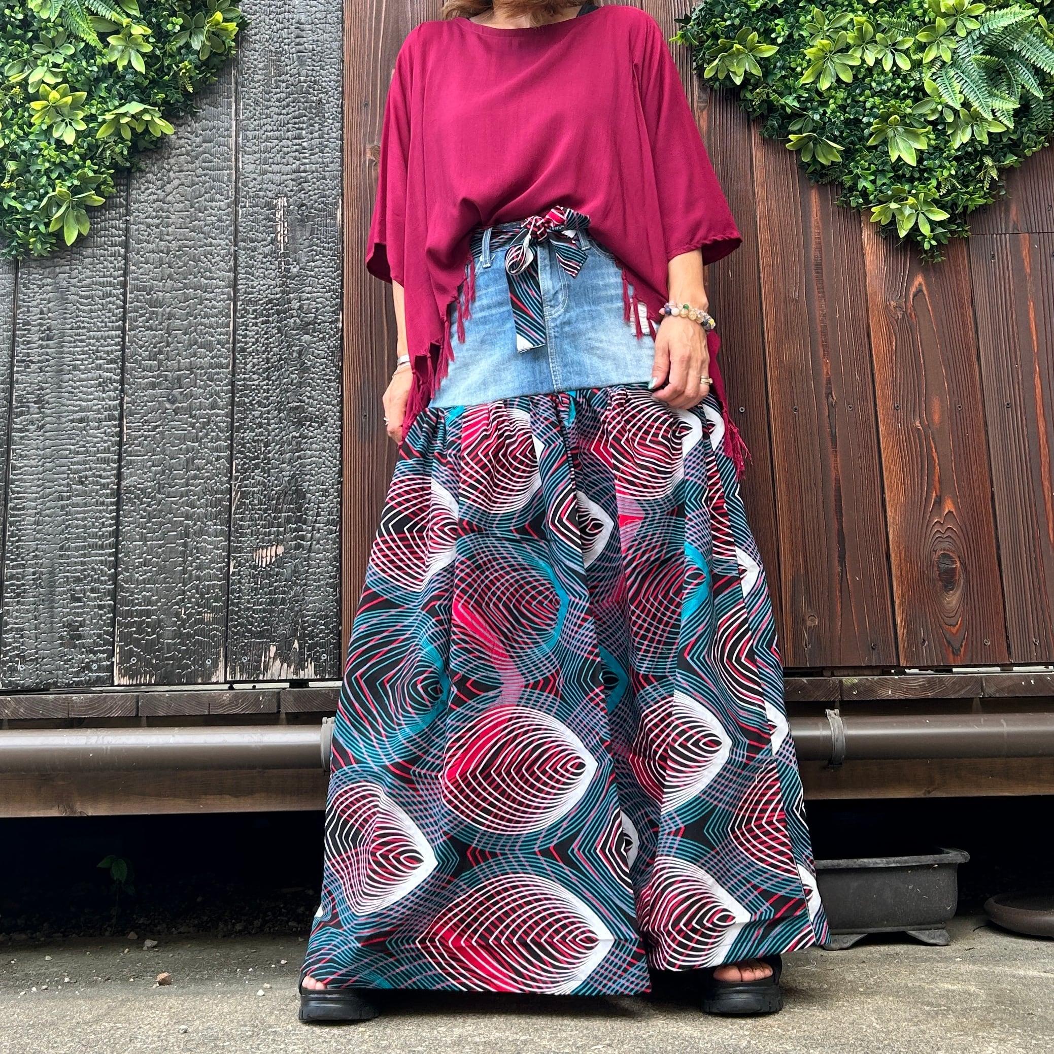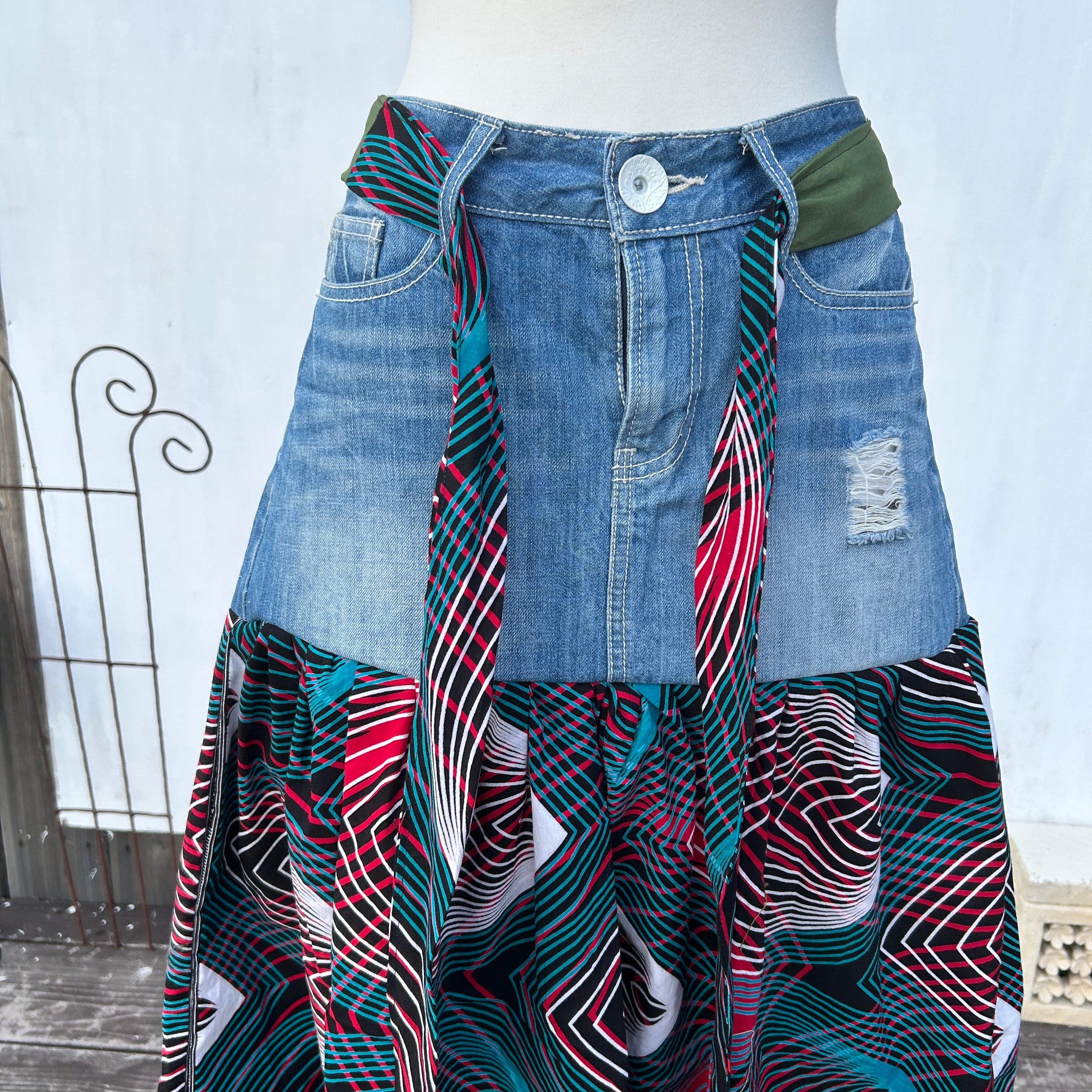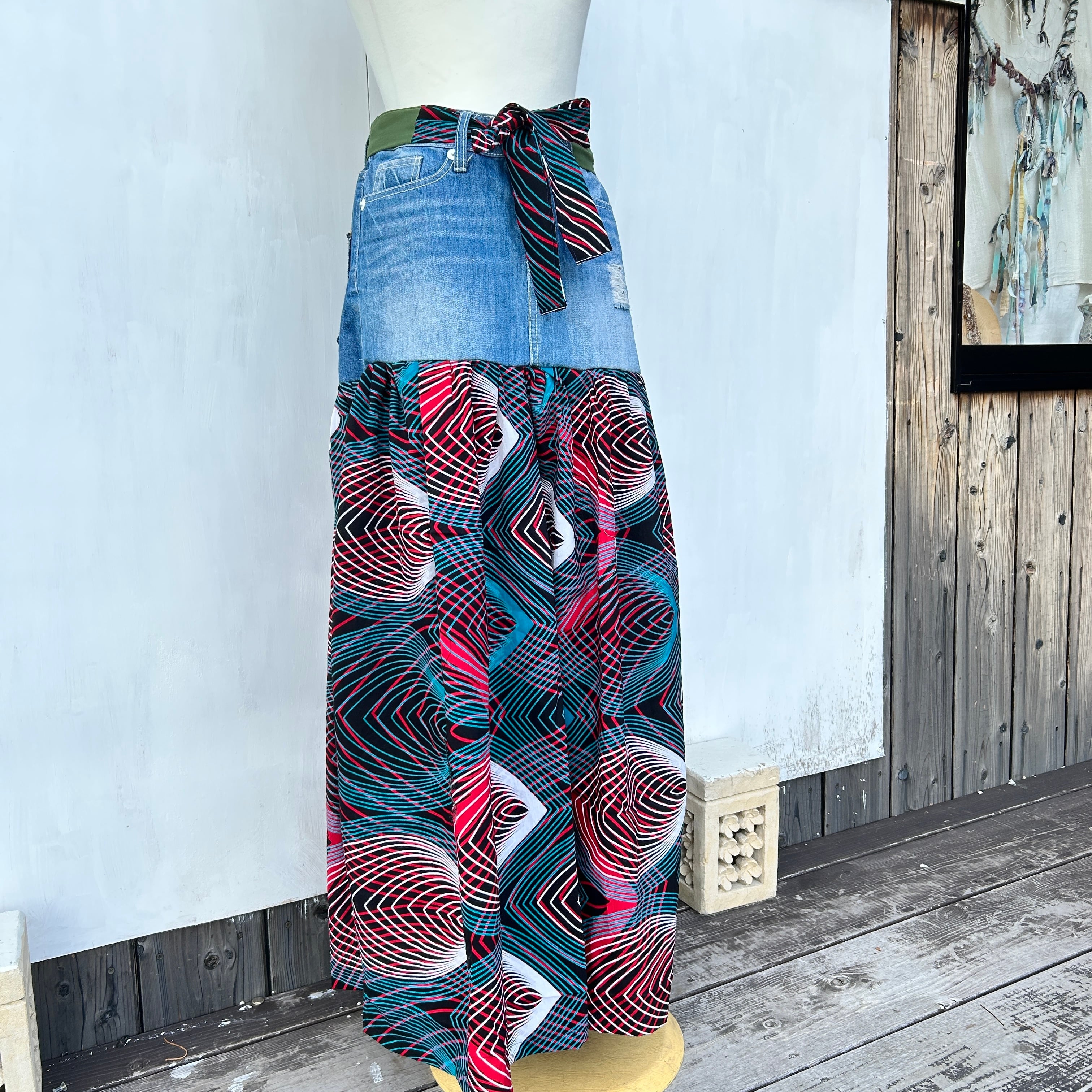 リメイクデニム切り替えアフリカンスカート B
