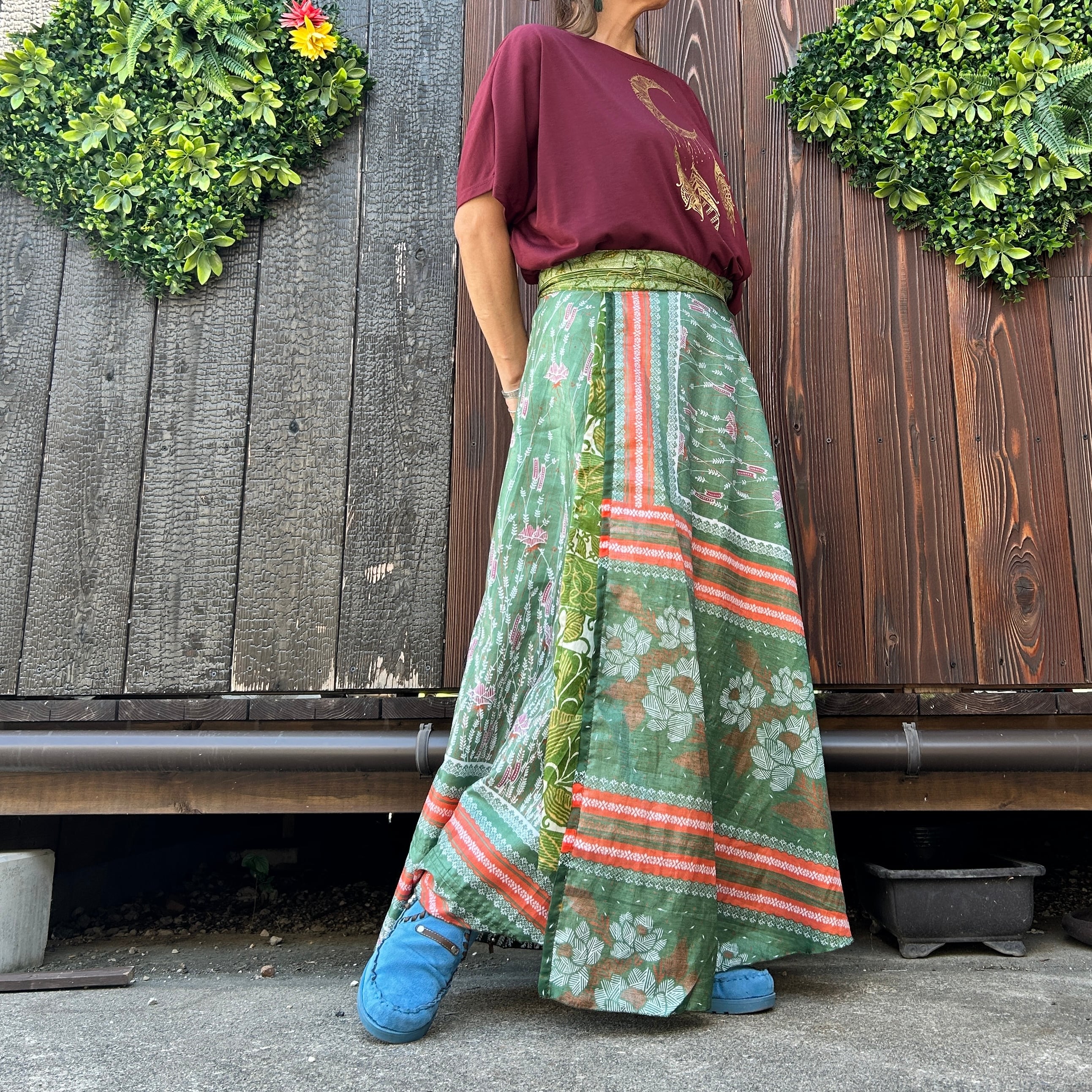 一枚で2通りのコーデが楽しめる、リバーシブルインドサリー巻きスカートです。