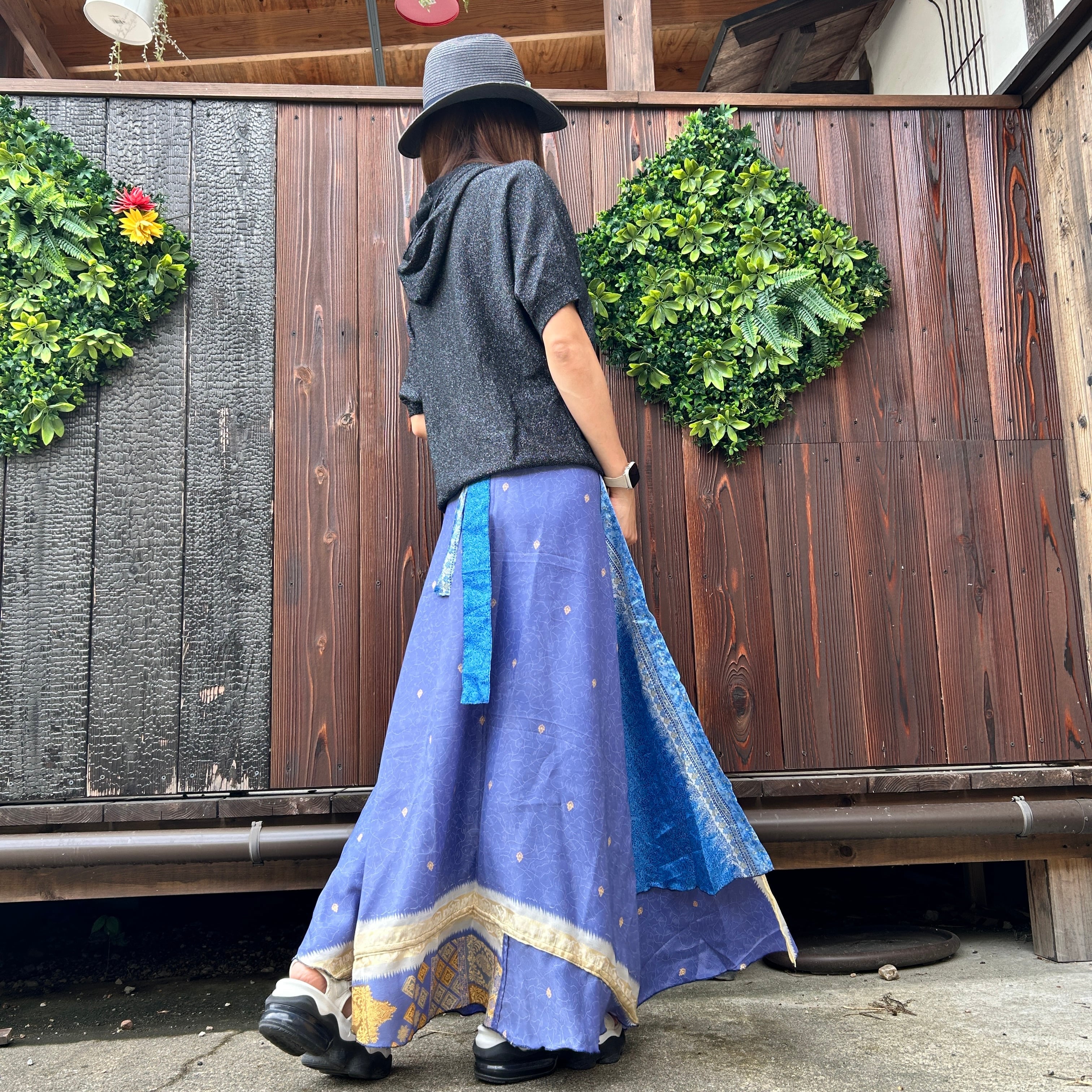 一枚で2通りのコーデが楽しめる、リバーシブルインドサリー巻きスカートです。