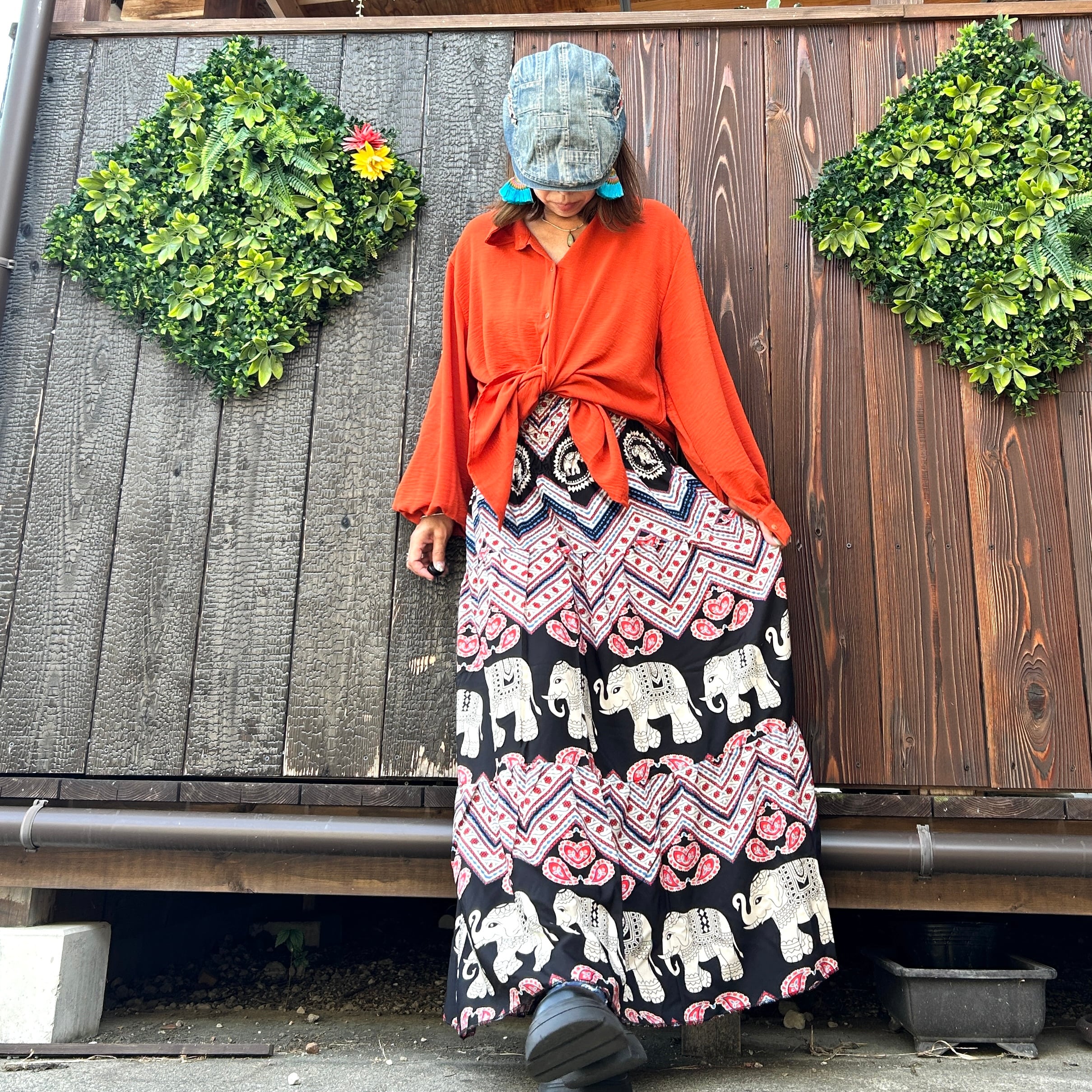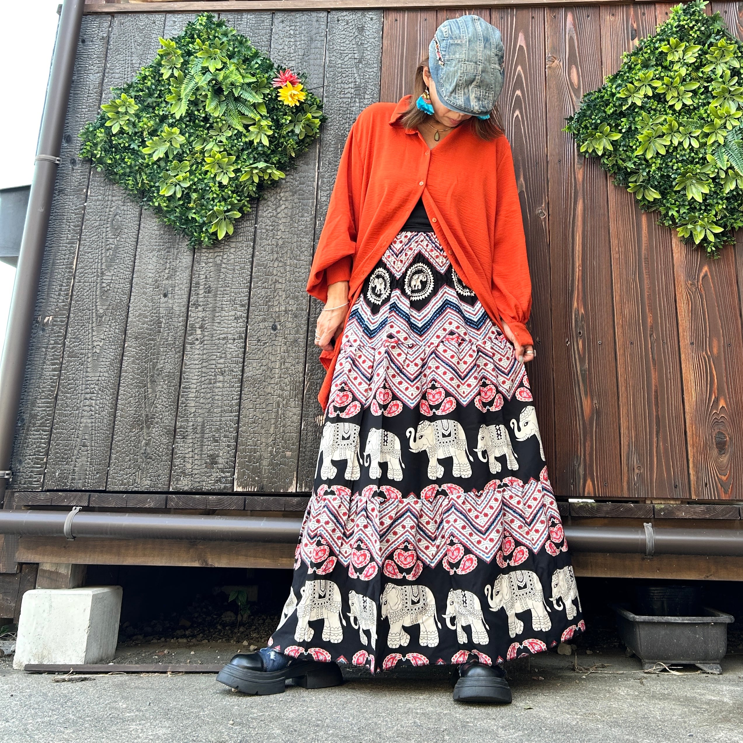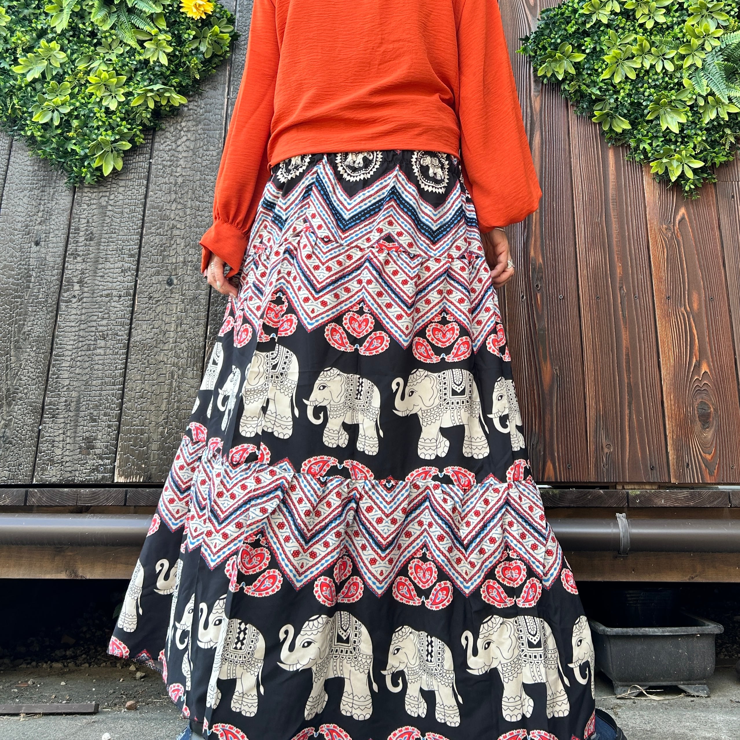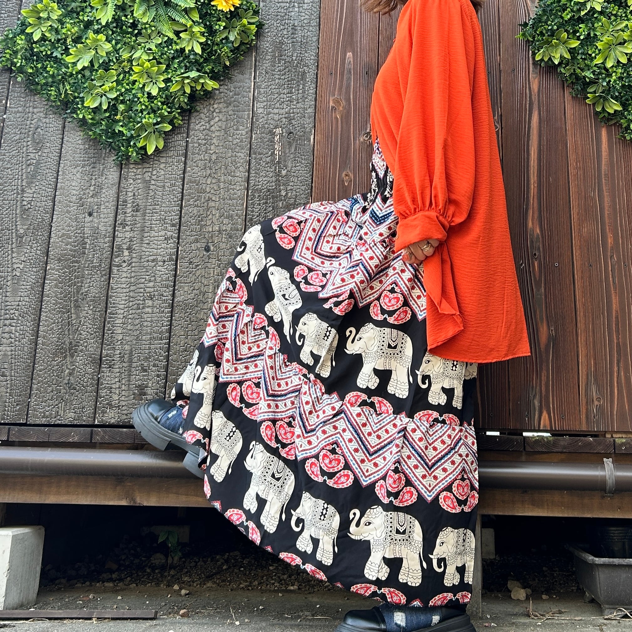 このスカートは、可愛らしいゾウのデザインが施されており、シンプルなトップスとの組み合わせで、個性を引き立てるコーディネートが可能です。カジュアルだけでなく、ちょっとしたお出かけやデートにもぴったりです!