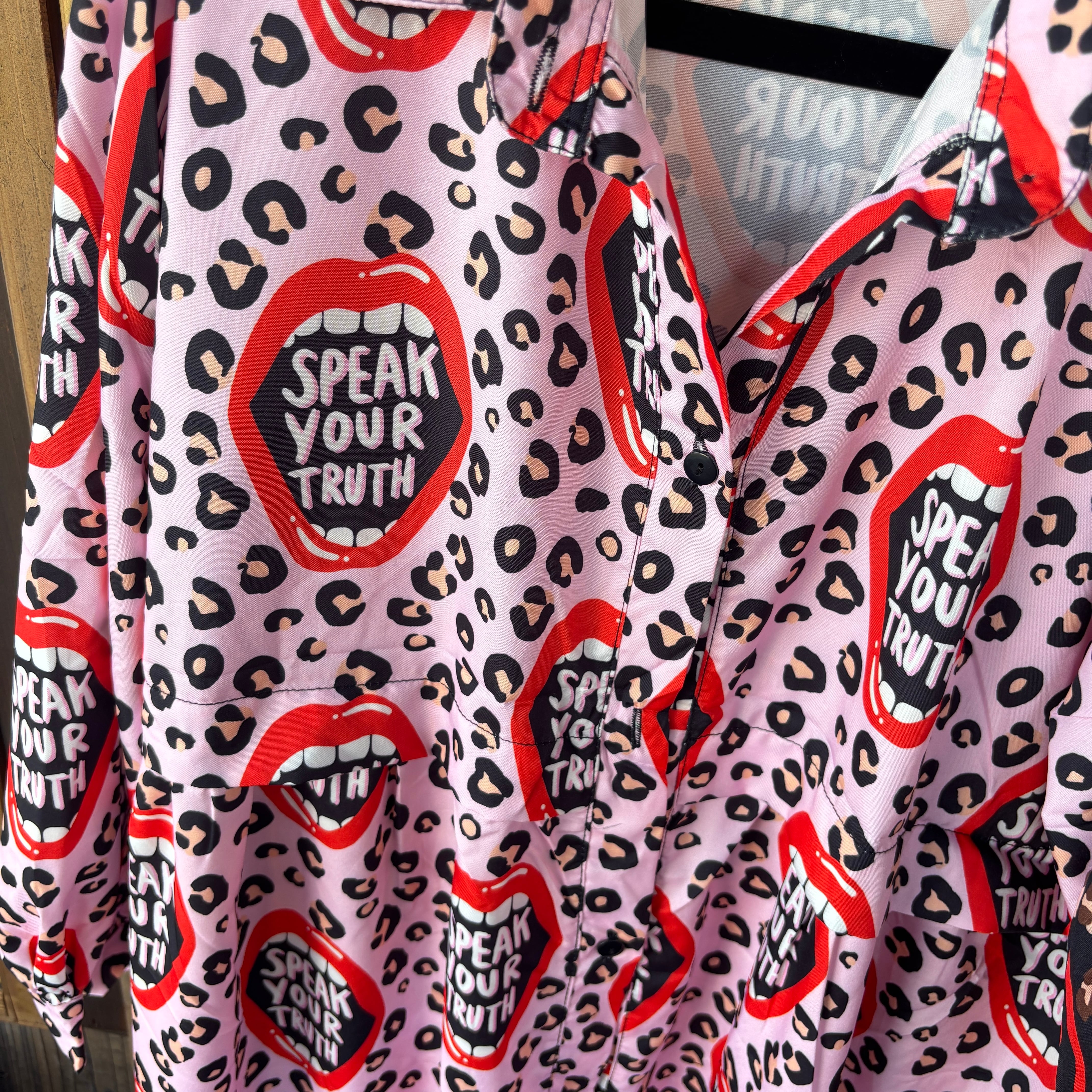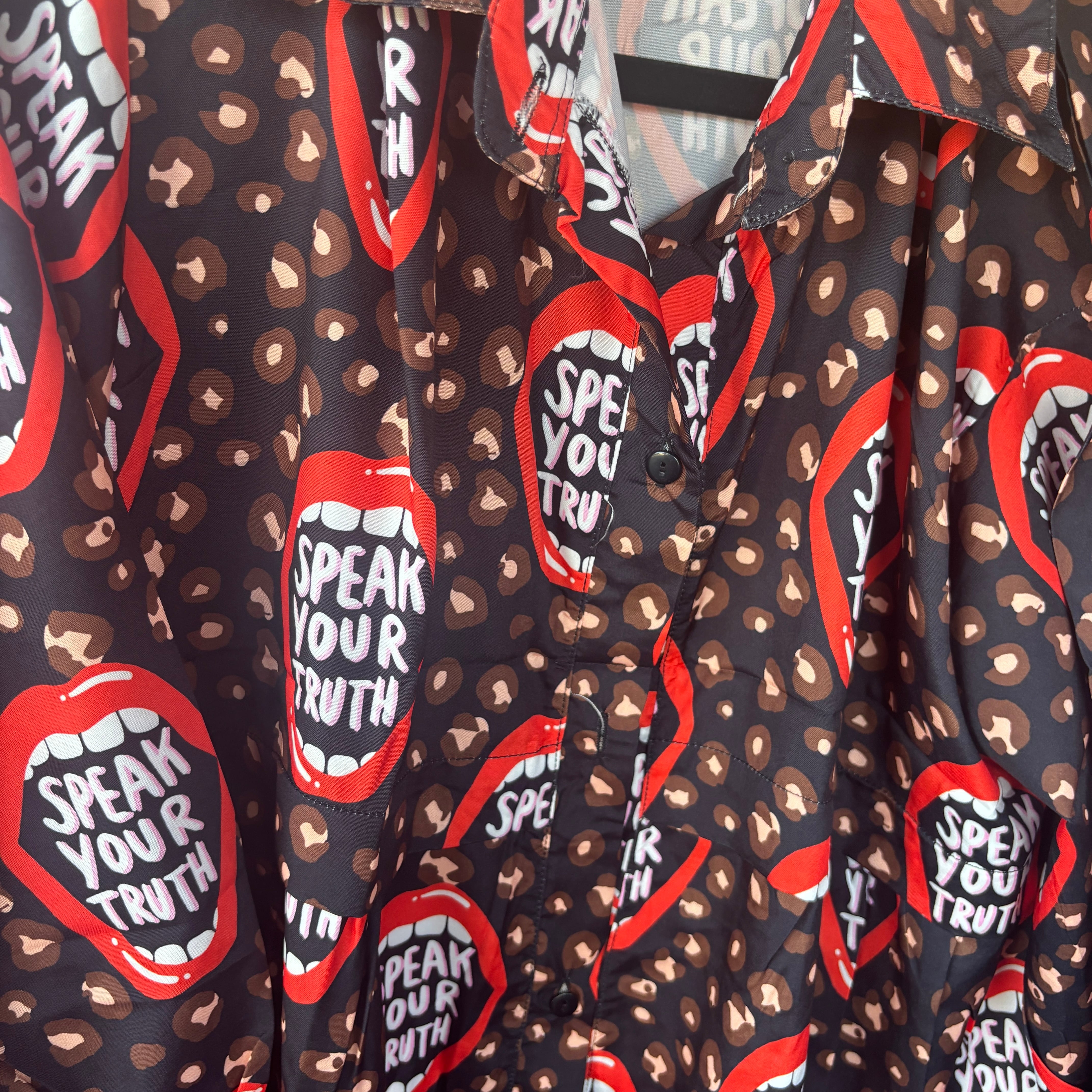 画像の服に書かれている英語 「SPEAK YOUR TRUTH」 は、