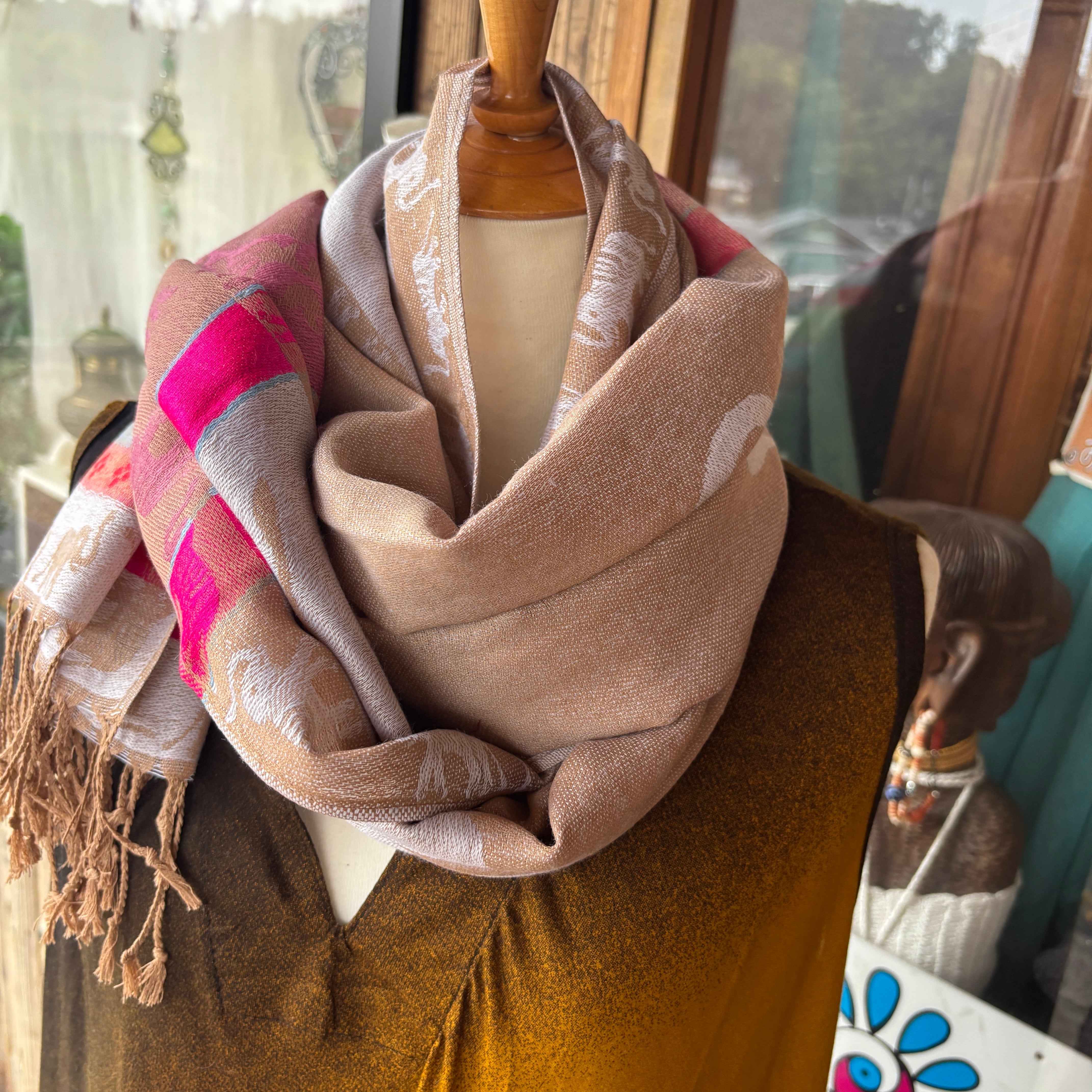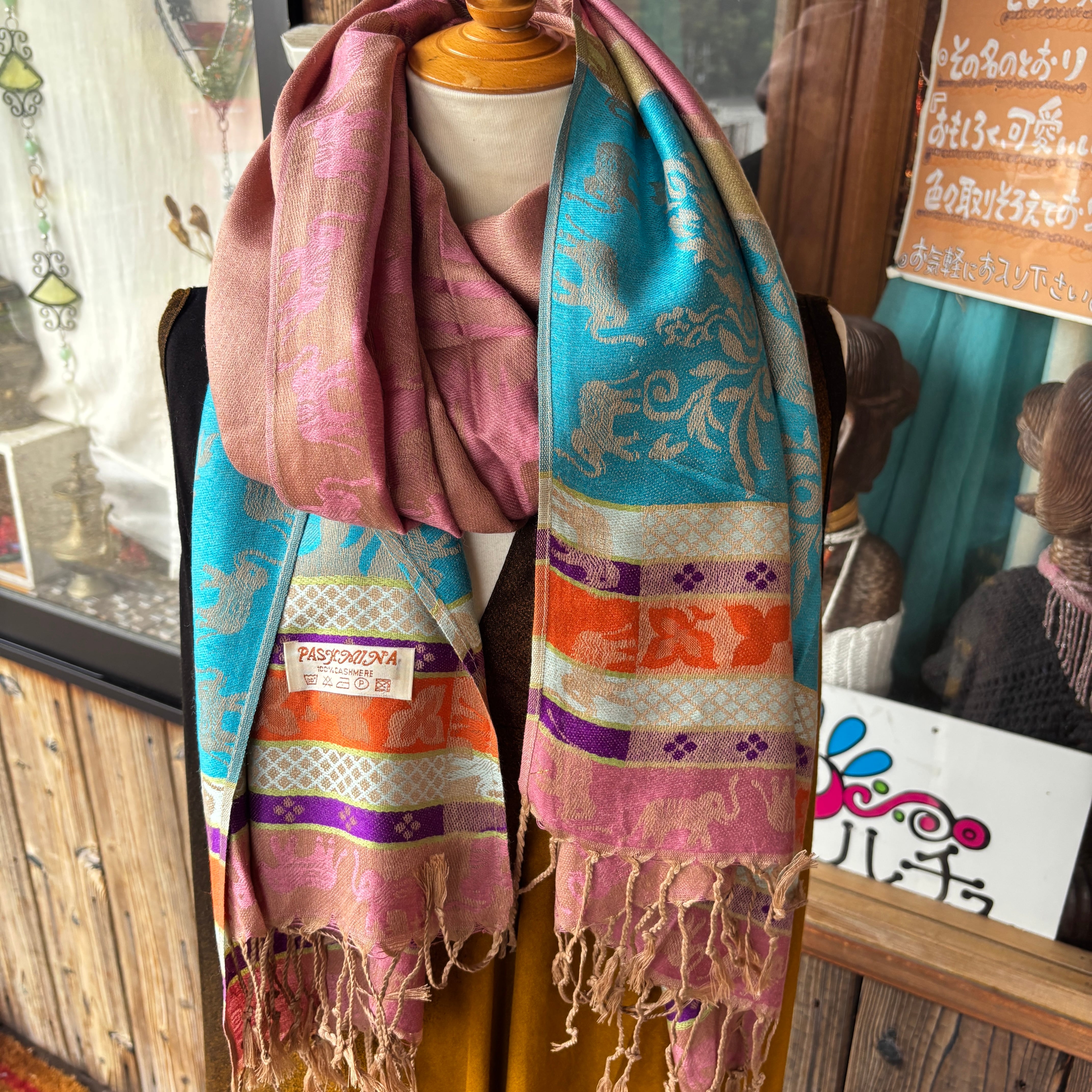 光沢感が美しくサラサラ素材で肌触りが抜群なパシュミナストールです。