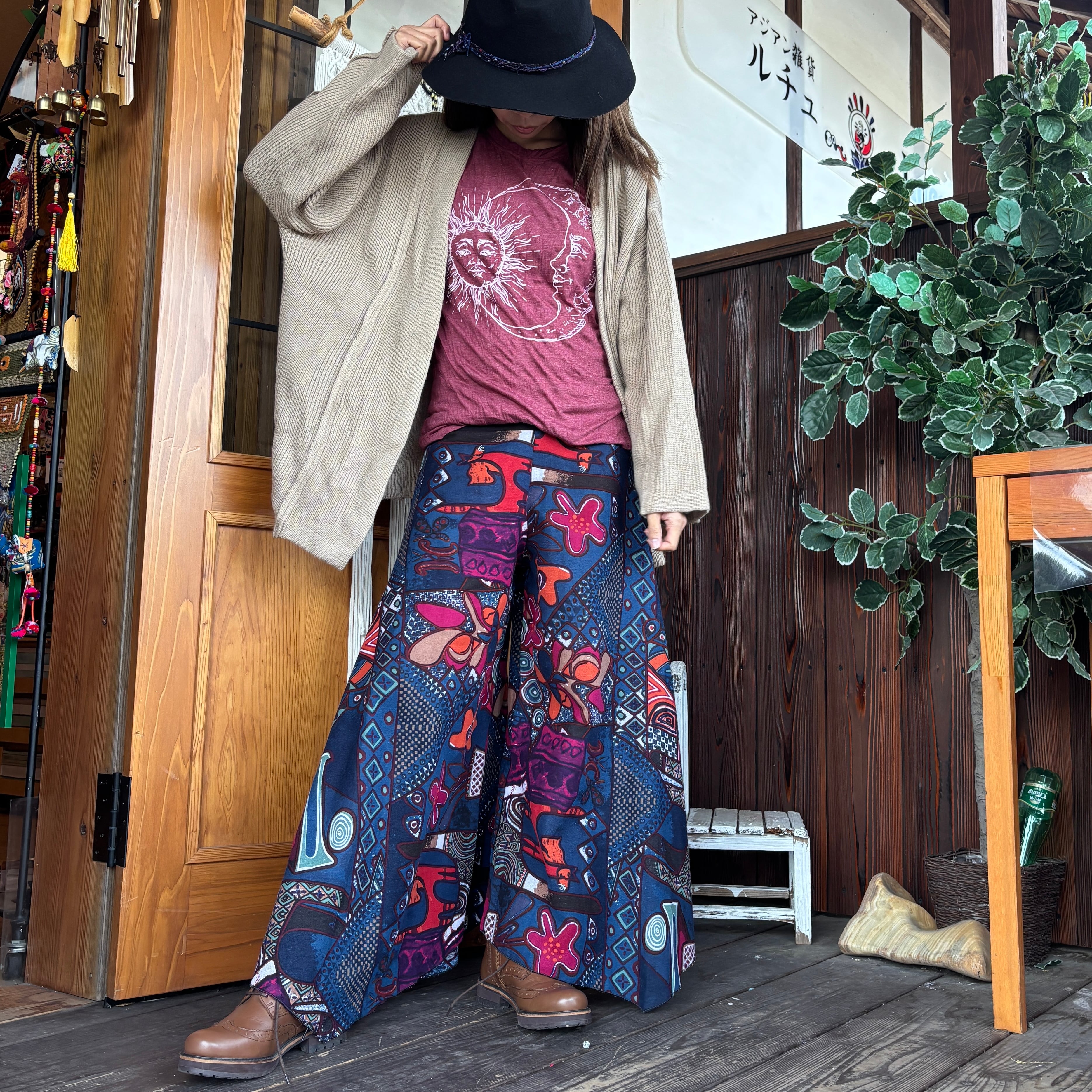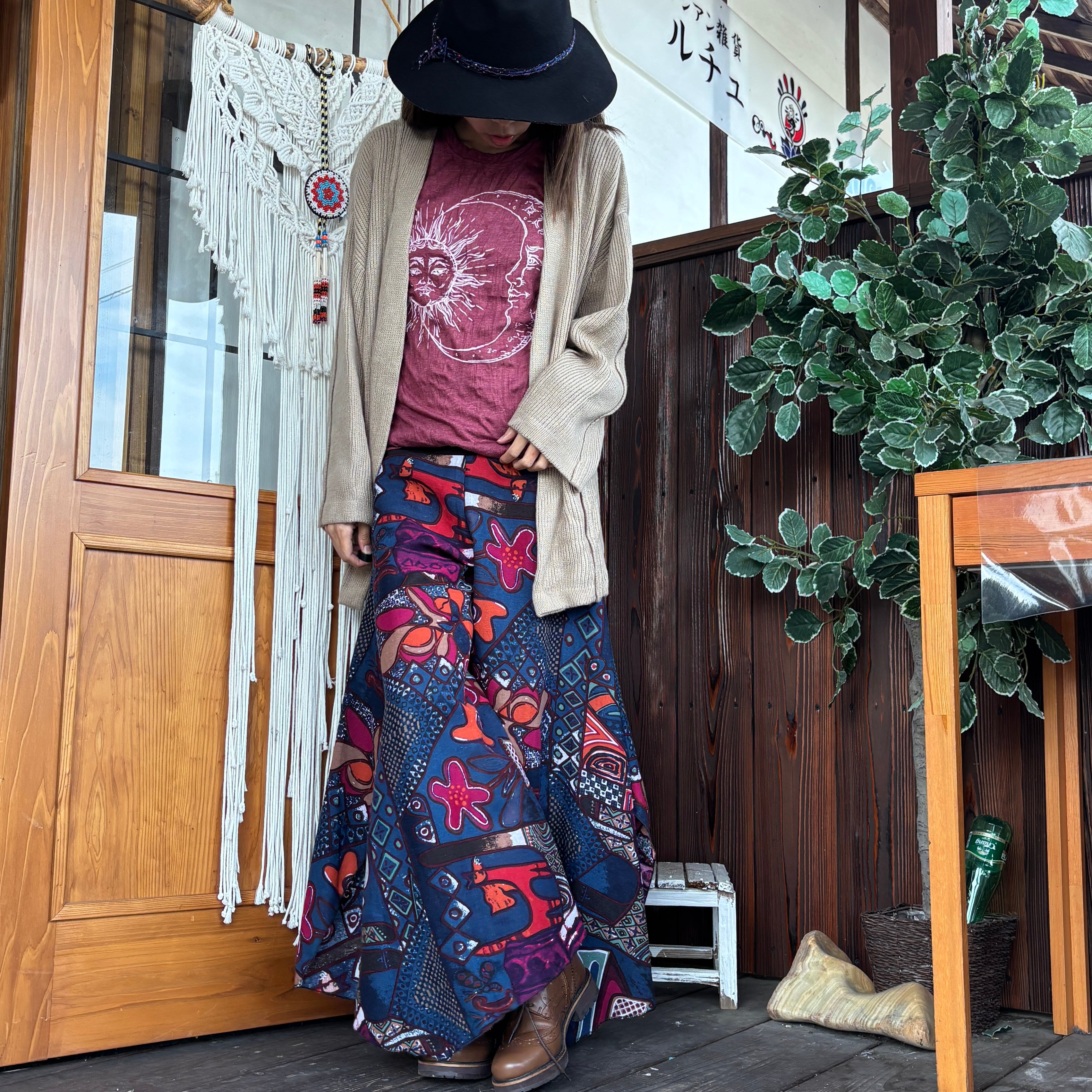 コットン総柄デザインパンツ