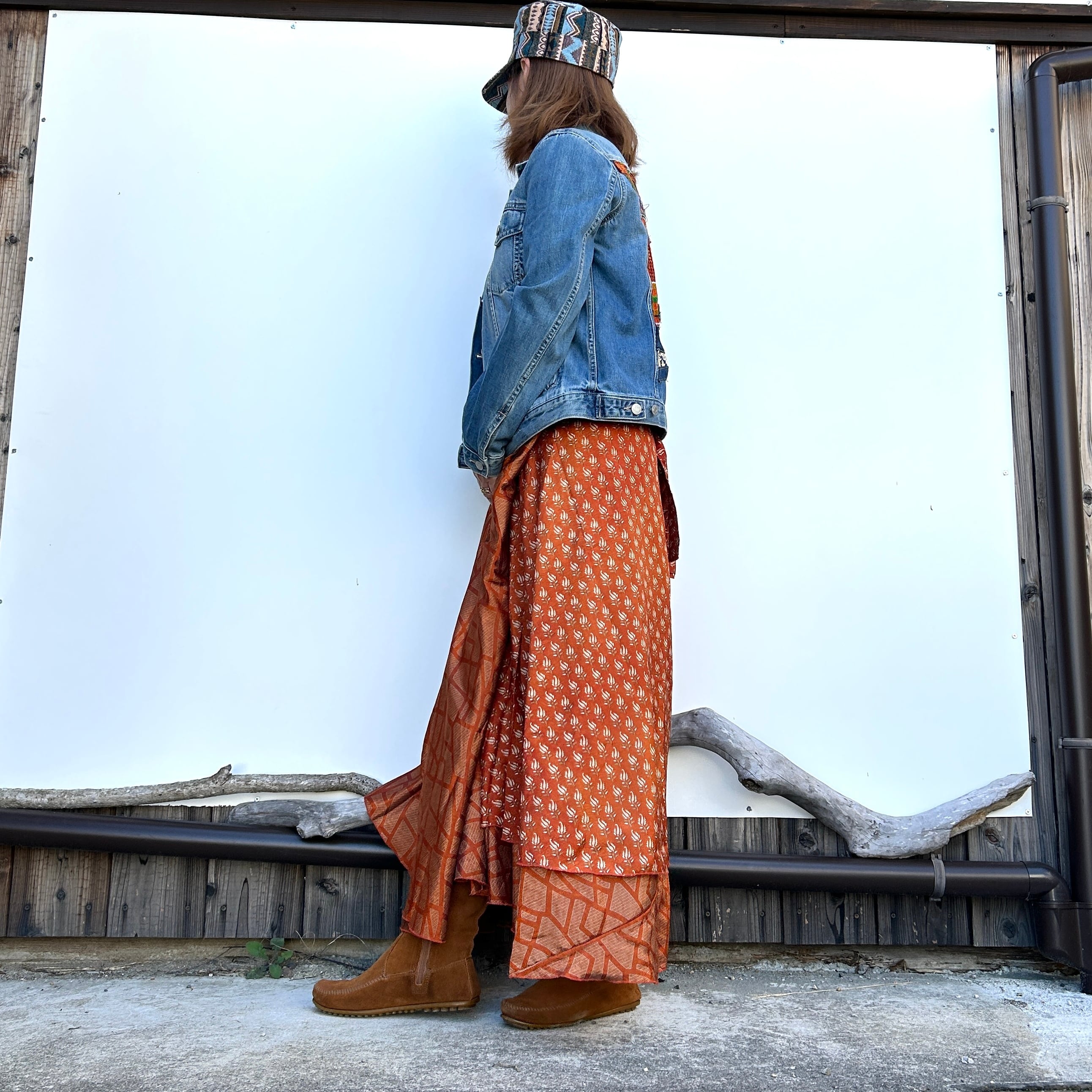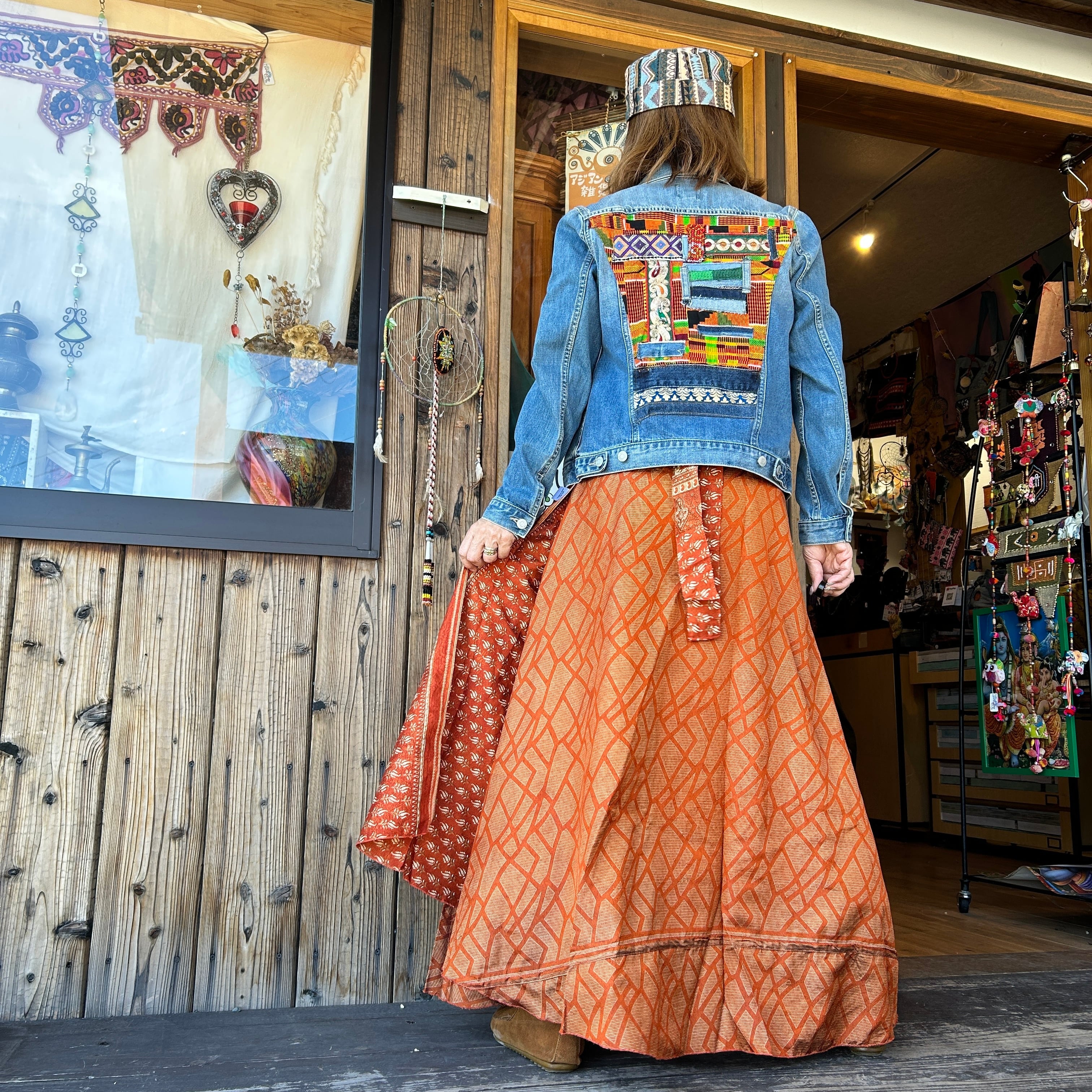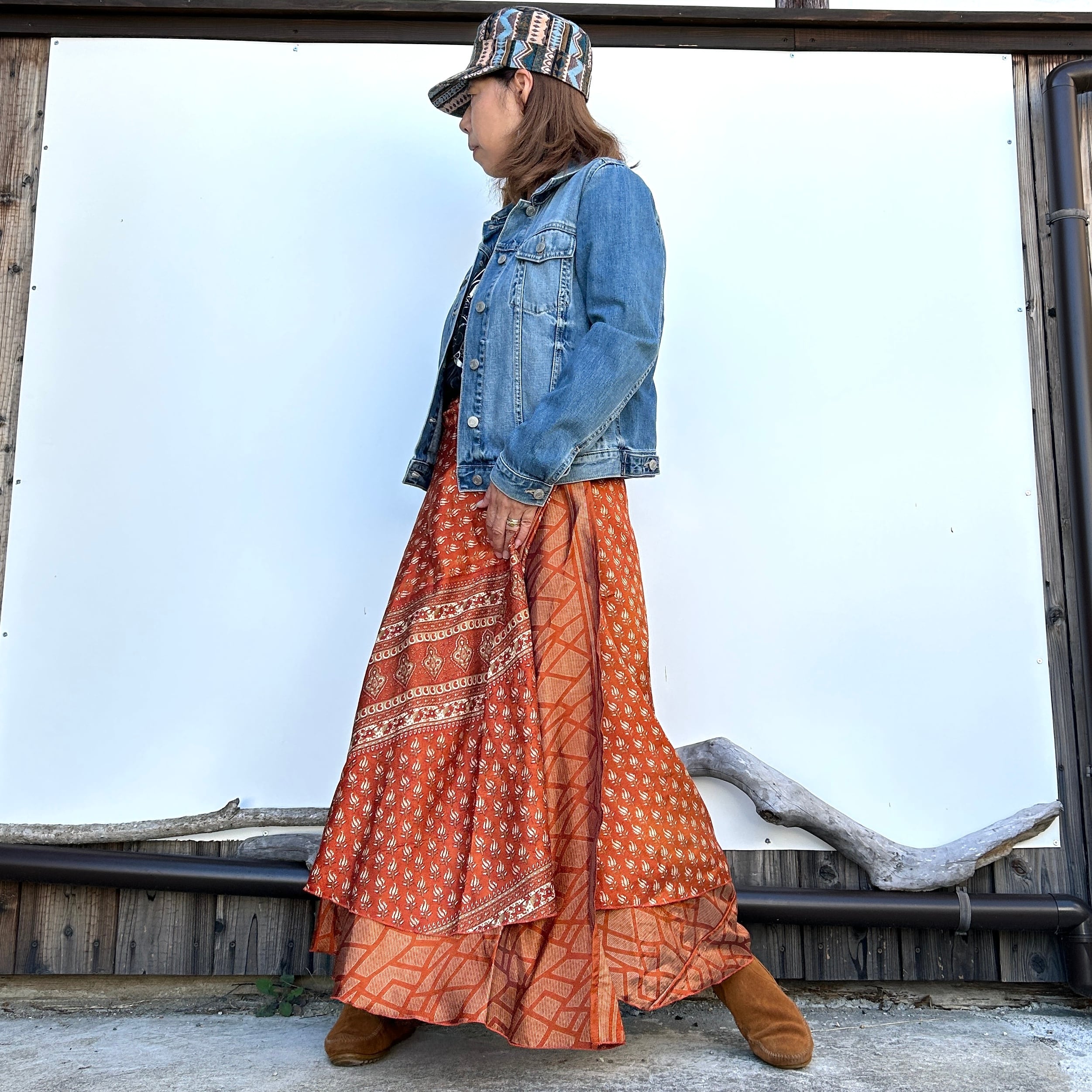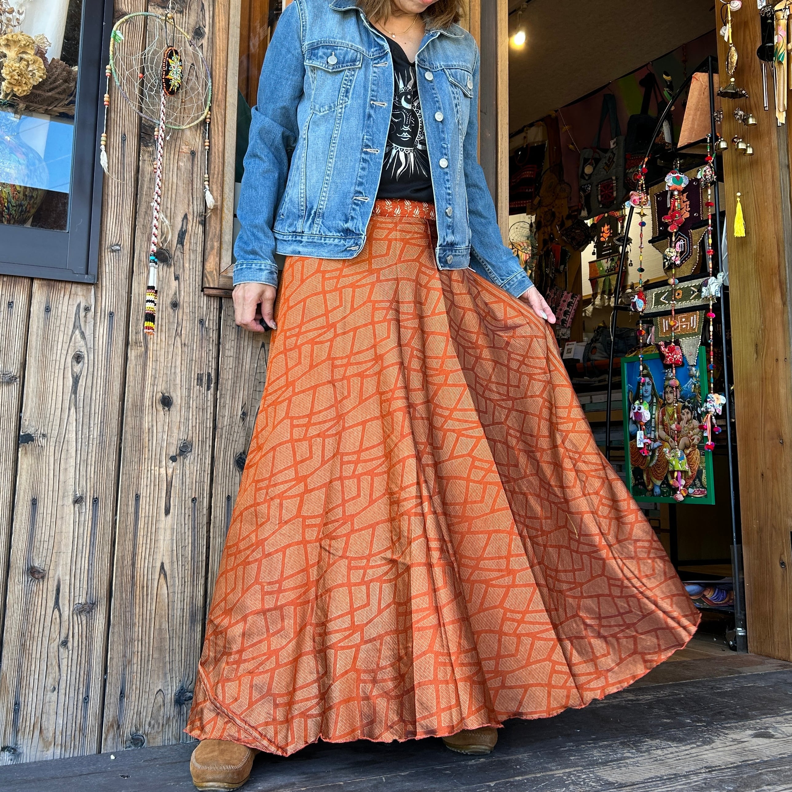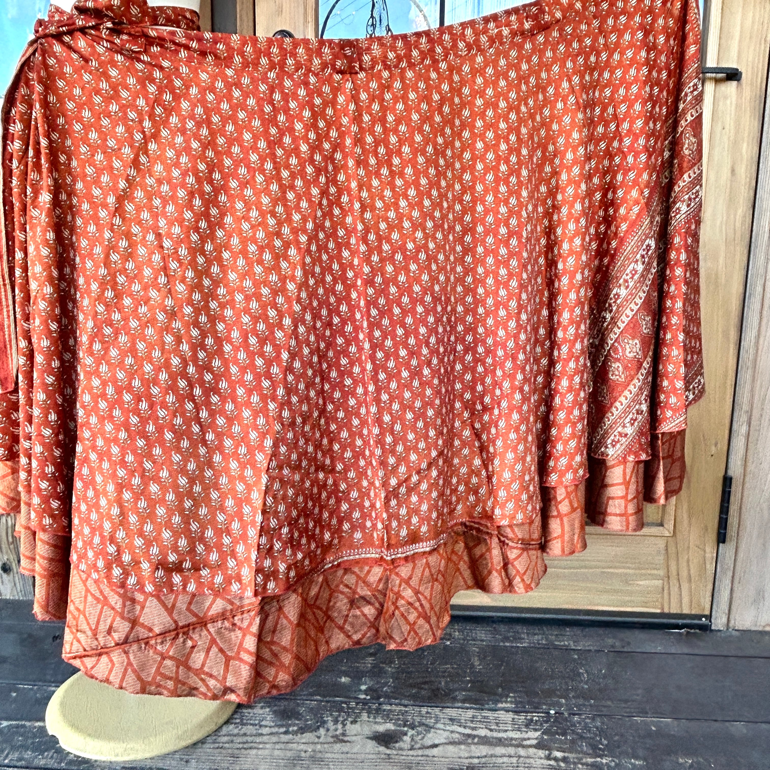 一枚で2通りのコーデが楽しめる、リバーシブルインドサリー巻きスカートです。