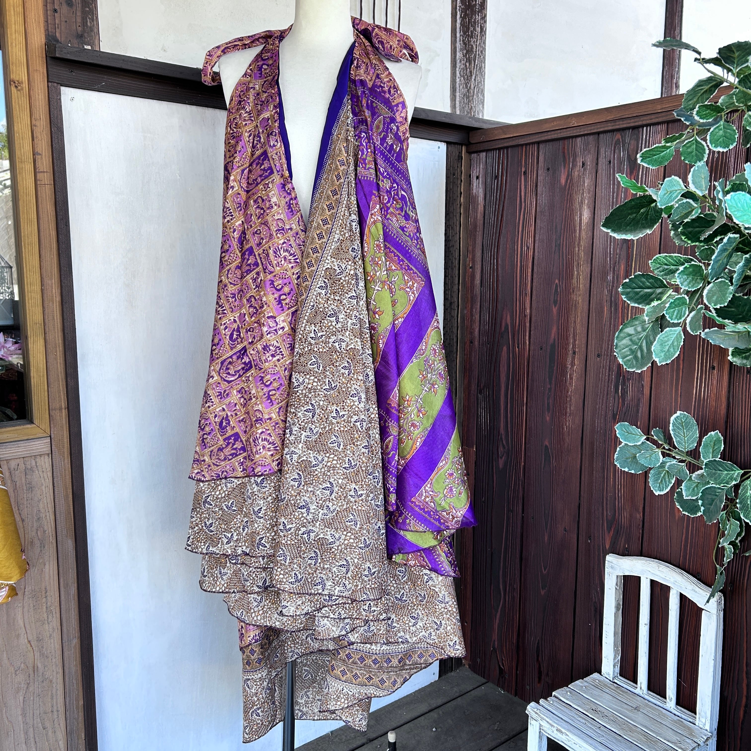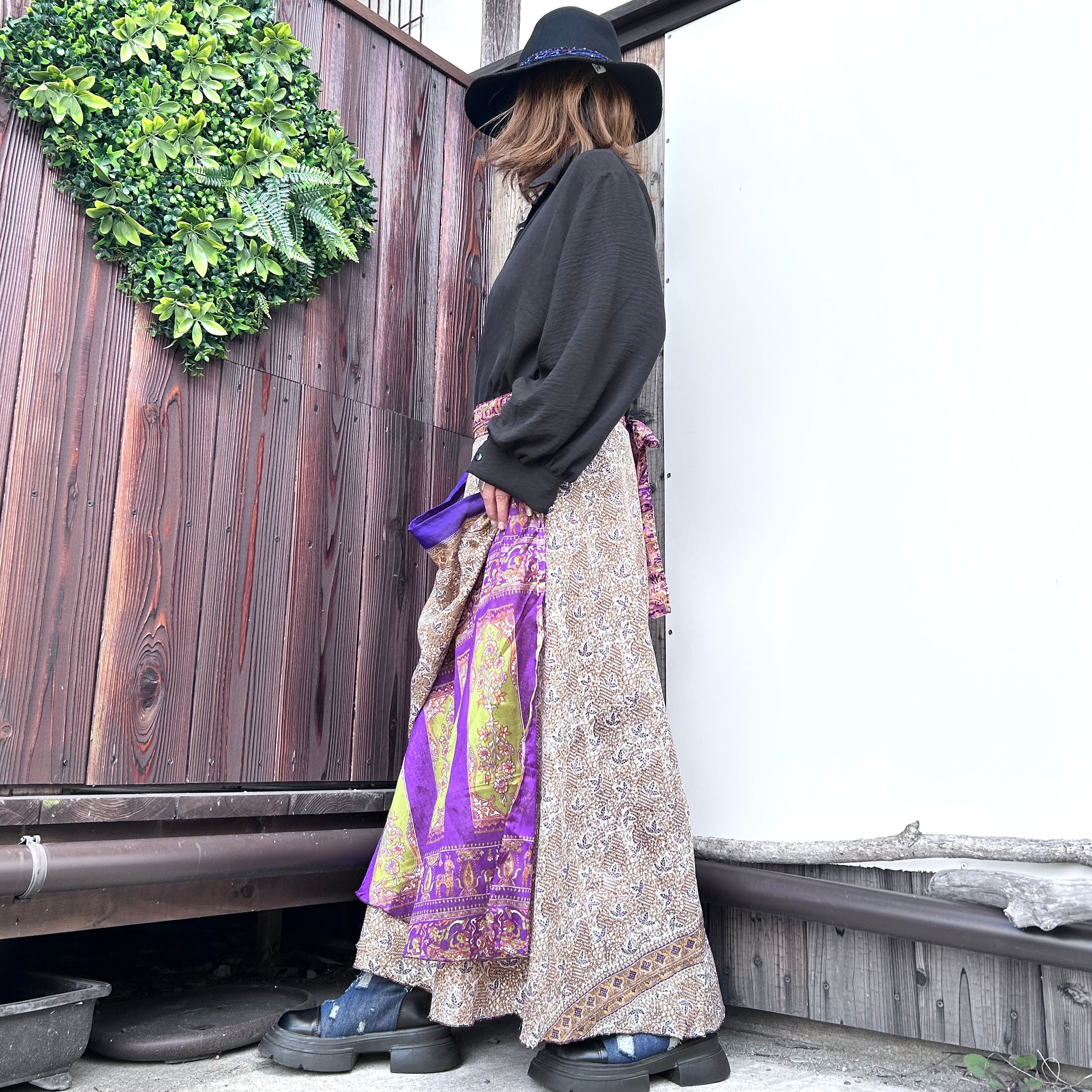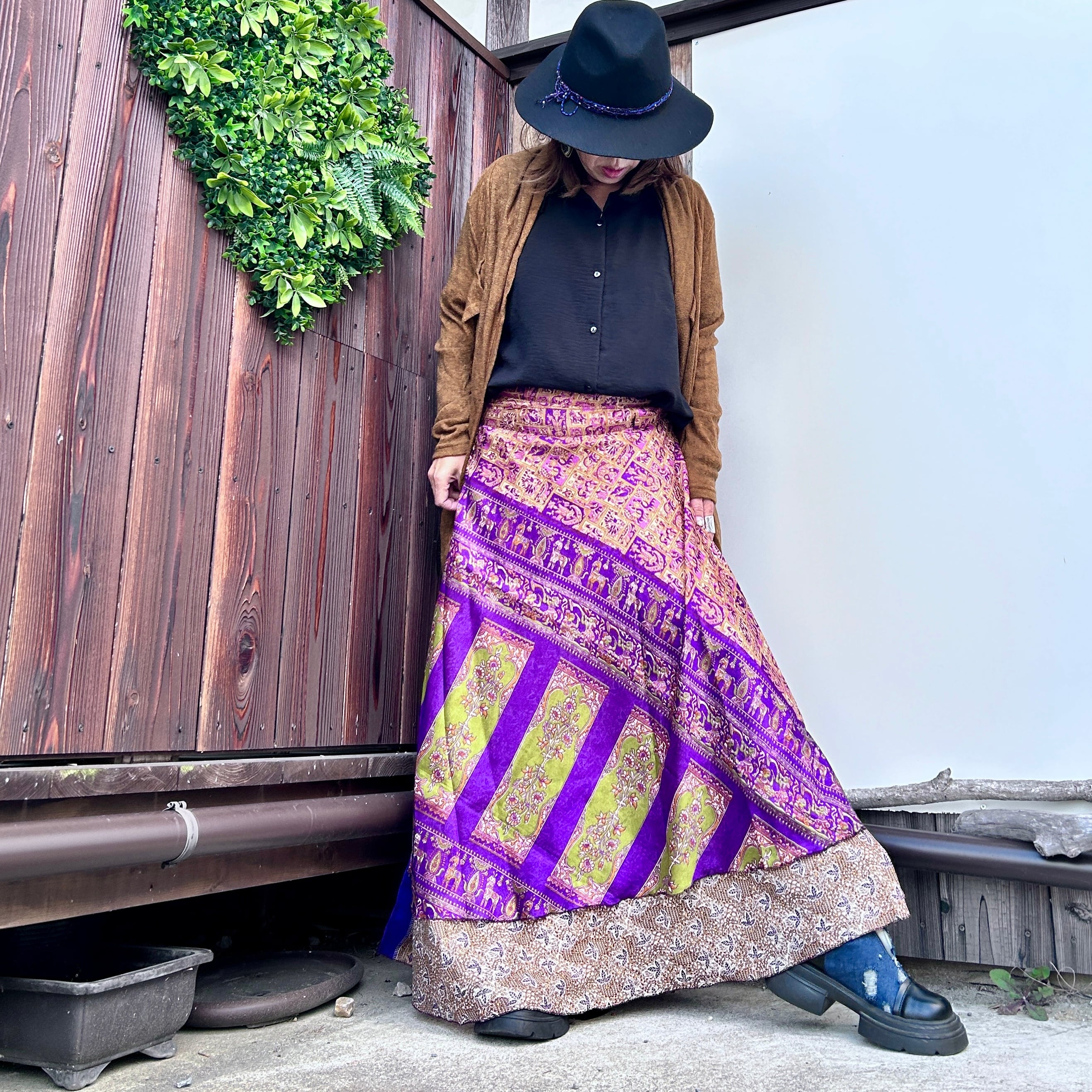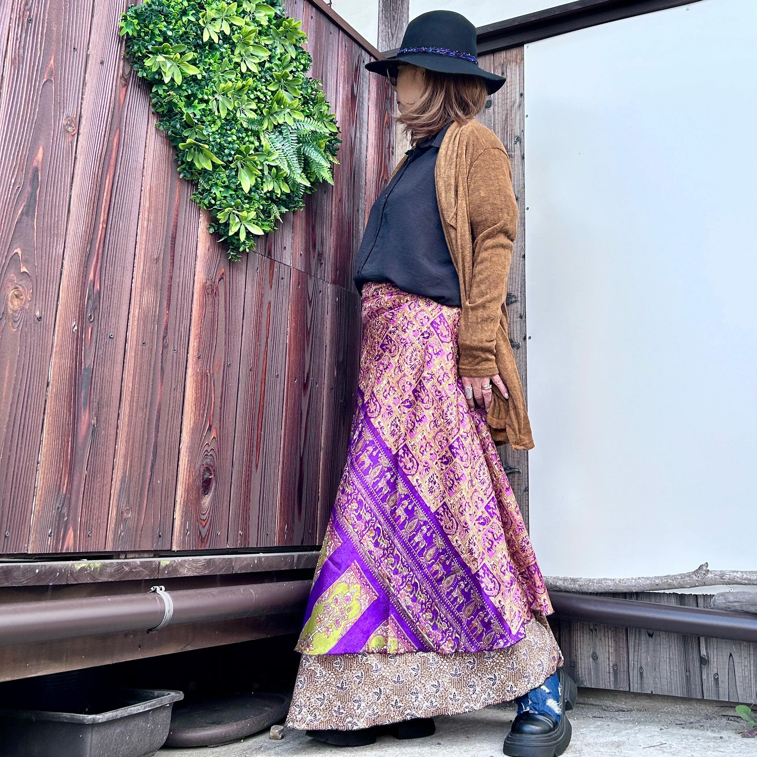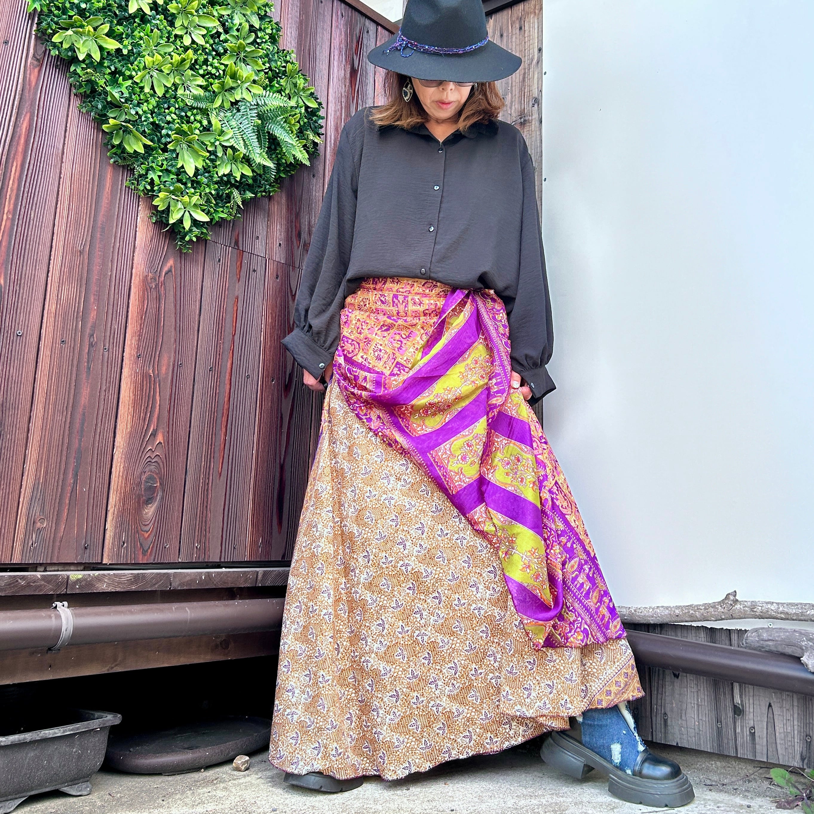 一枚で2通りのコーデが楽しめる、リバーシブルインドサリー巻きスカートです。