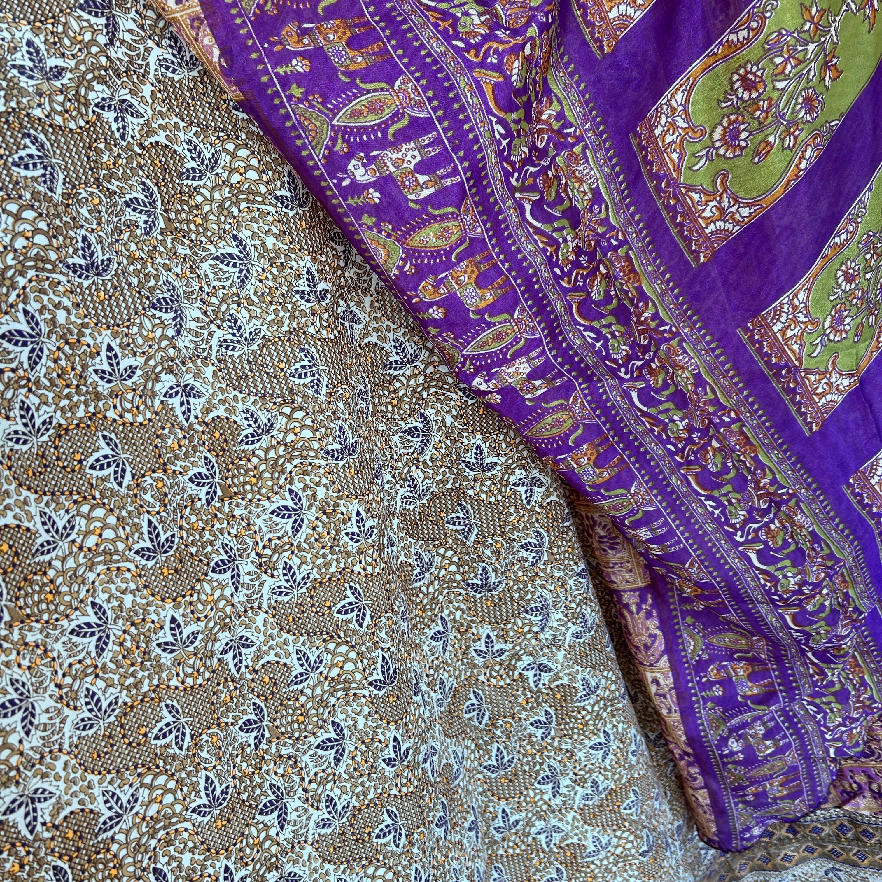 インドの祝事など特別なシーンで着られる高級なシルクサリー生地から作られています。