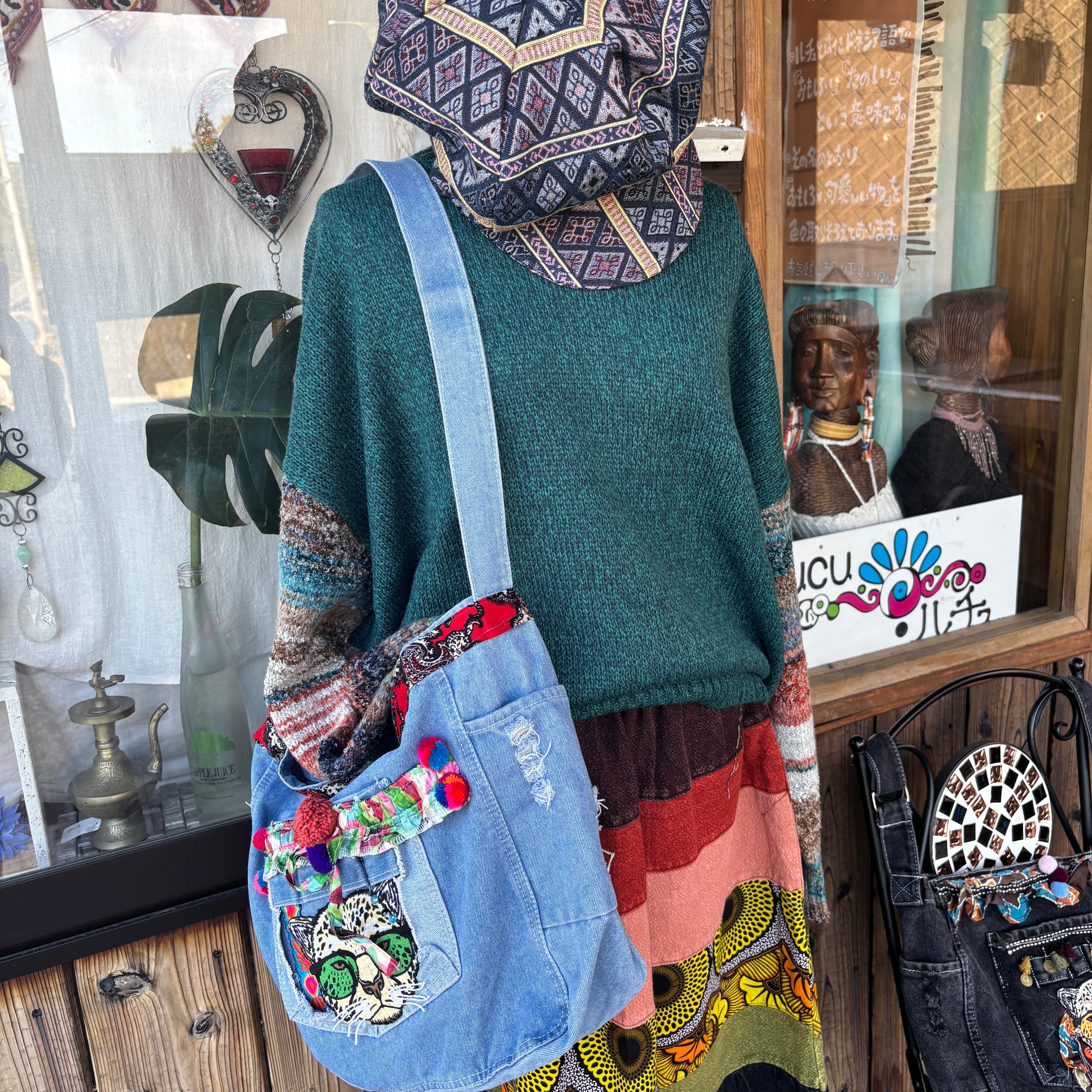 デニム素材のカジュアルさと、ヒョウのワッペンが合わさることで、一味違ったスタイルを楽しむことができます。