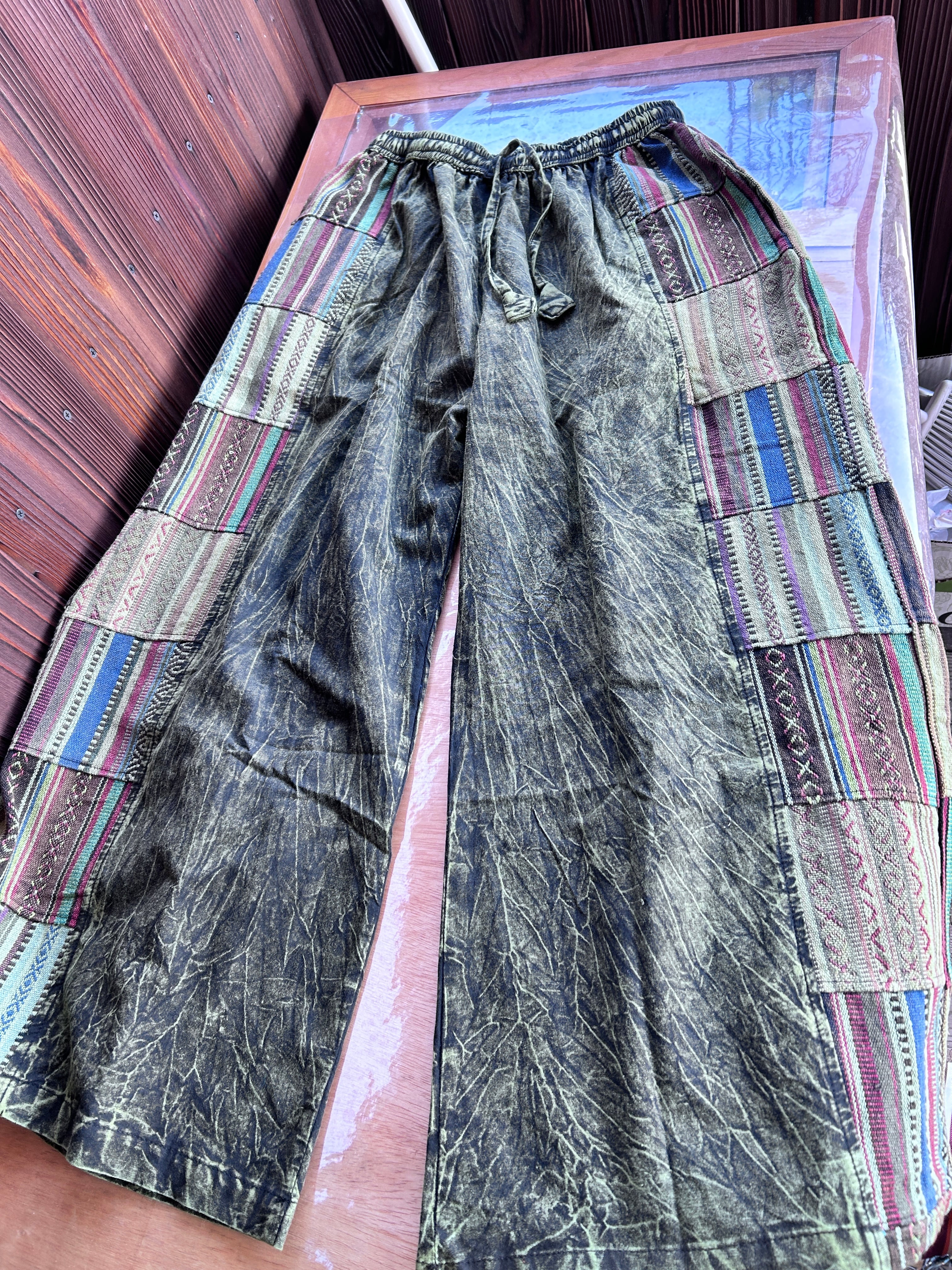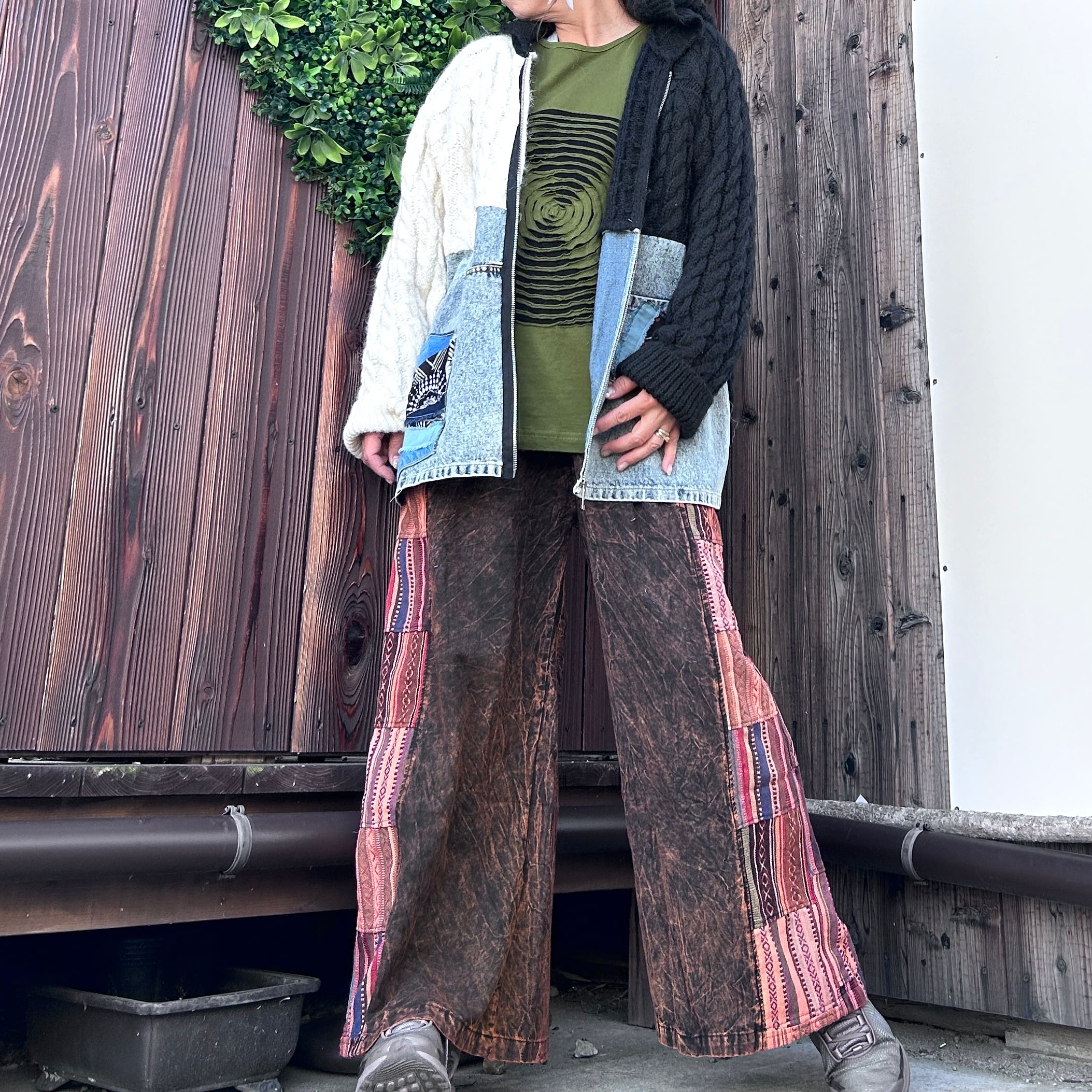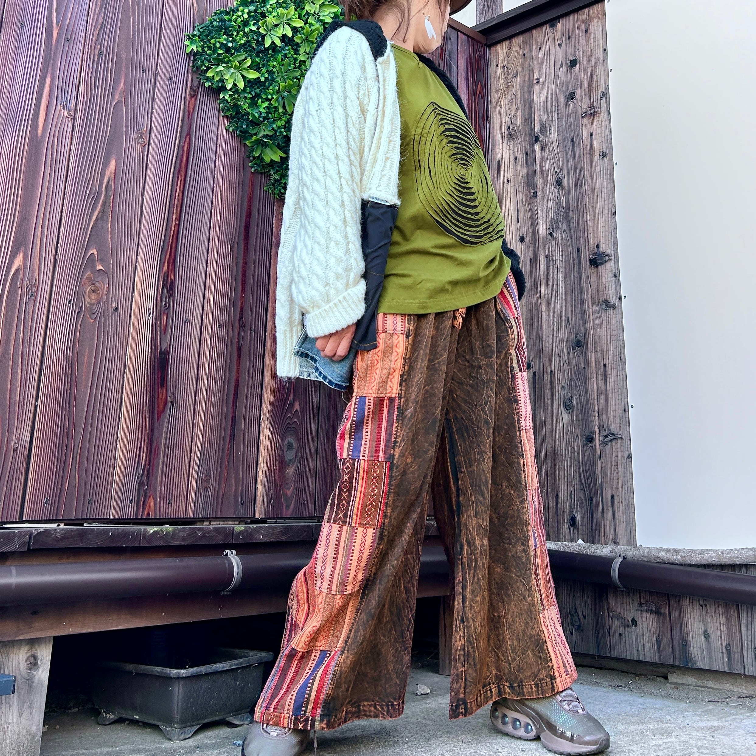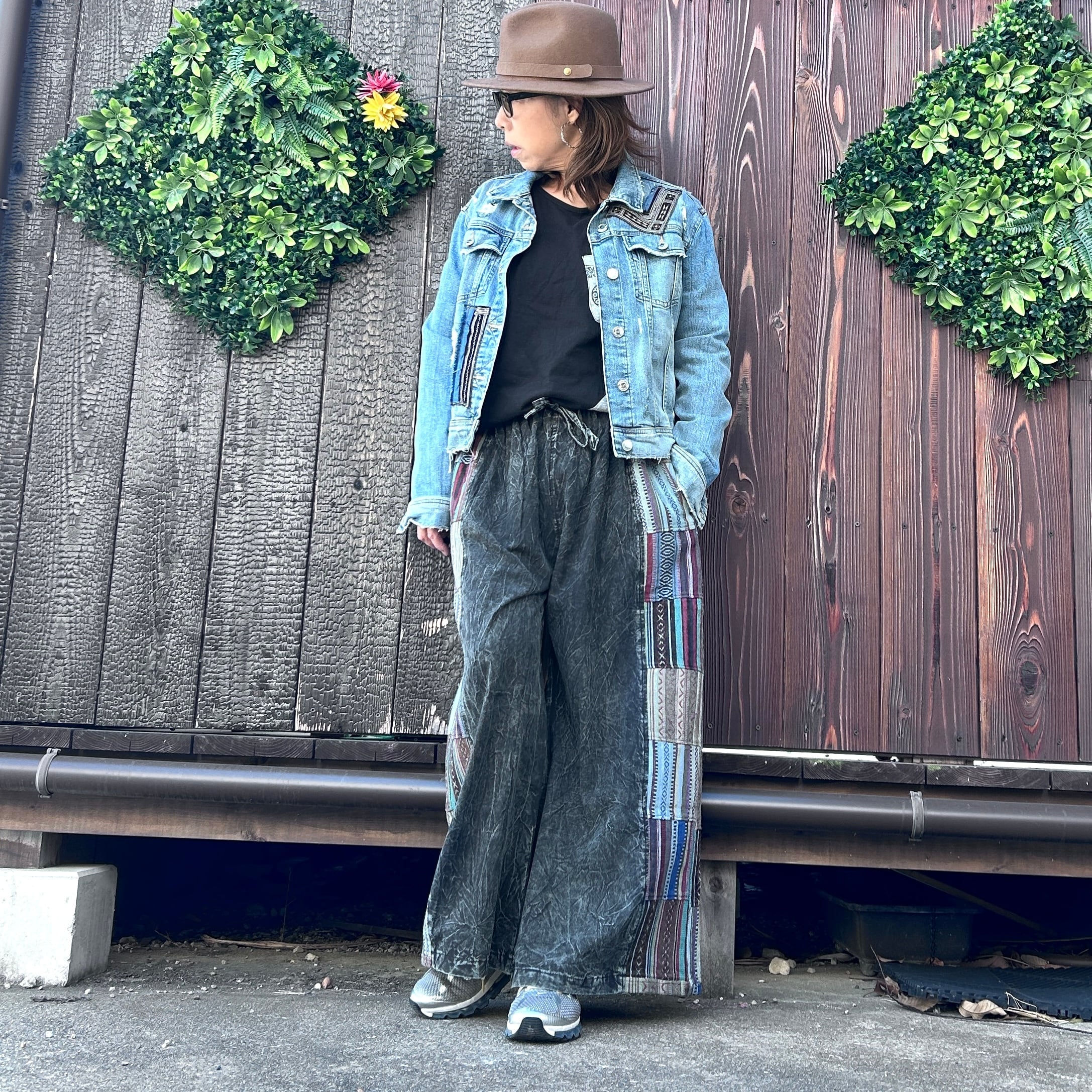 エスニックな雰囲気をまとったサイド切り替えワイドパンツで、あなたのデイリースタイルに新たな風を吹き込んでみてください!