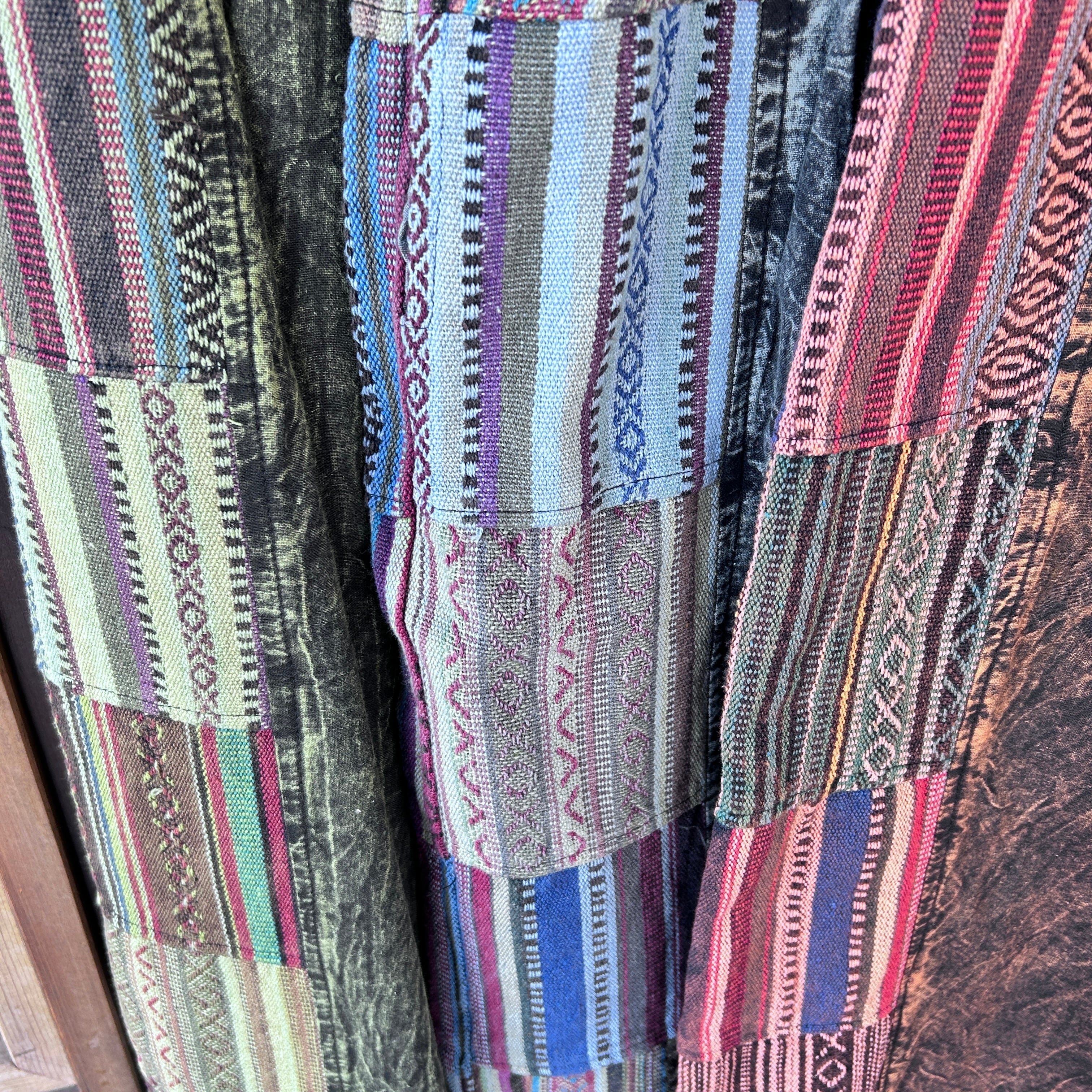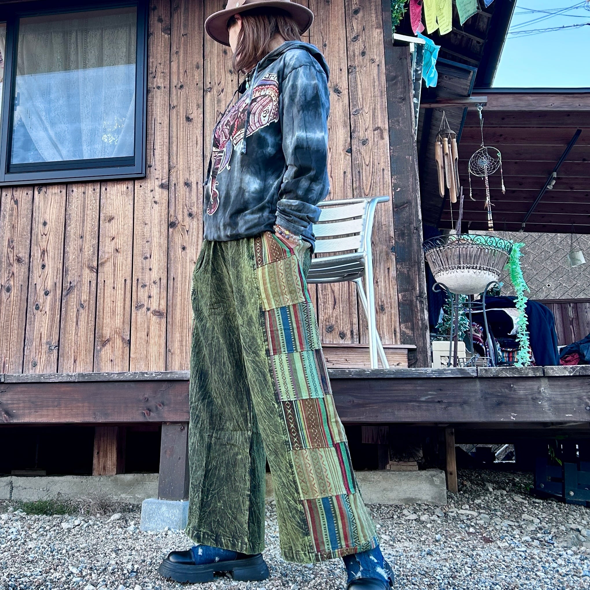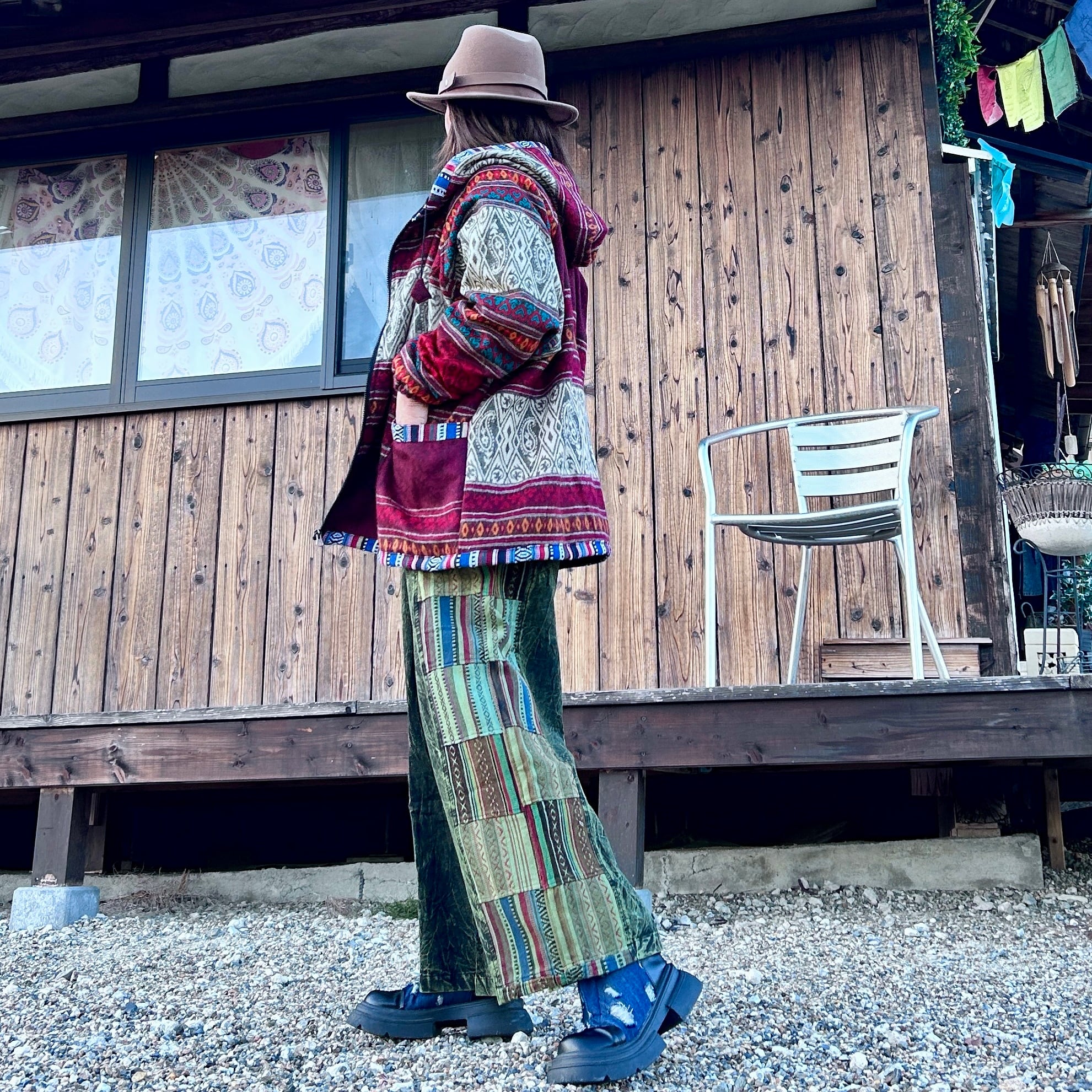 サイドに施された切り替えが、ワイドなシルエットに新たなアクセントを加え、履くたびにコーディネートが楽しくなる一枚です。エスニックなデザインは、どんなスタイルにも溶け込み、カジュアルな日常使いから特別なお出かけまで幅広く活躍します。着る人の個性を引き立て、自然と自信のあるスタイルを演出してくれます。このパンツは、多彩なコーディネートを可能にし、あなたのワードローブに欠かせないアイテムとなることでしょう。