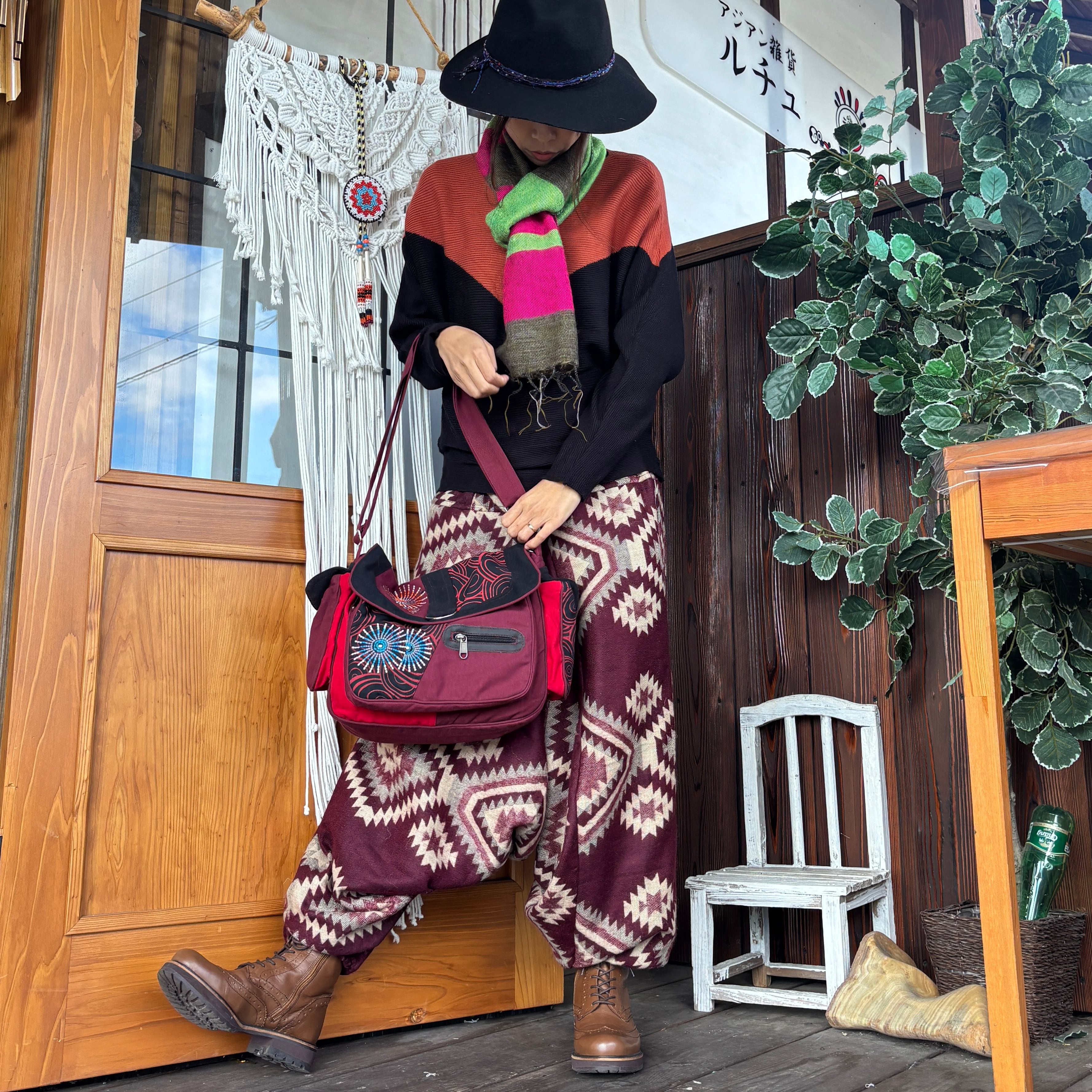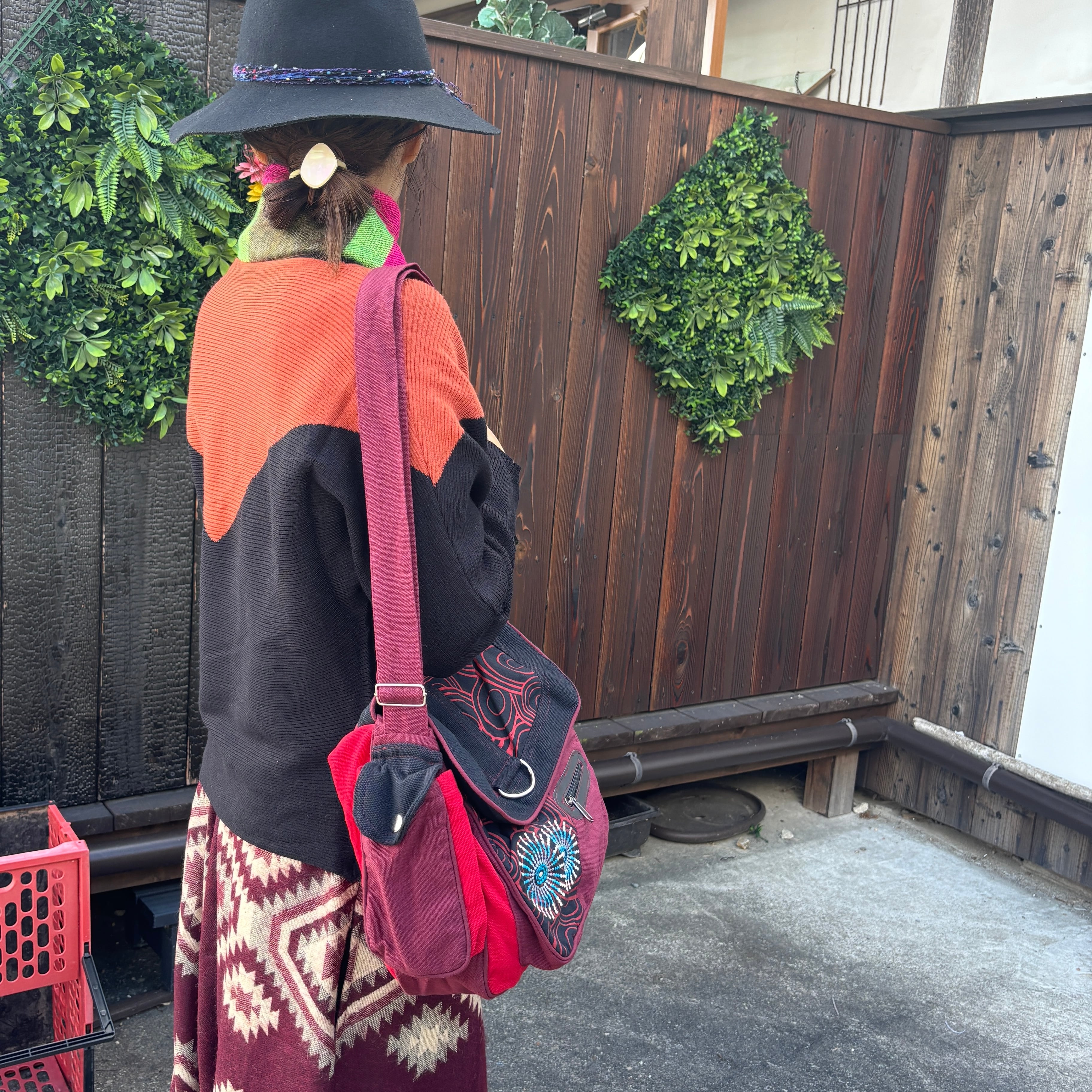 このショルダーバッグは、どんなコーディネートにもフィットし、エスニックな雰囲気を一層引き立てます。デイリーユースからお出かけまで幅広く使えること間違いなし!シンプルな装いにさりげなく彩りを添えるアイテムです。