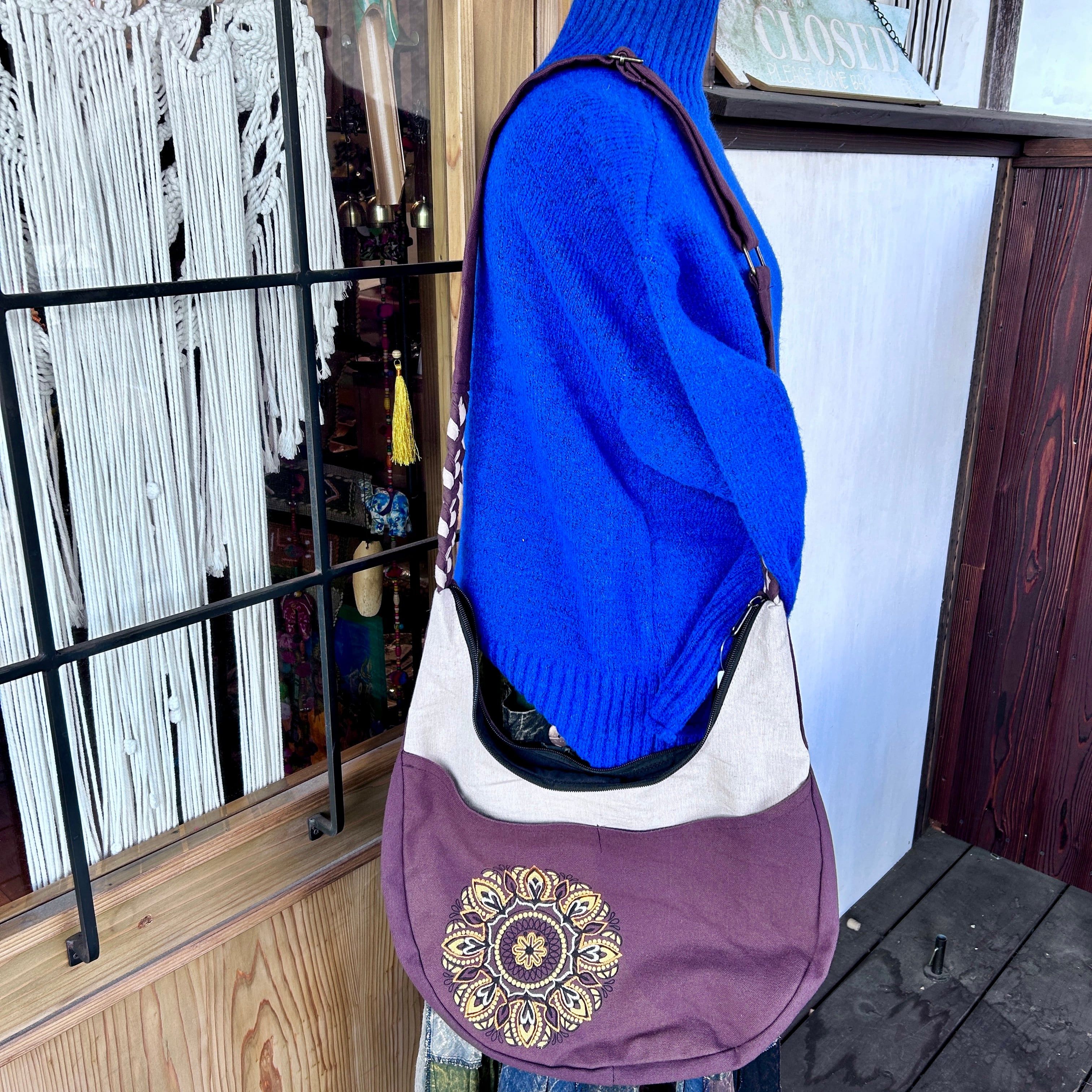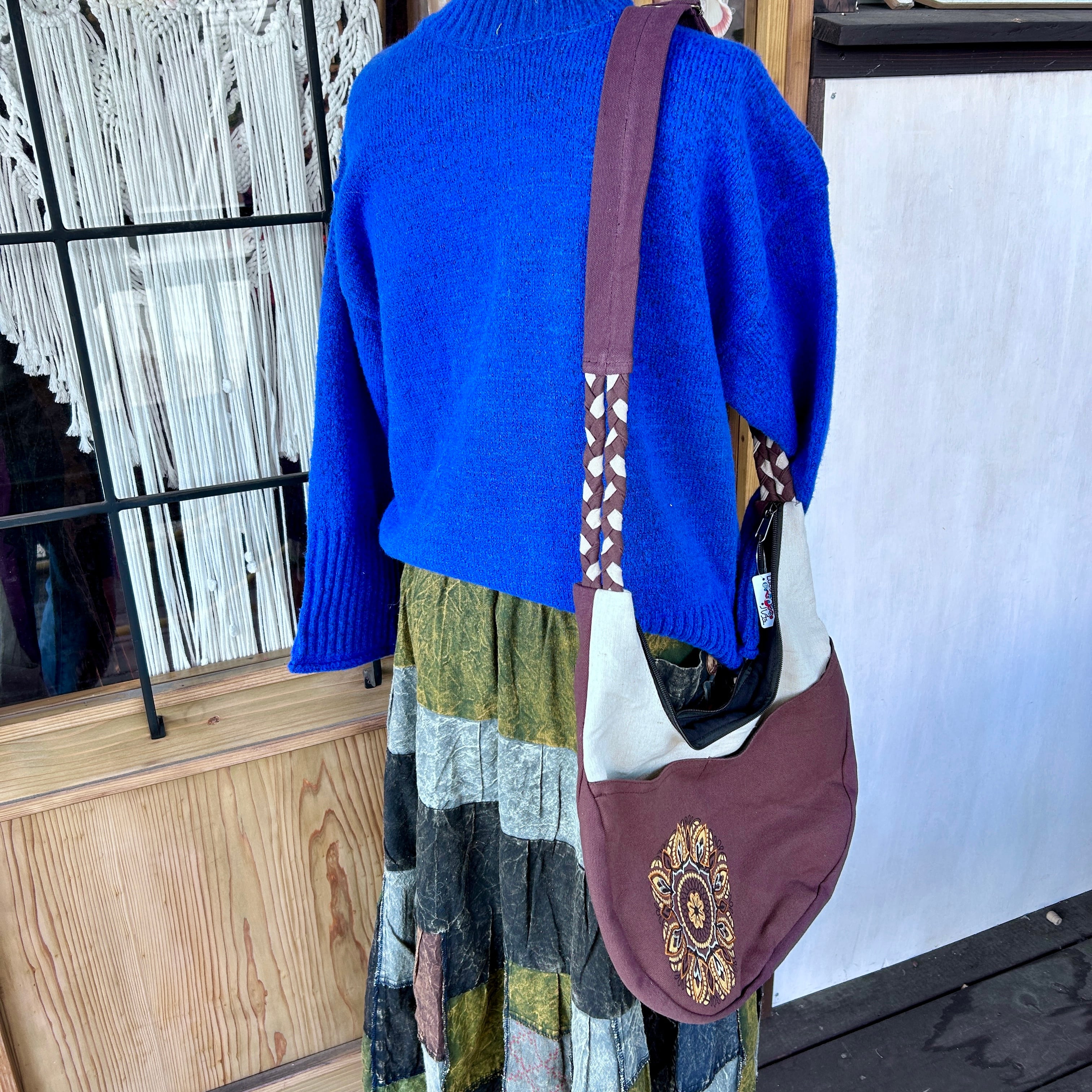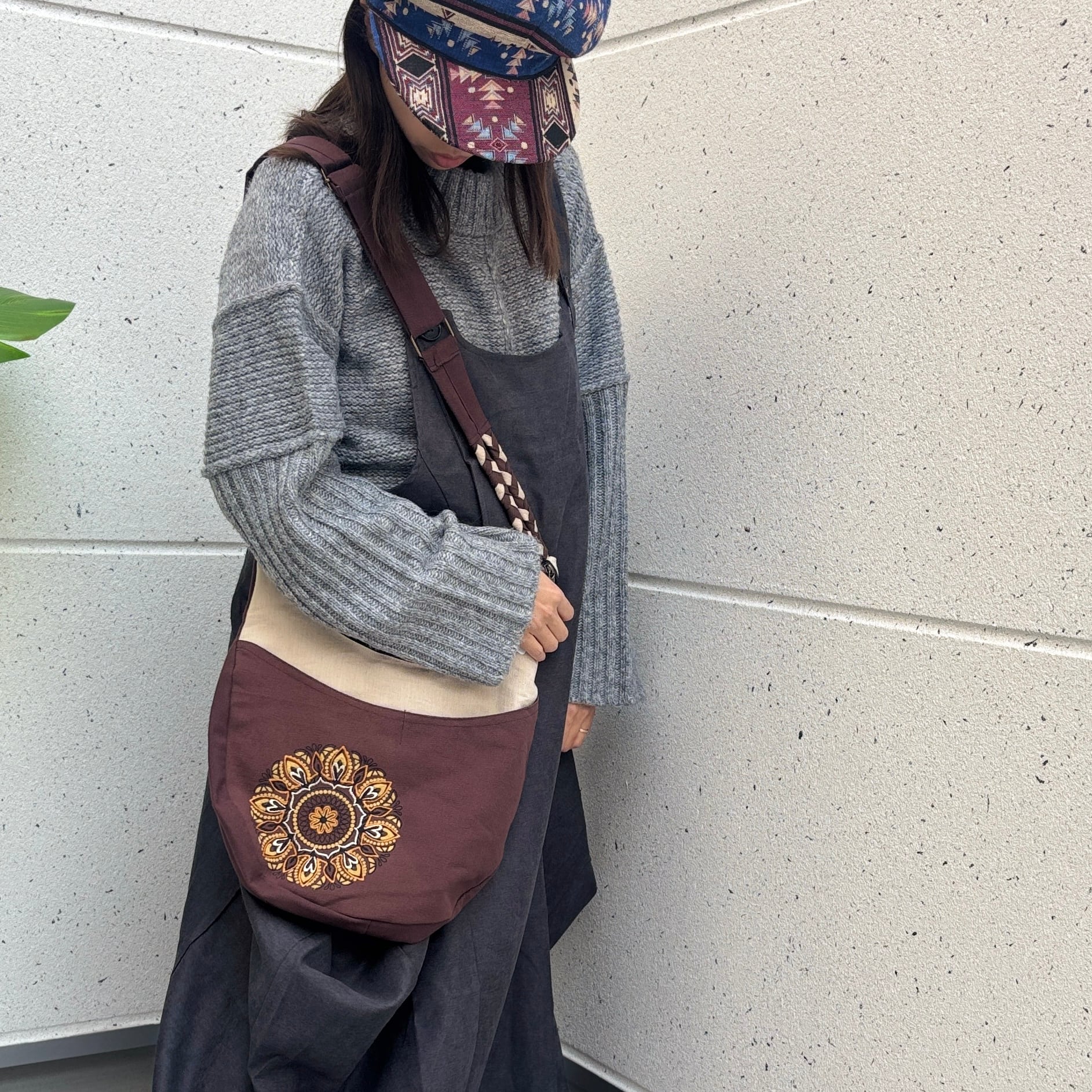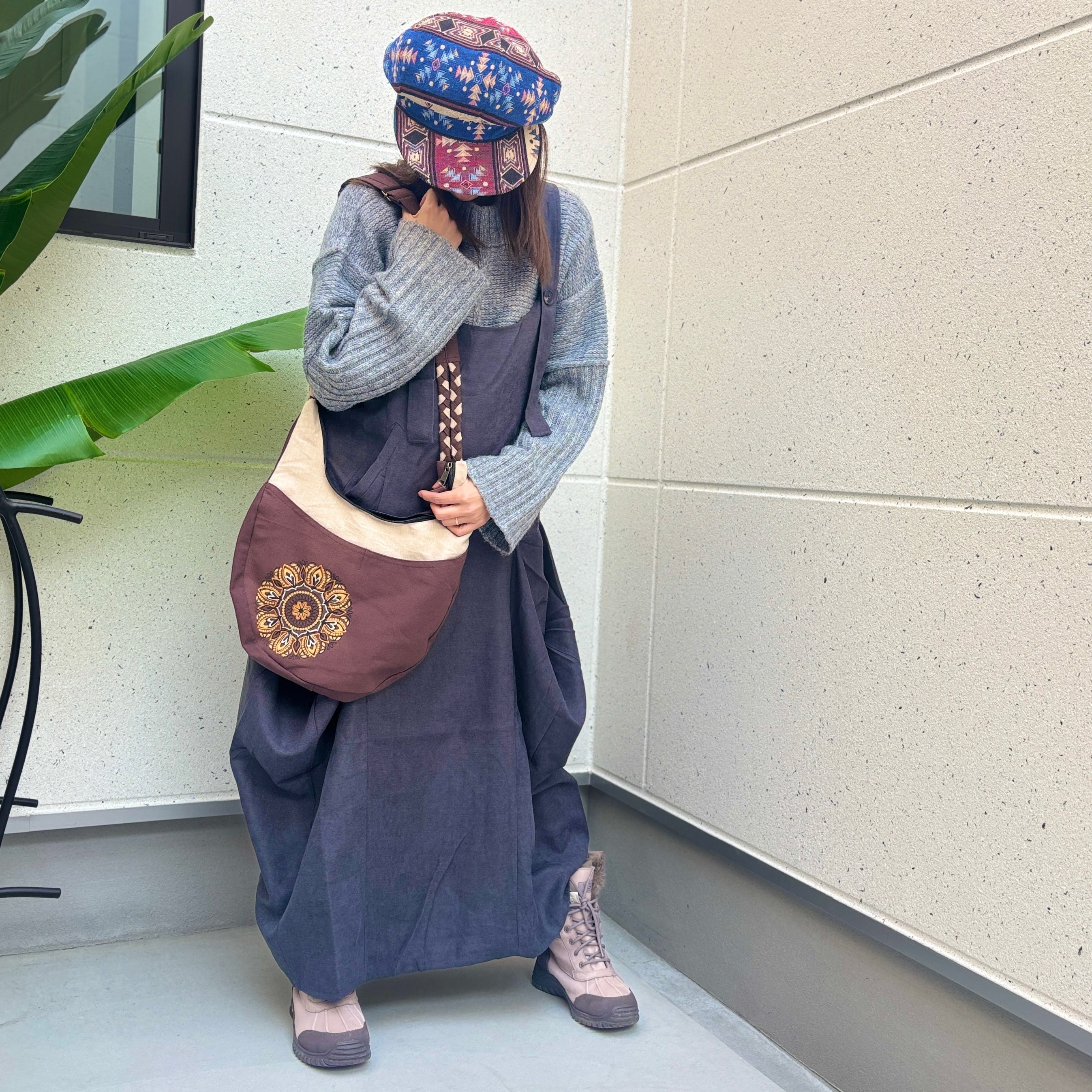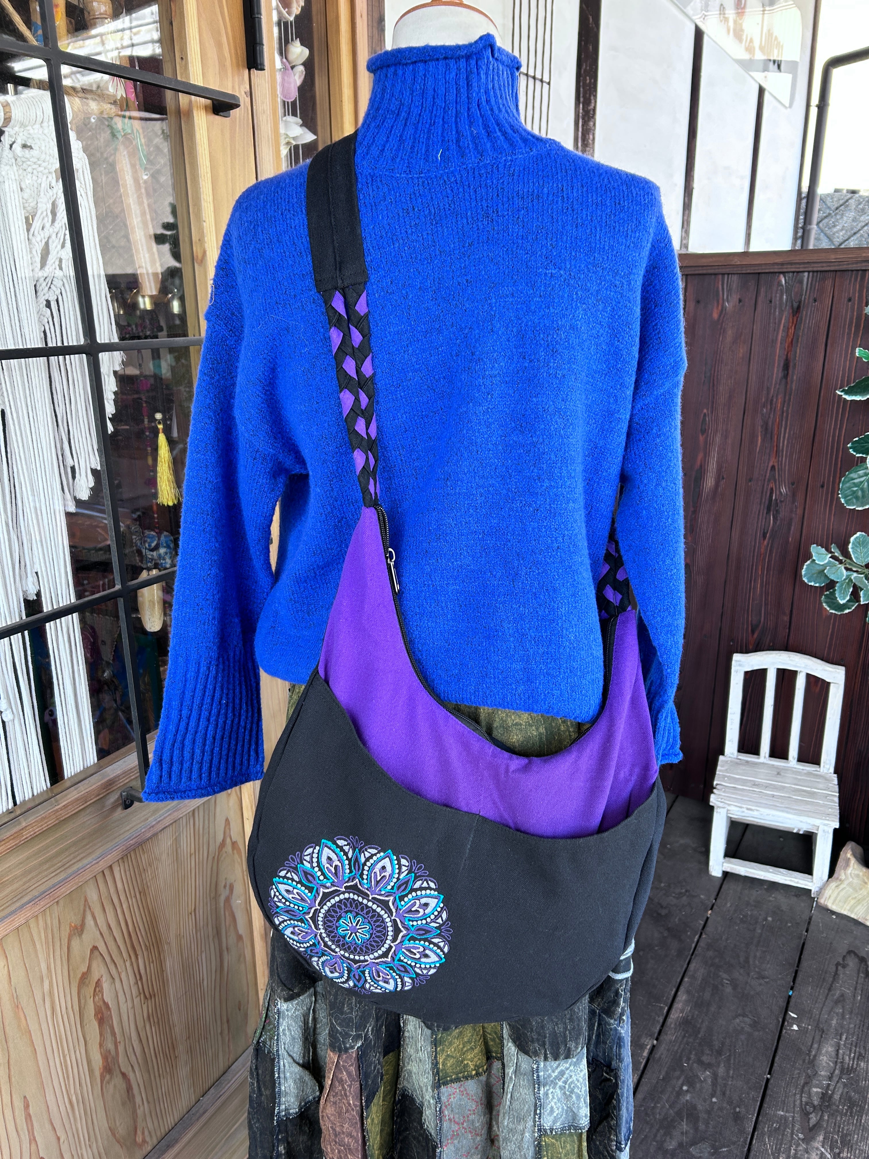 手作りのため、柄の出方に若干の個体差があることがございます。これもマンダラ柄ラウンドバッグならではの魅力としてお楽しみいただければ幸いです。
