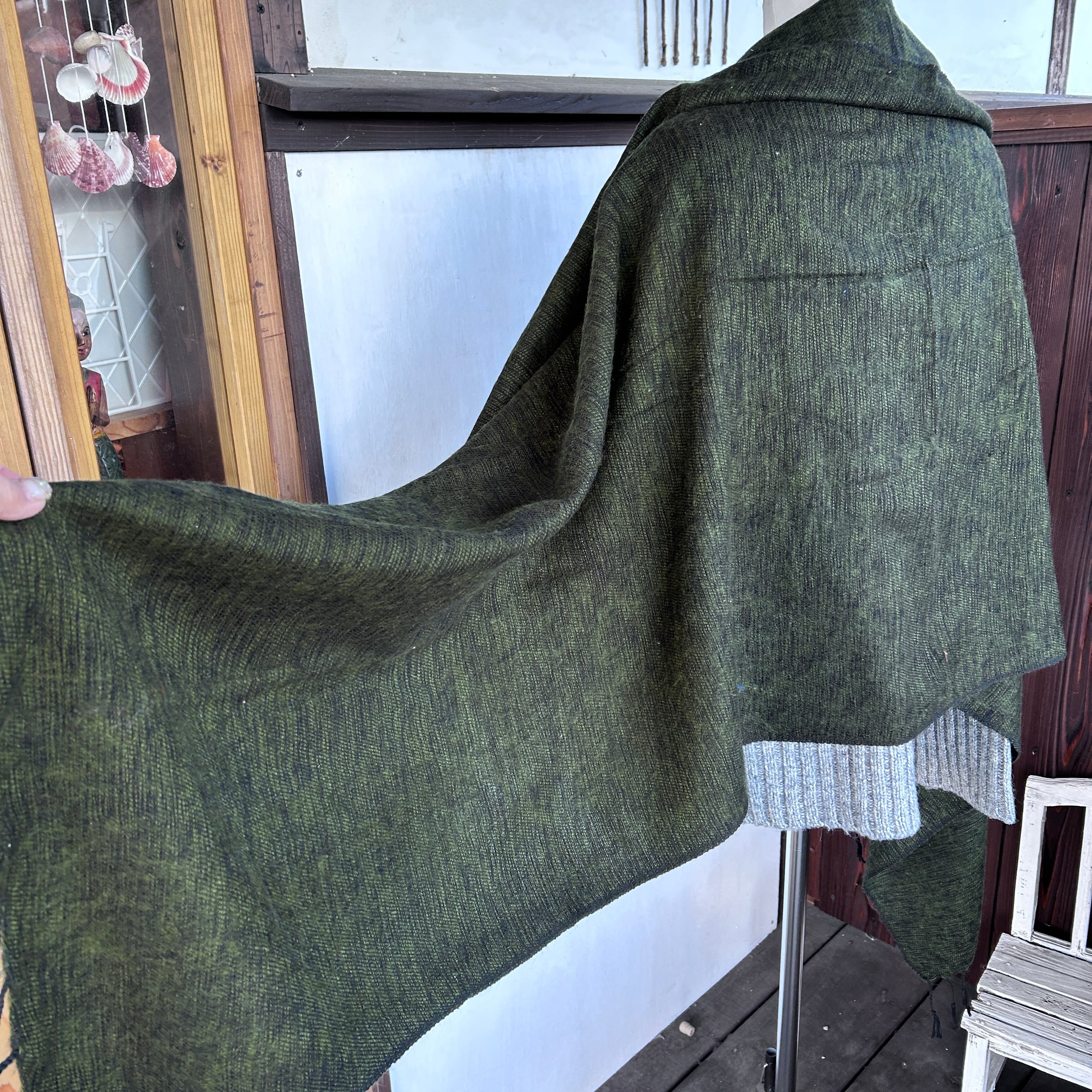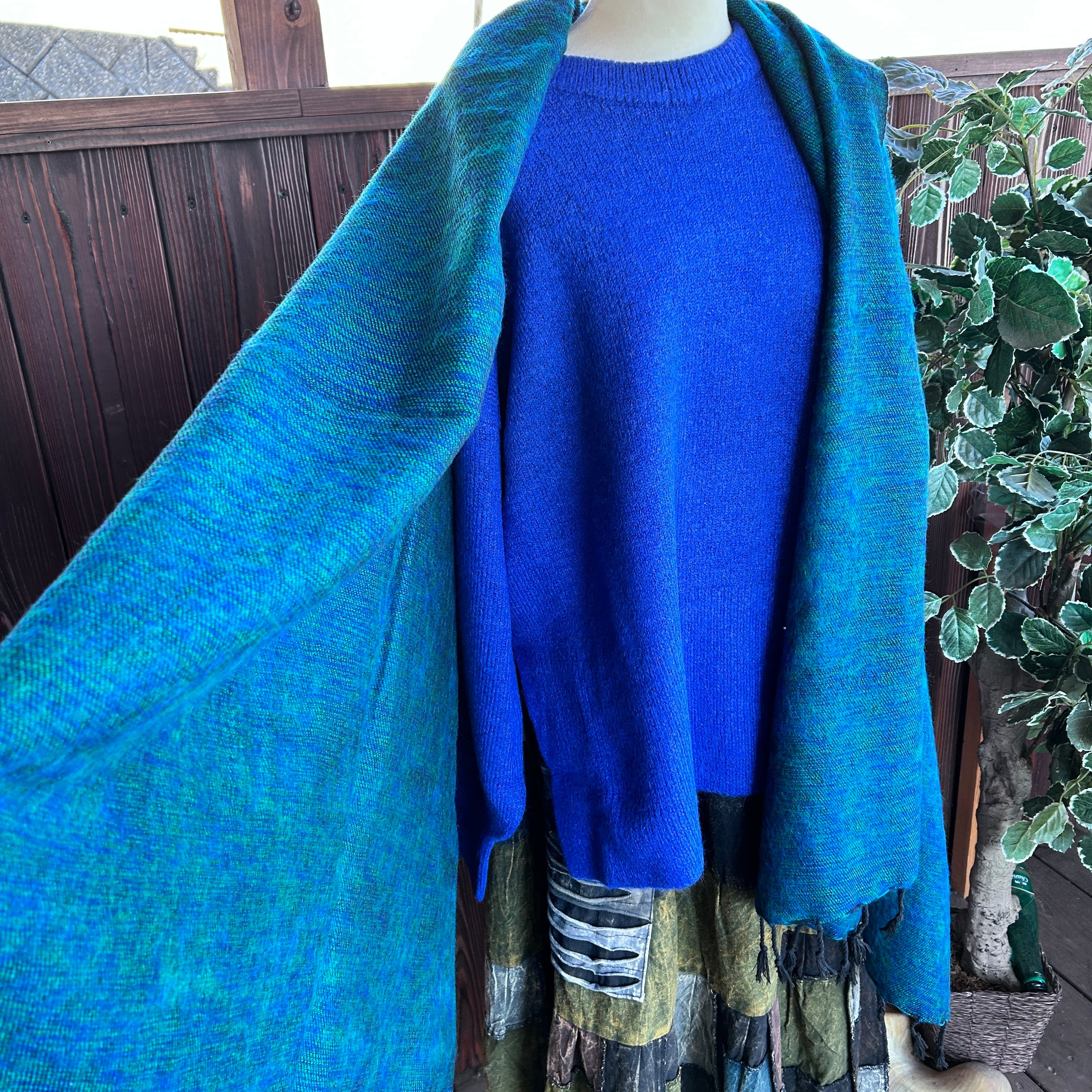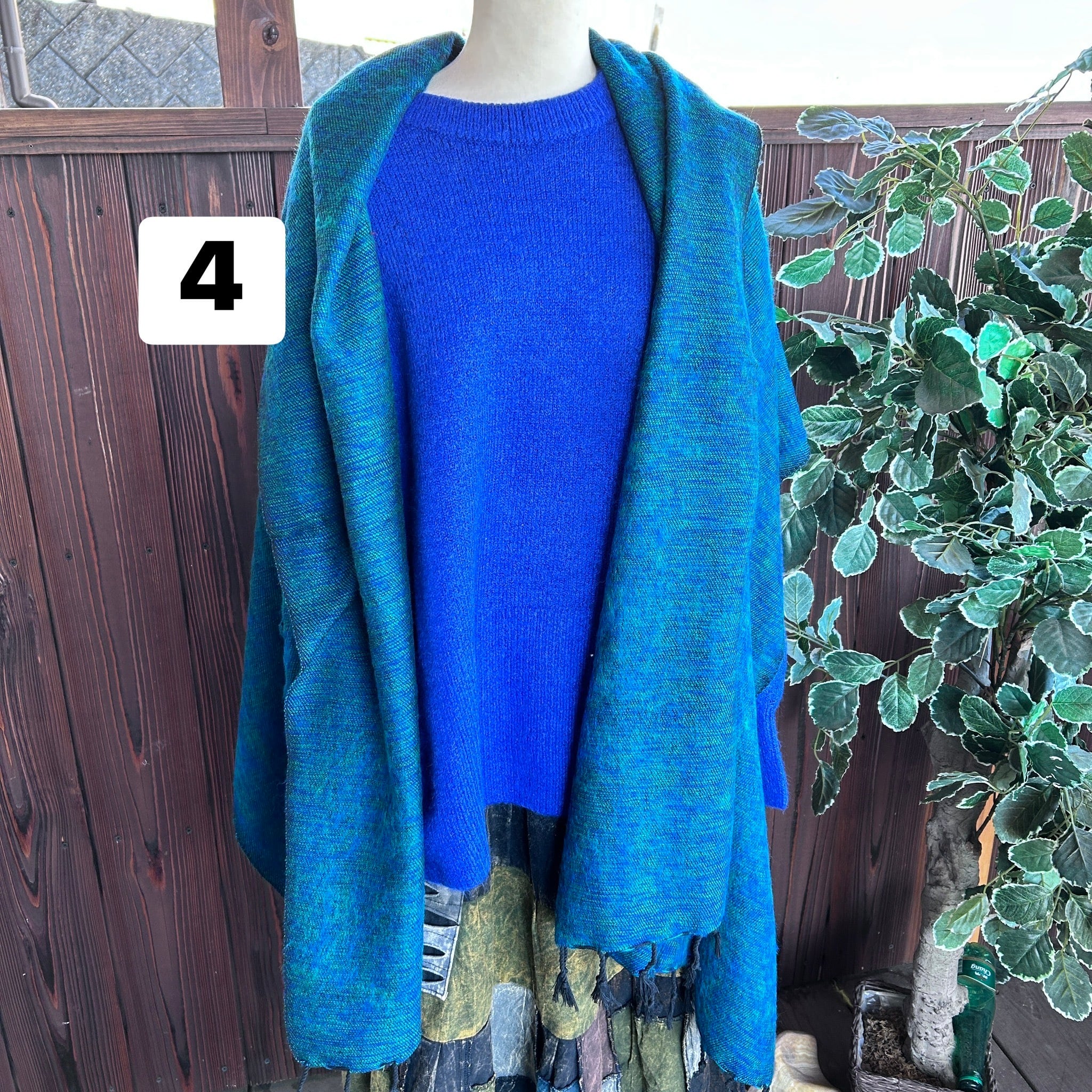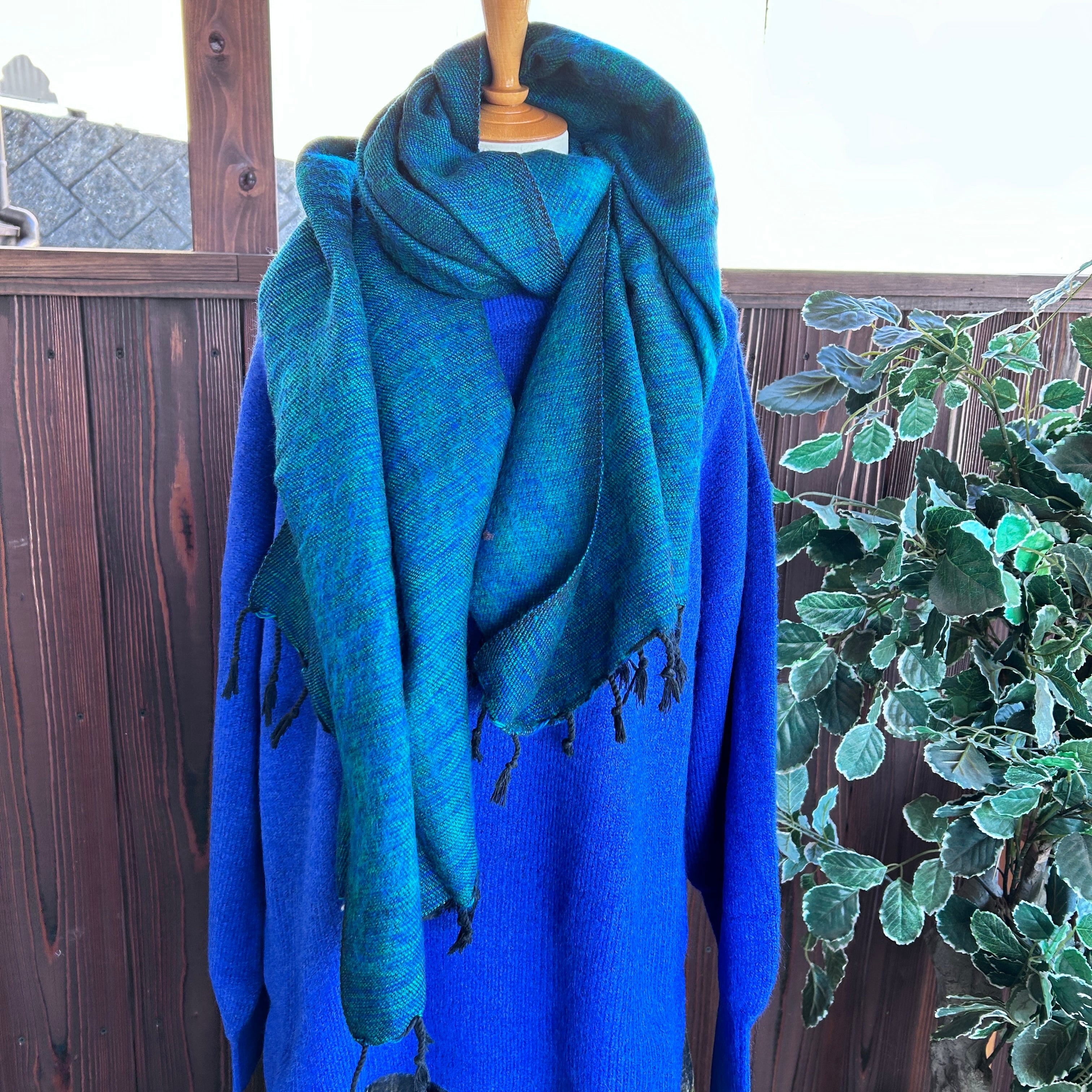マフラー、ポンチョ、膝掛け、かけ毛布、