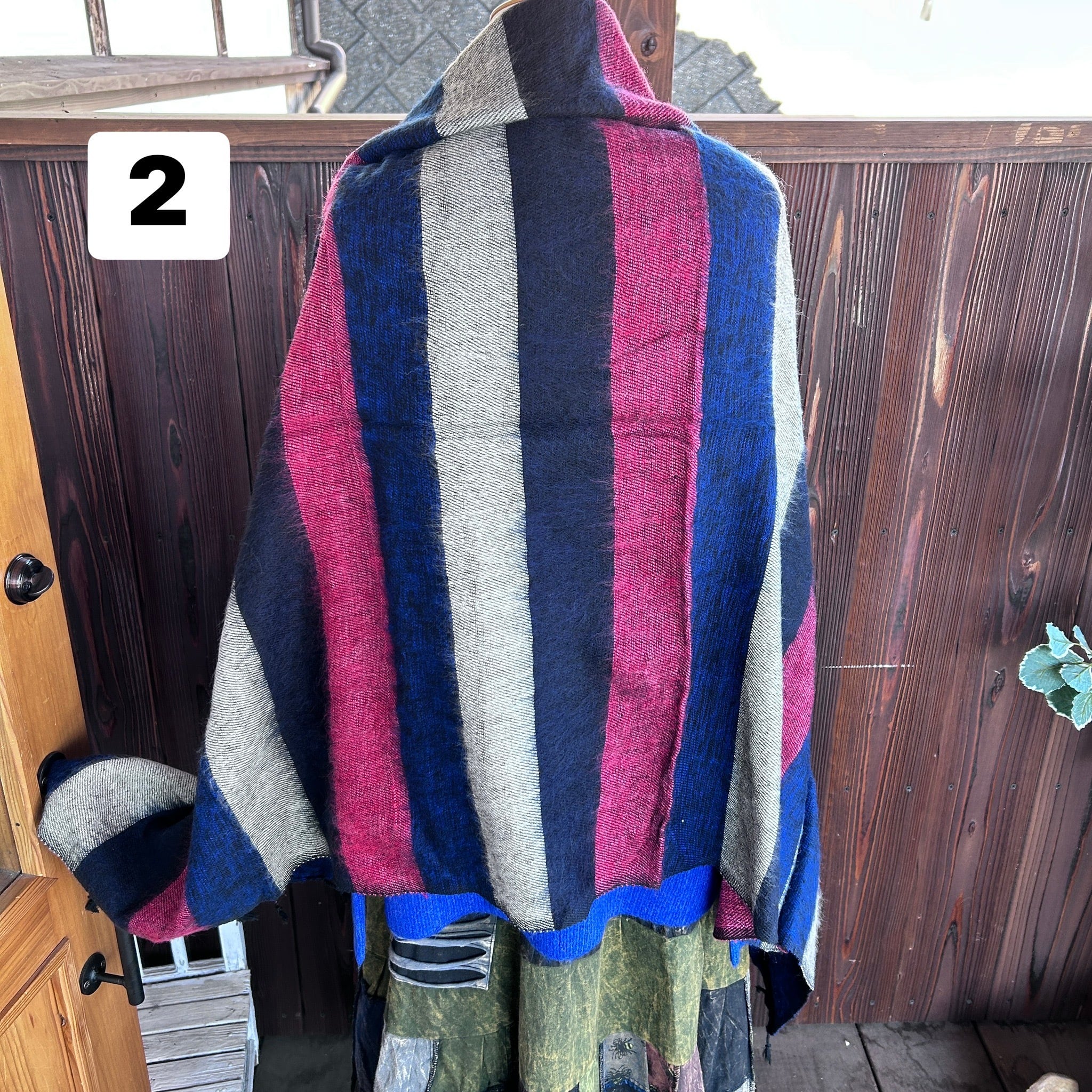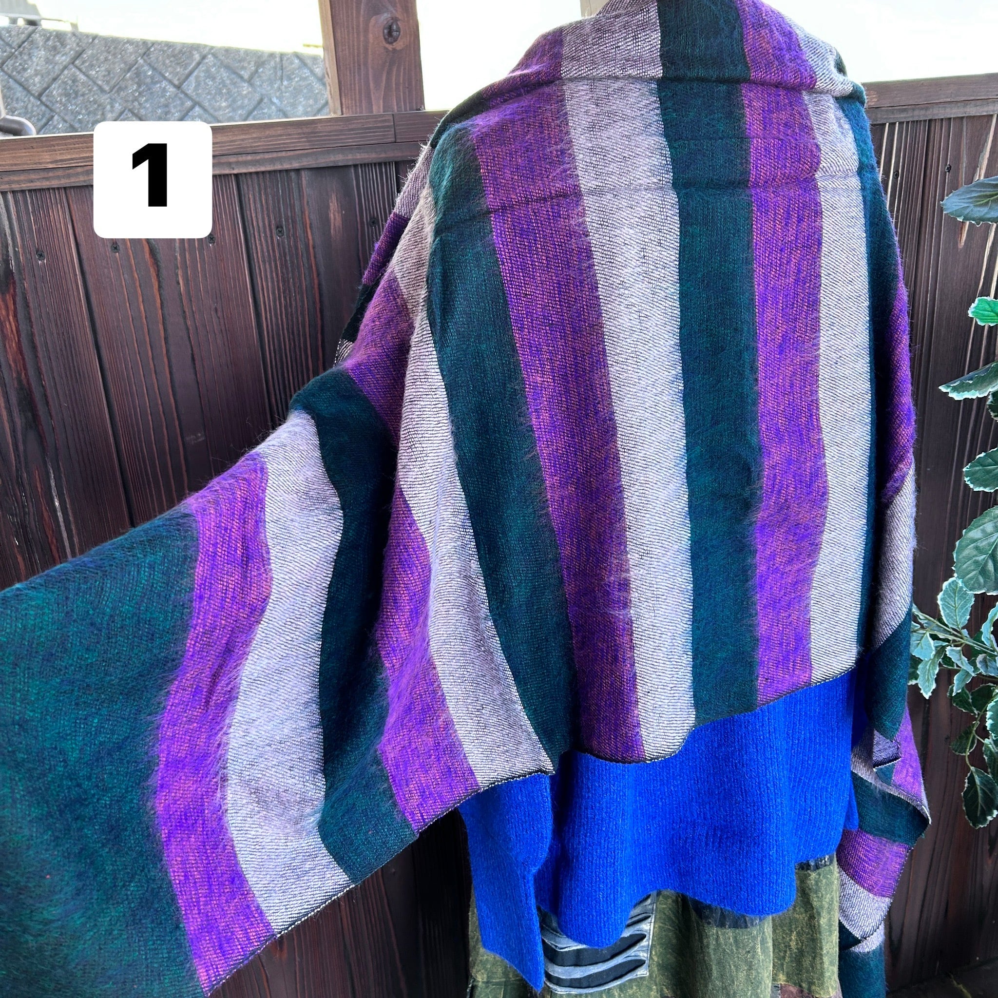 マフラー、ポンチョ、膝掛け、かけ毛布、