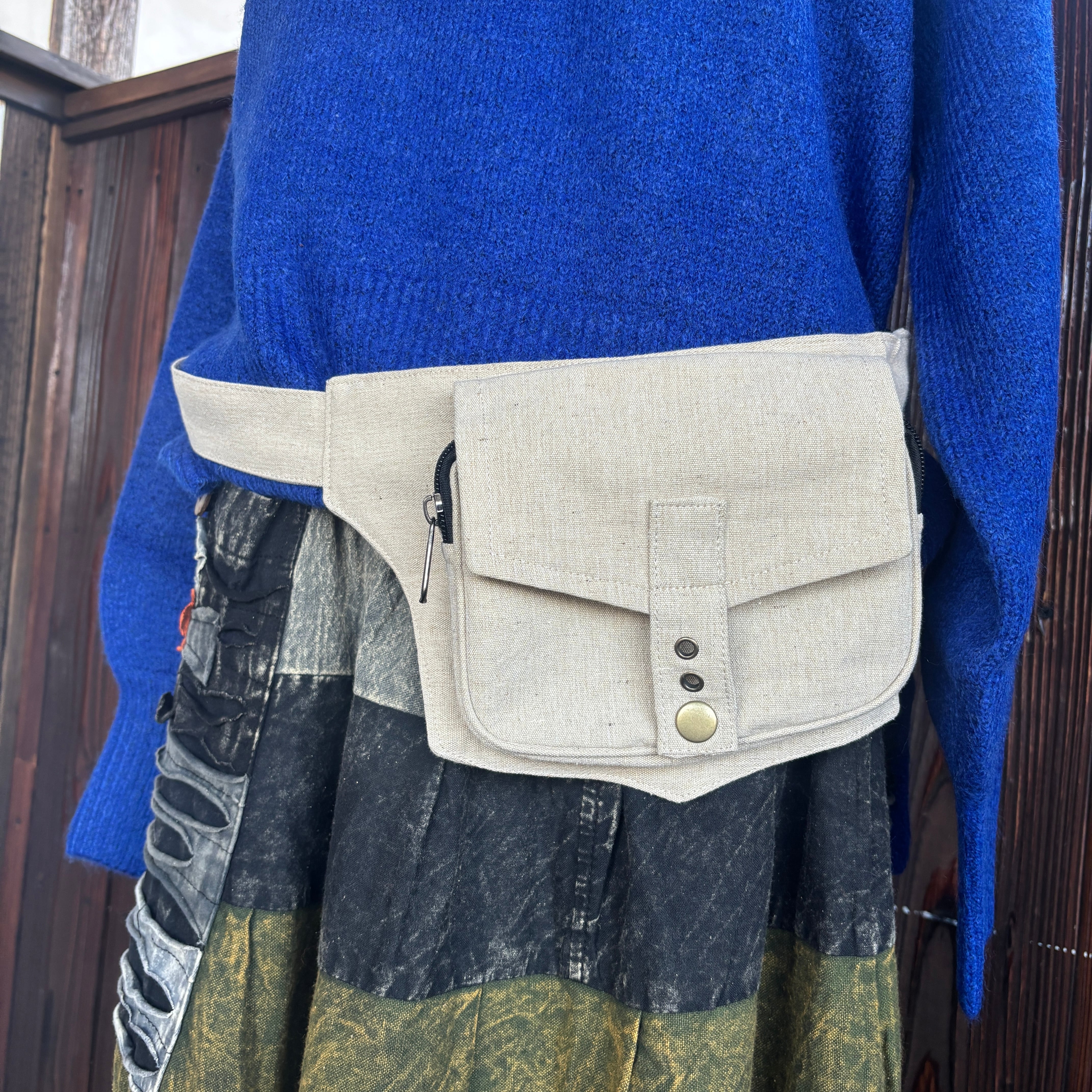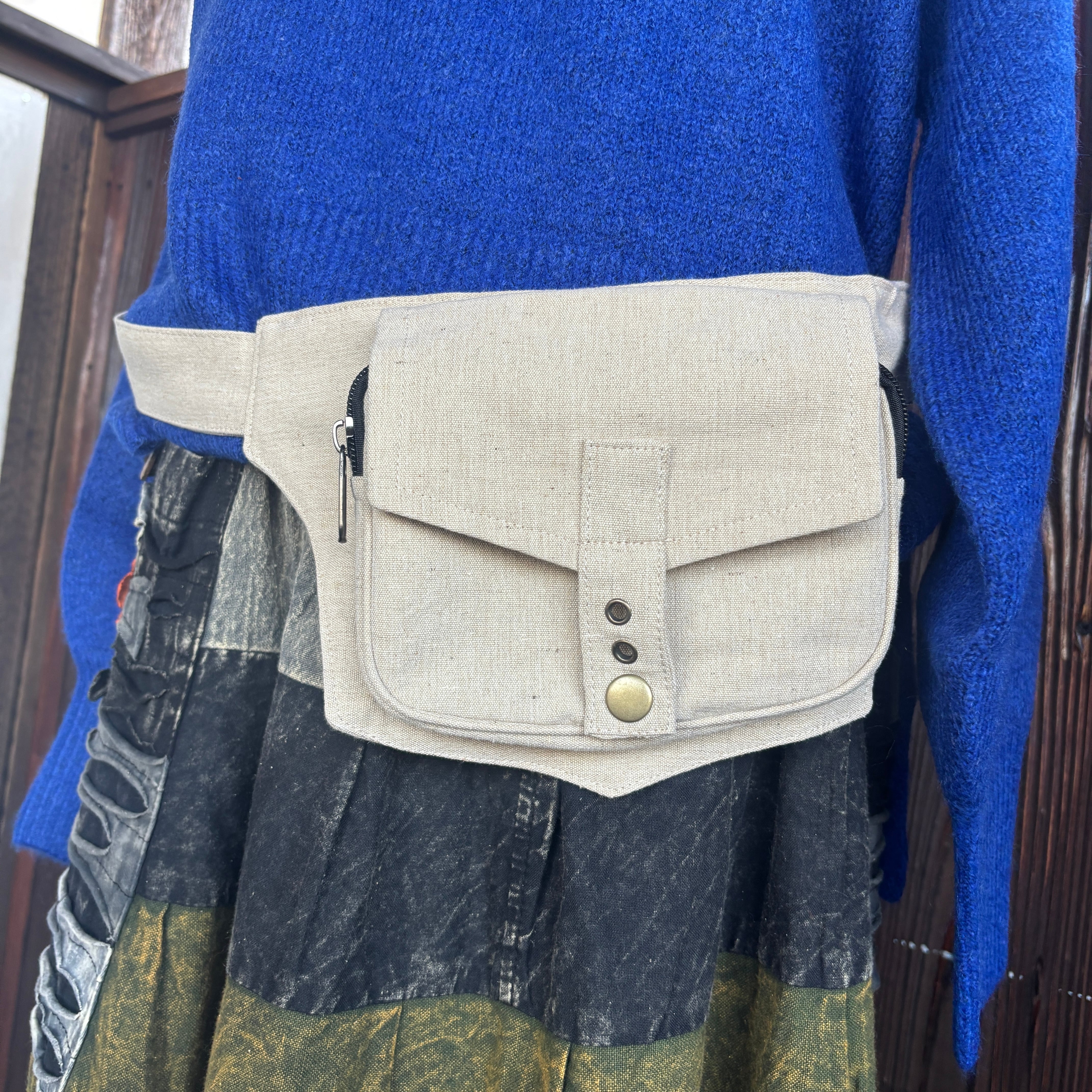 ショルダーとしての斜めがけと、ウエストポーチとしての2通りの使い方ができるのが魅力です。