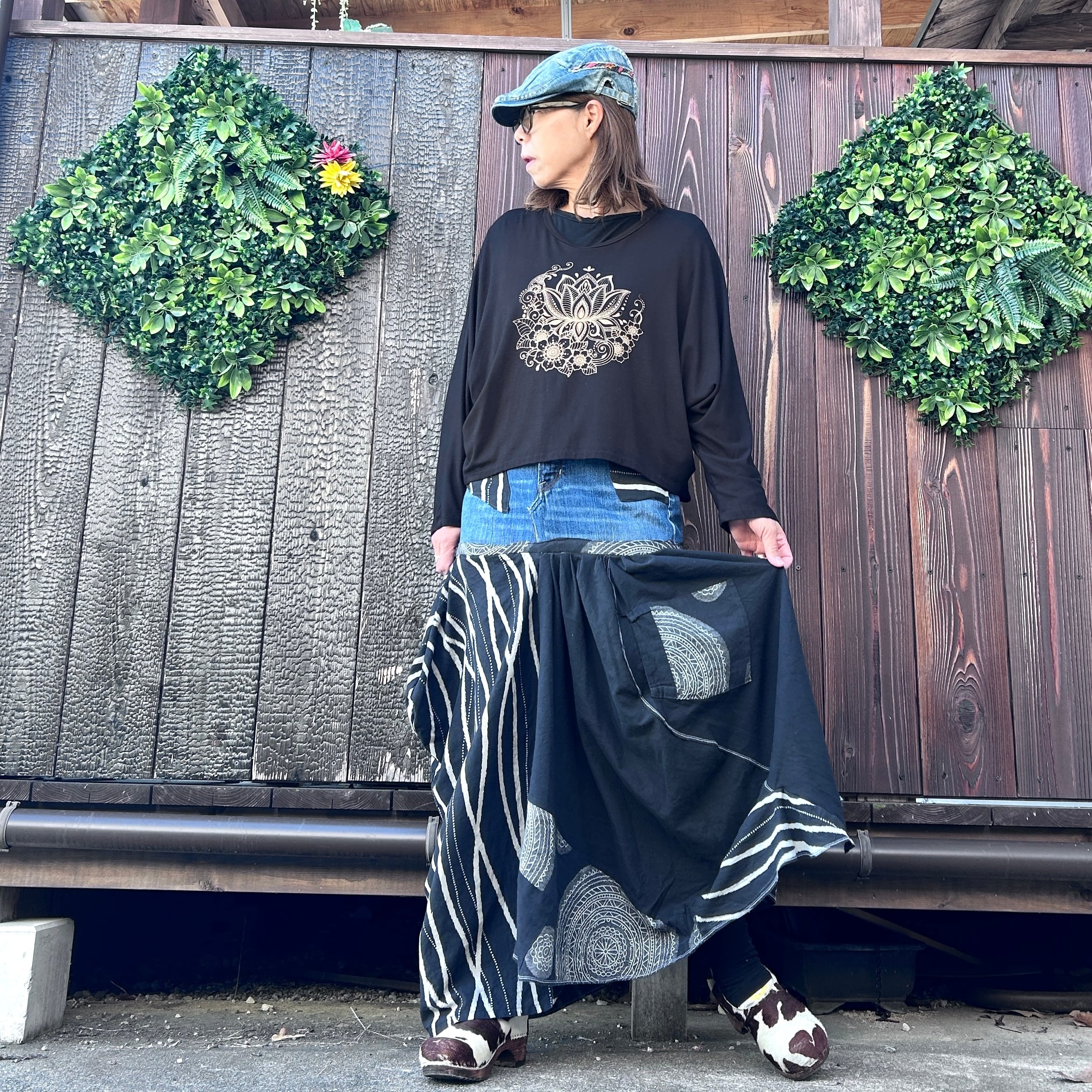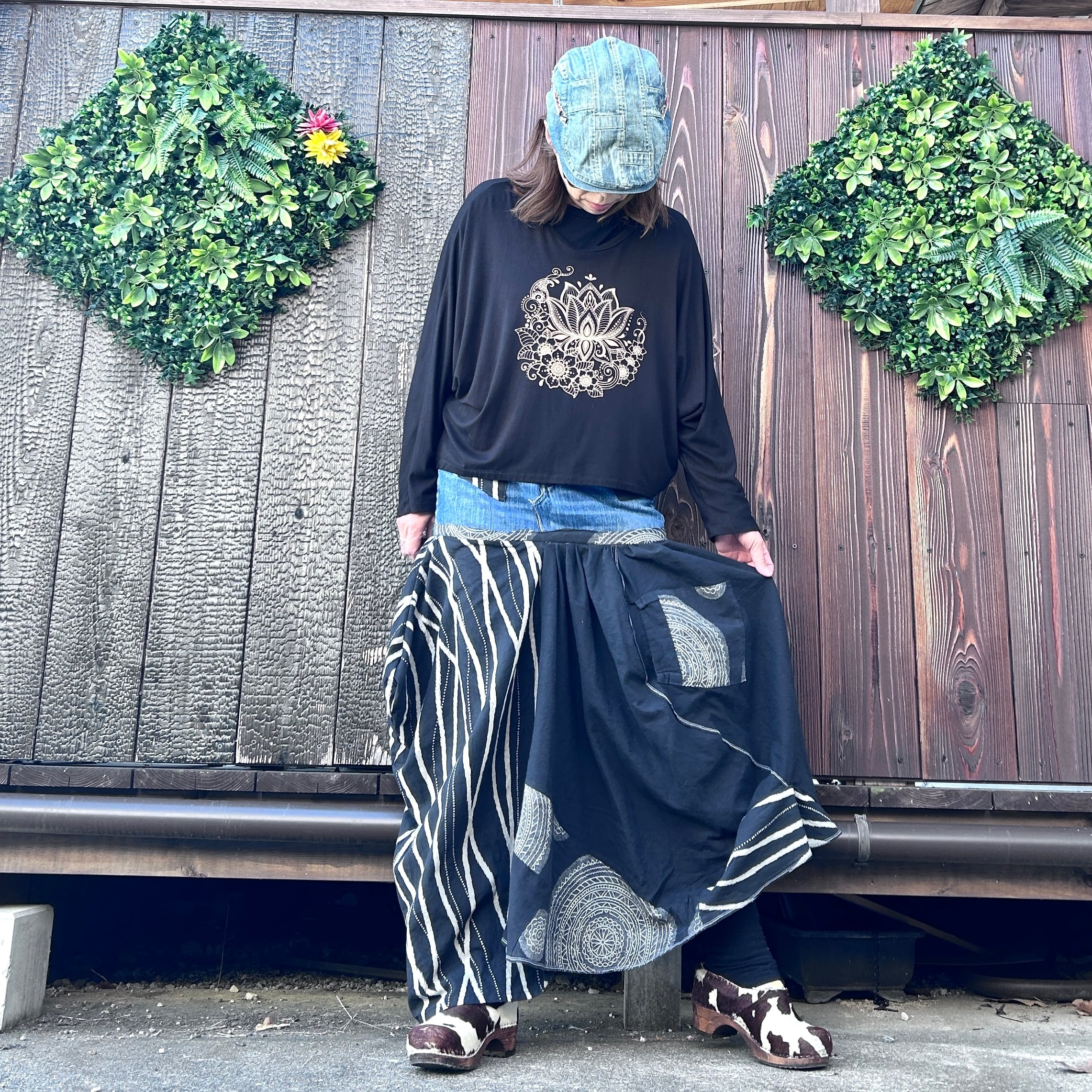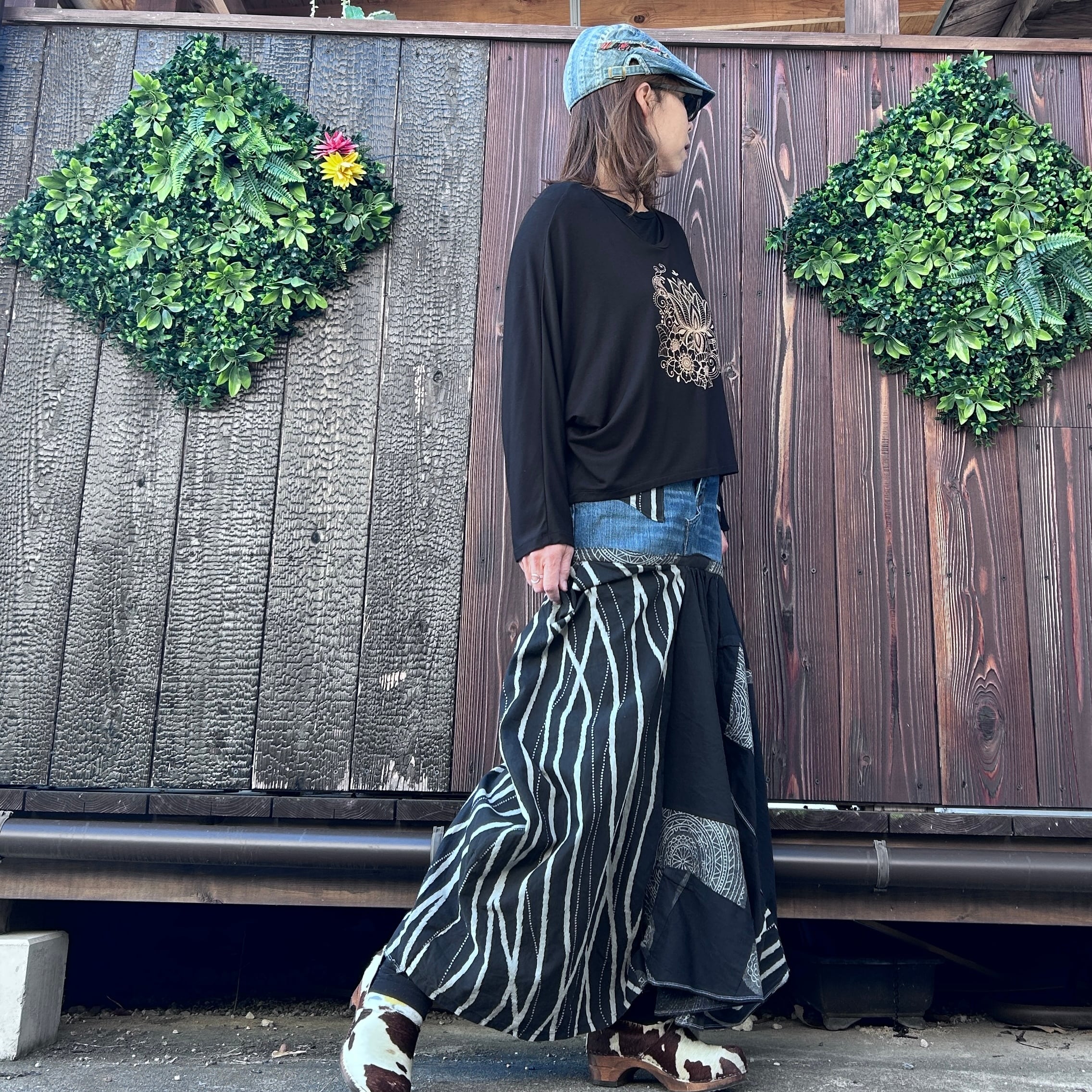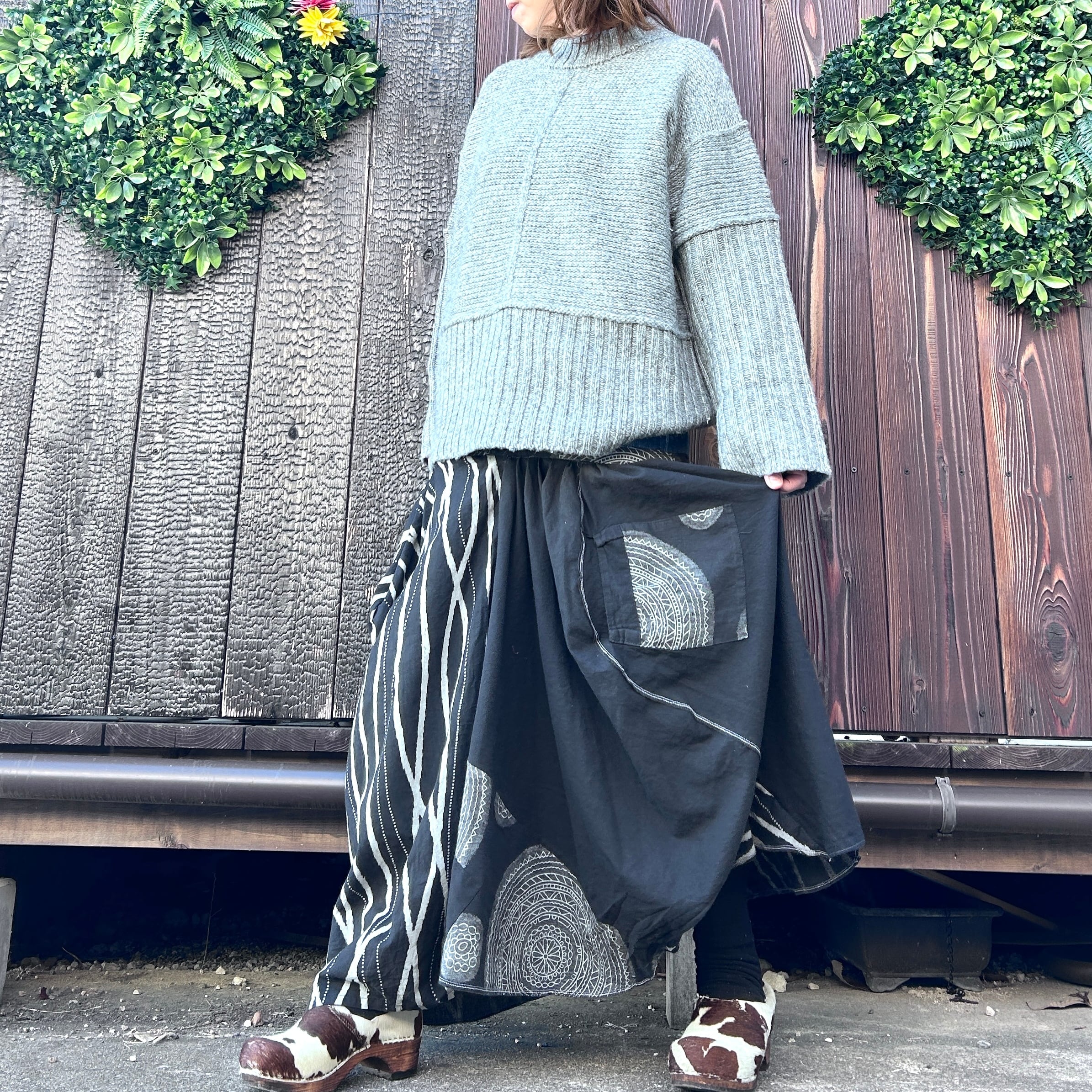 モノトーンの切り替えと和柄テイストでさらに大人エスニック感たっぷりです