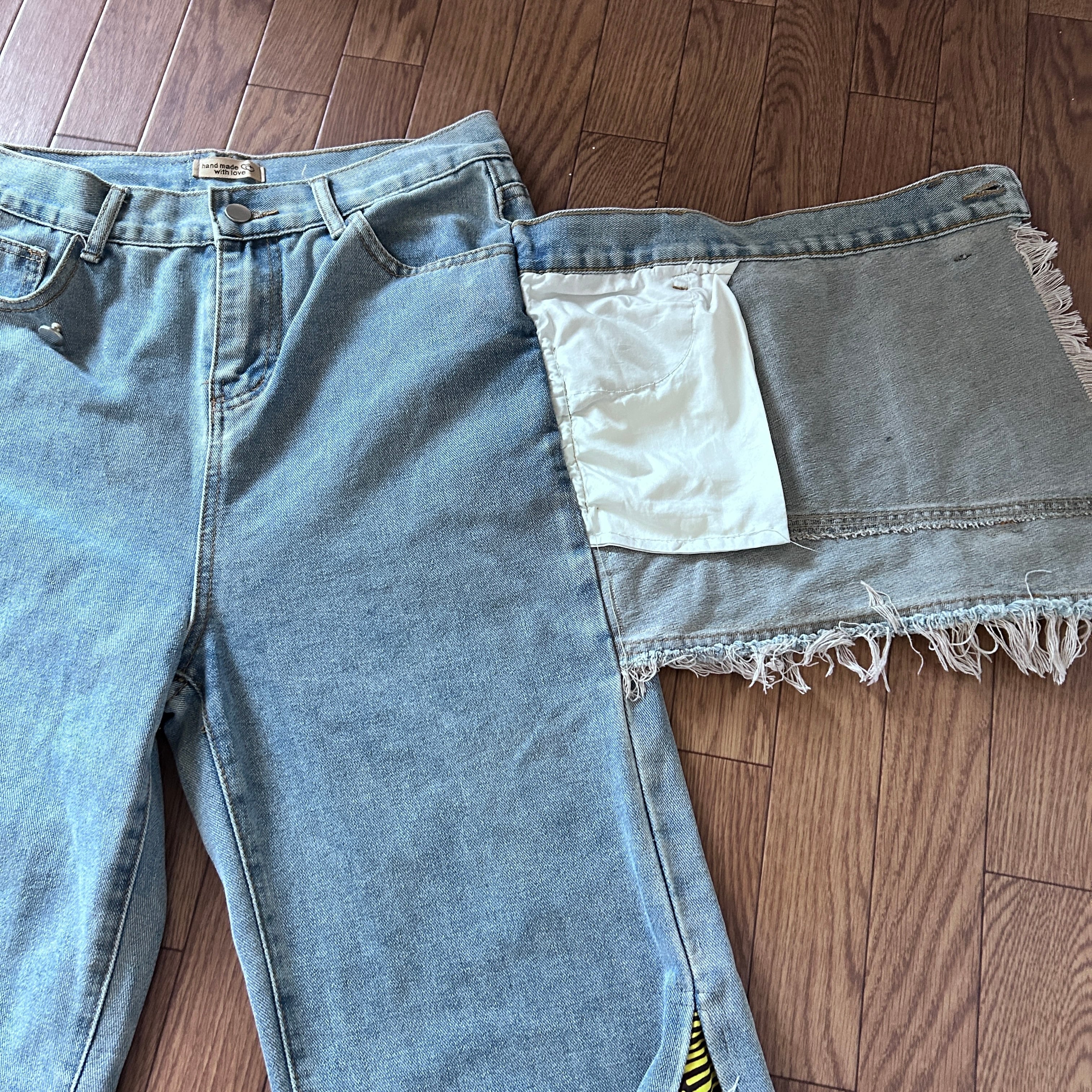 リメイクデニムを使用しているため、他にはない一品となっています。