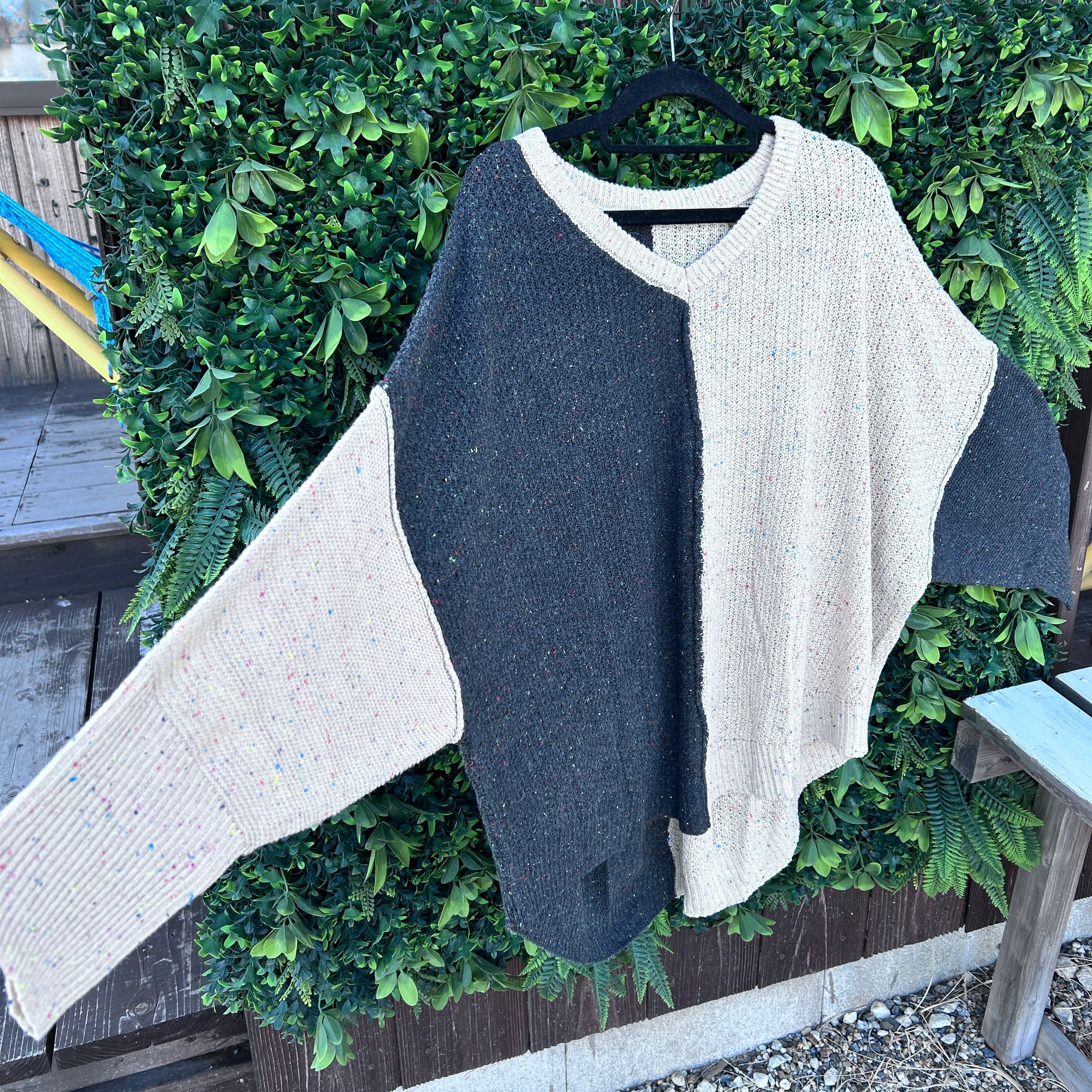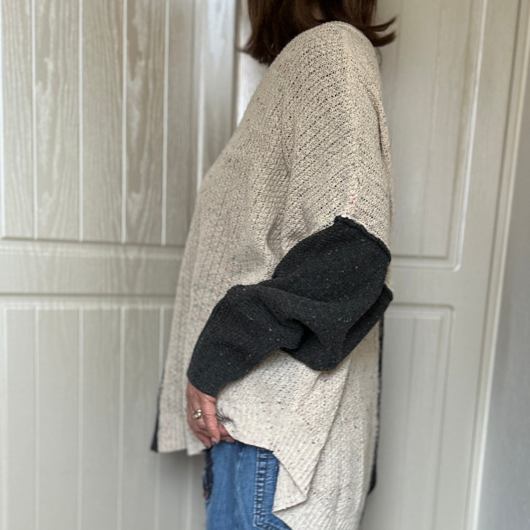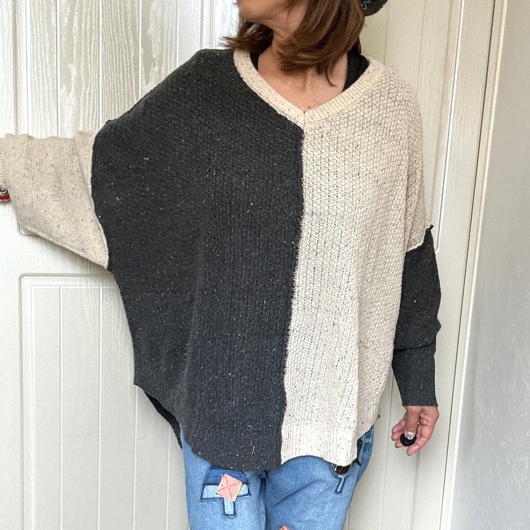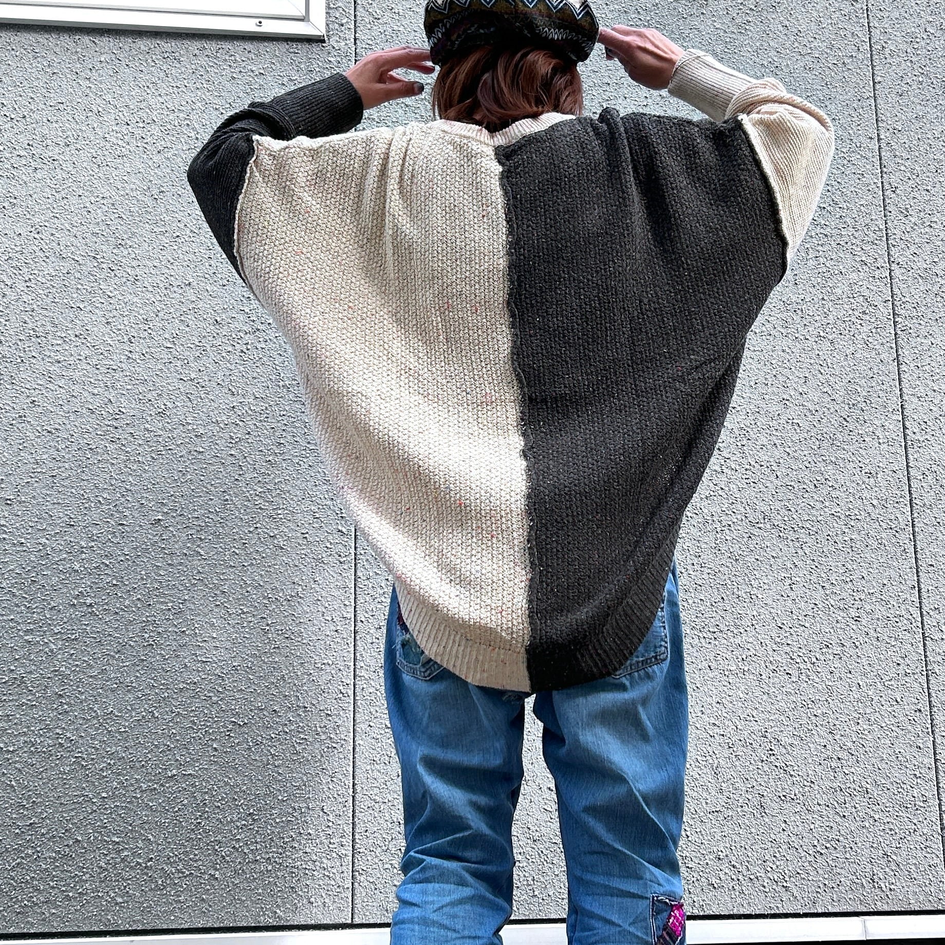 ゆったりとしたドルマンシルエットのニットプルオーバー。