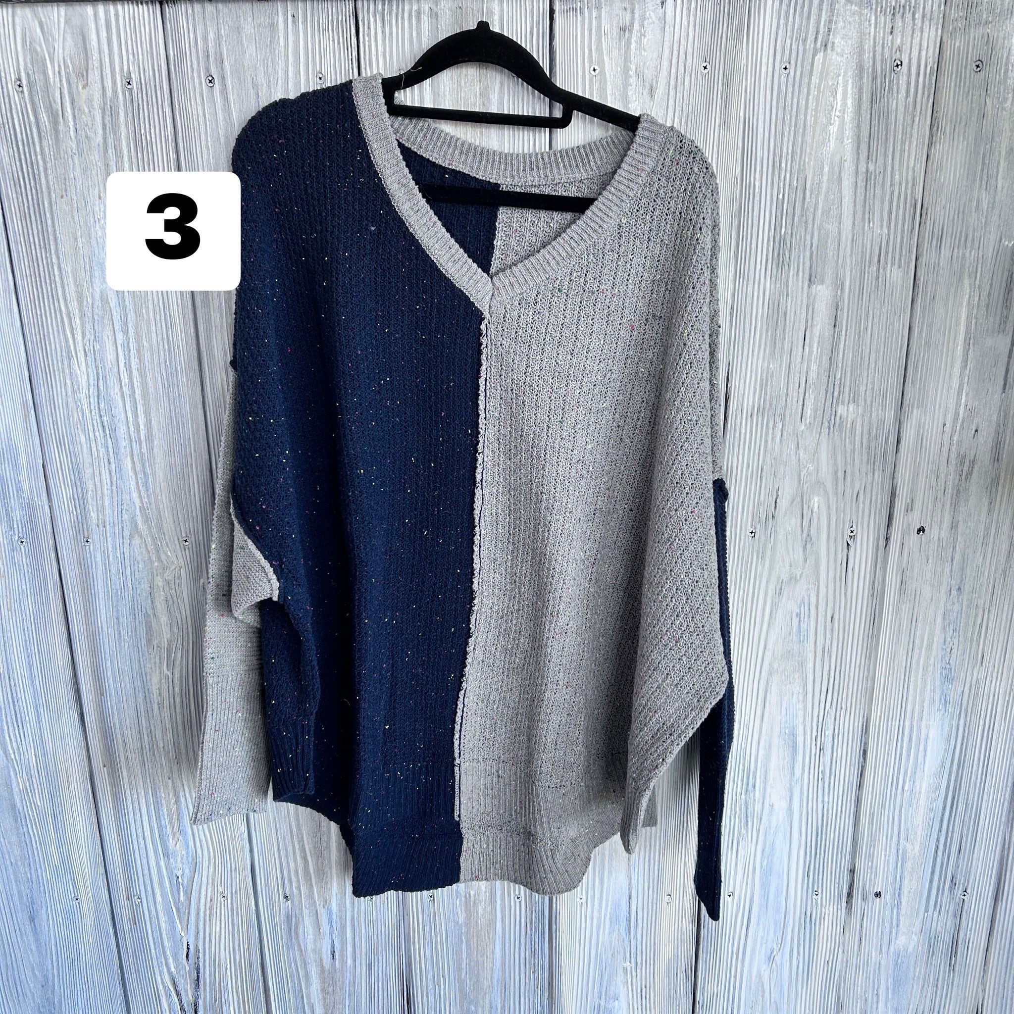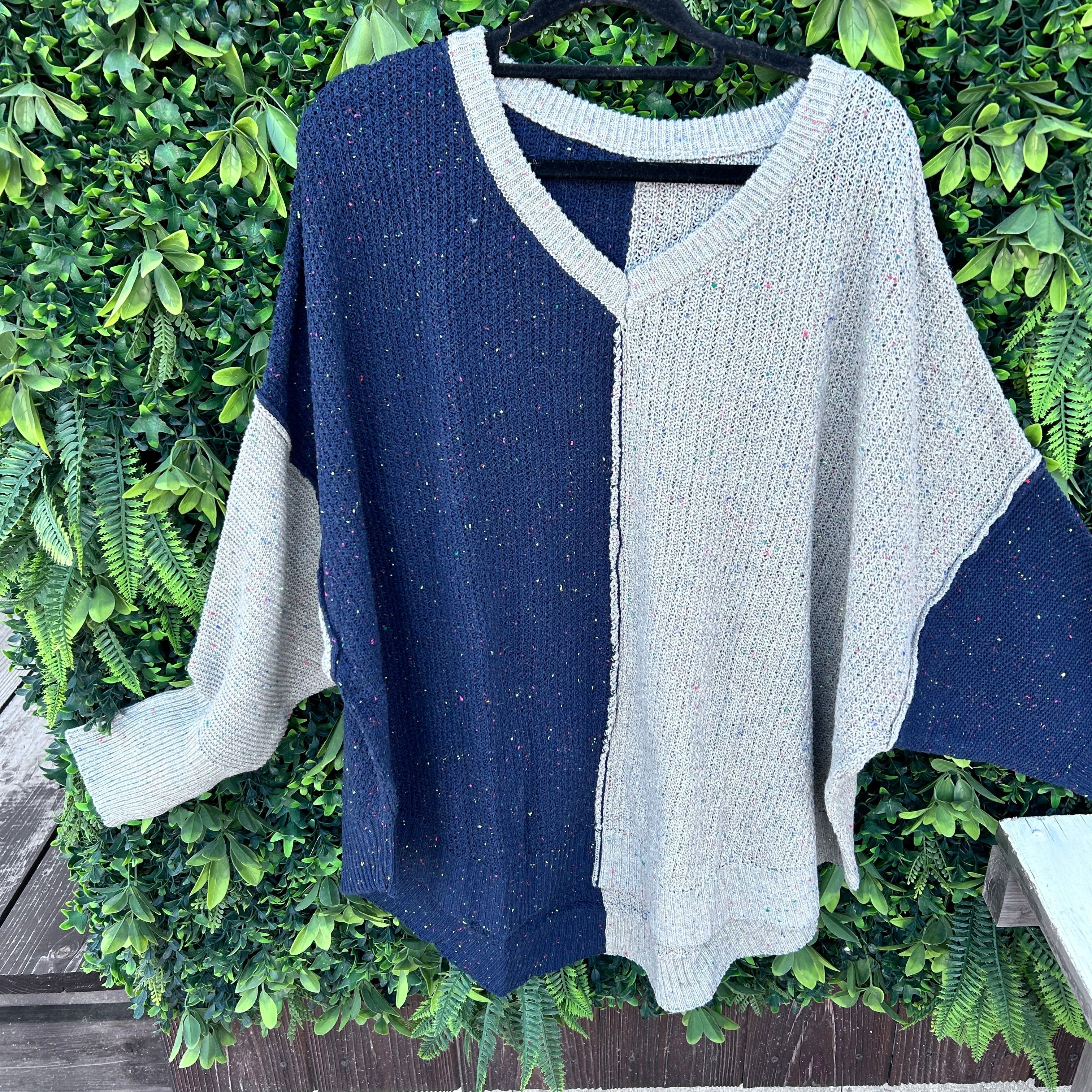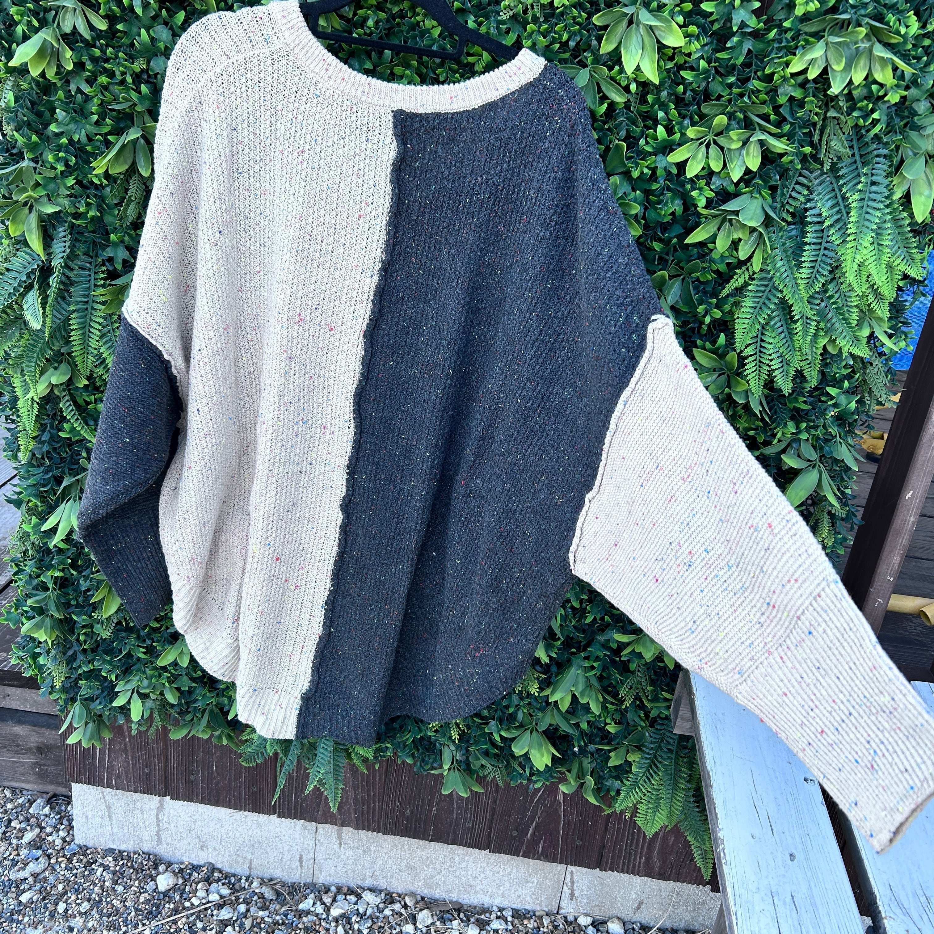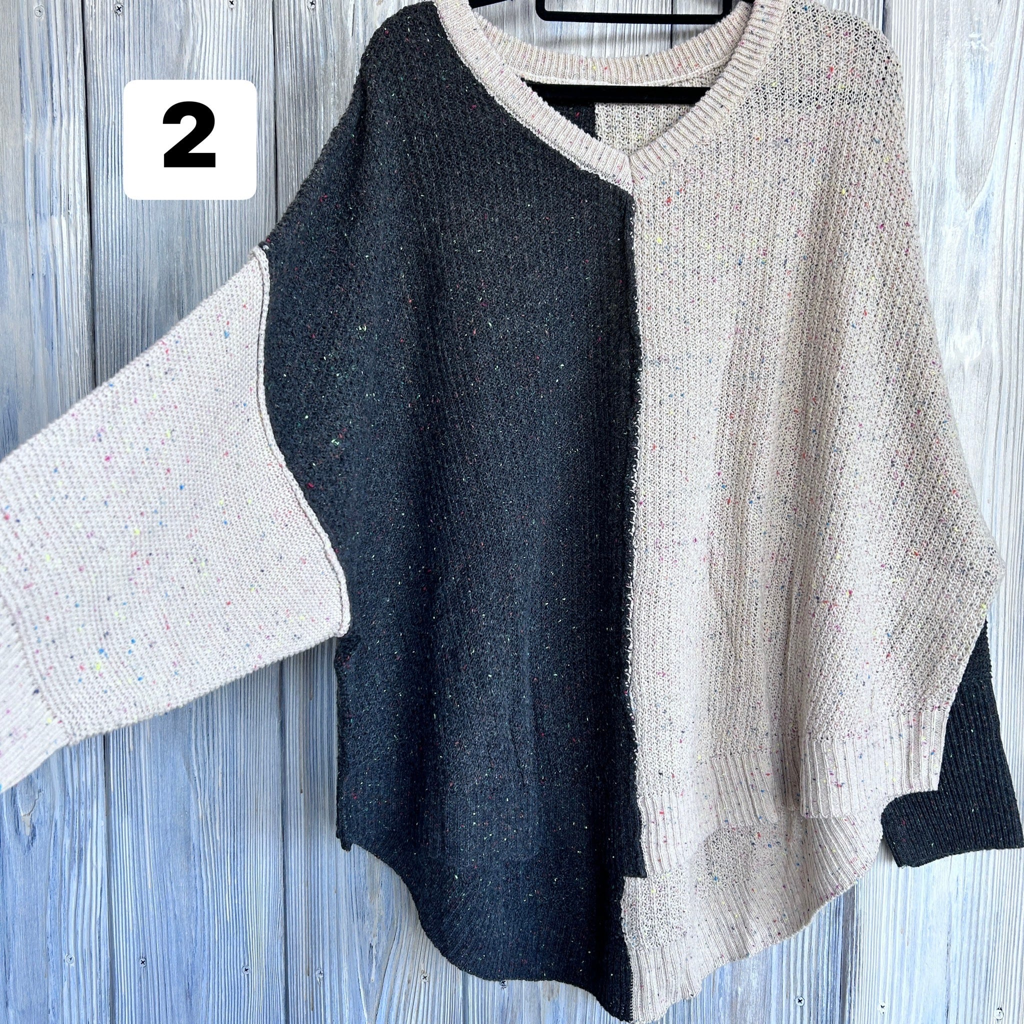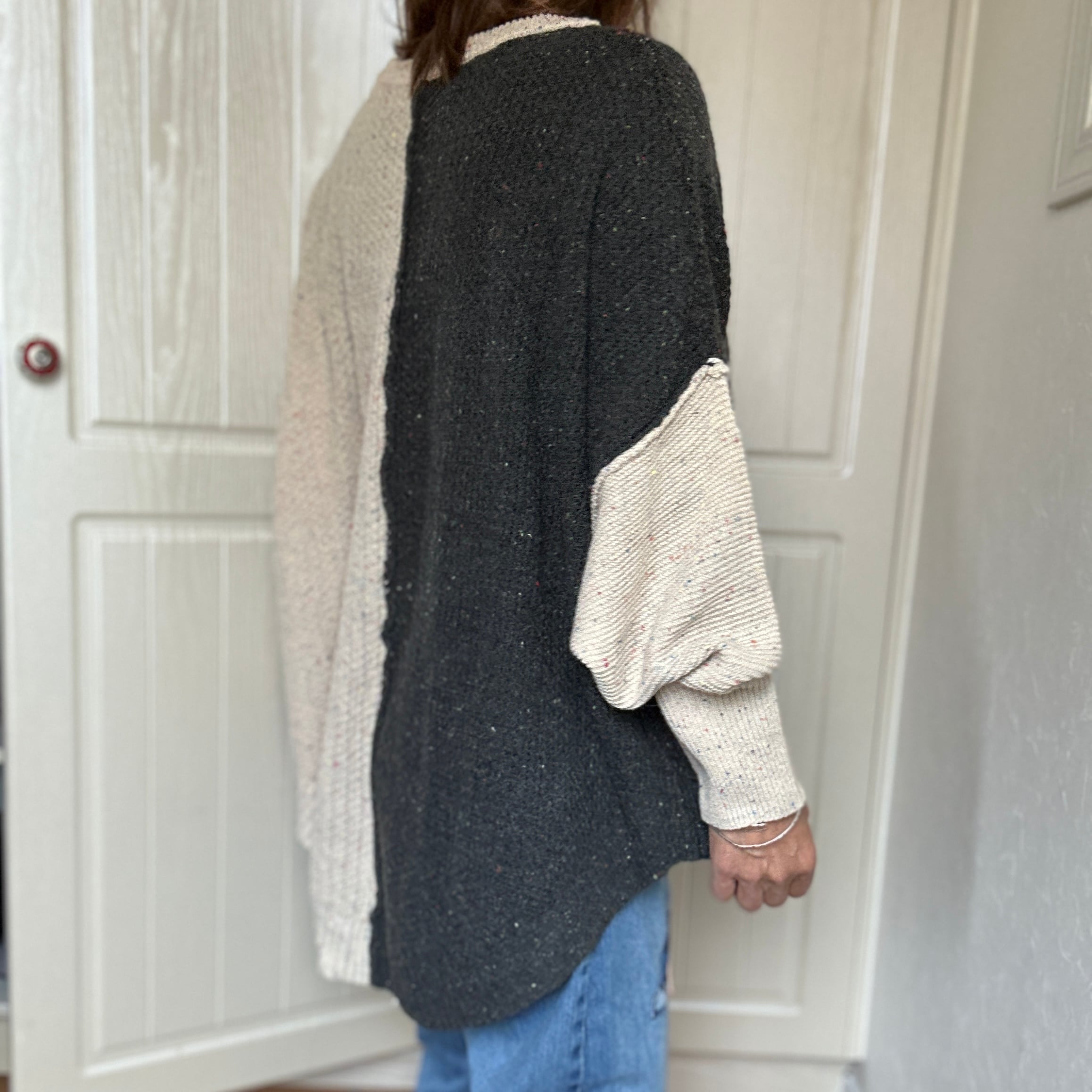 ゆったりとしたドルマンシルエットのニットプルオーバー。