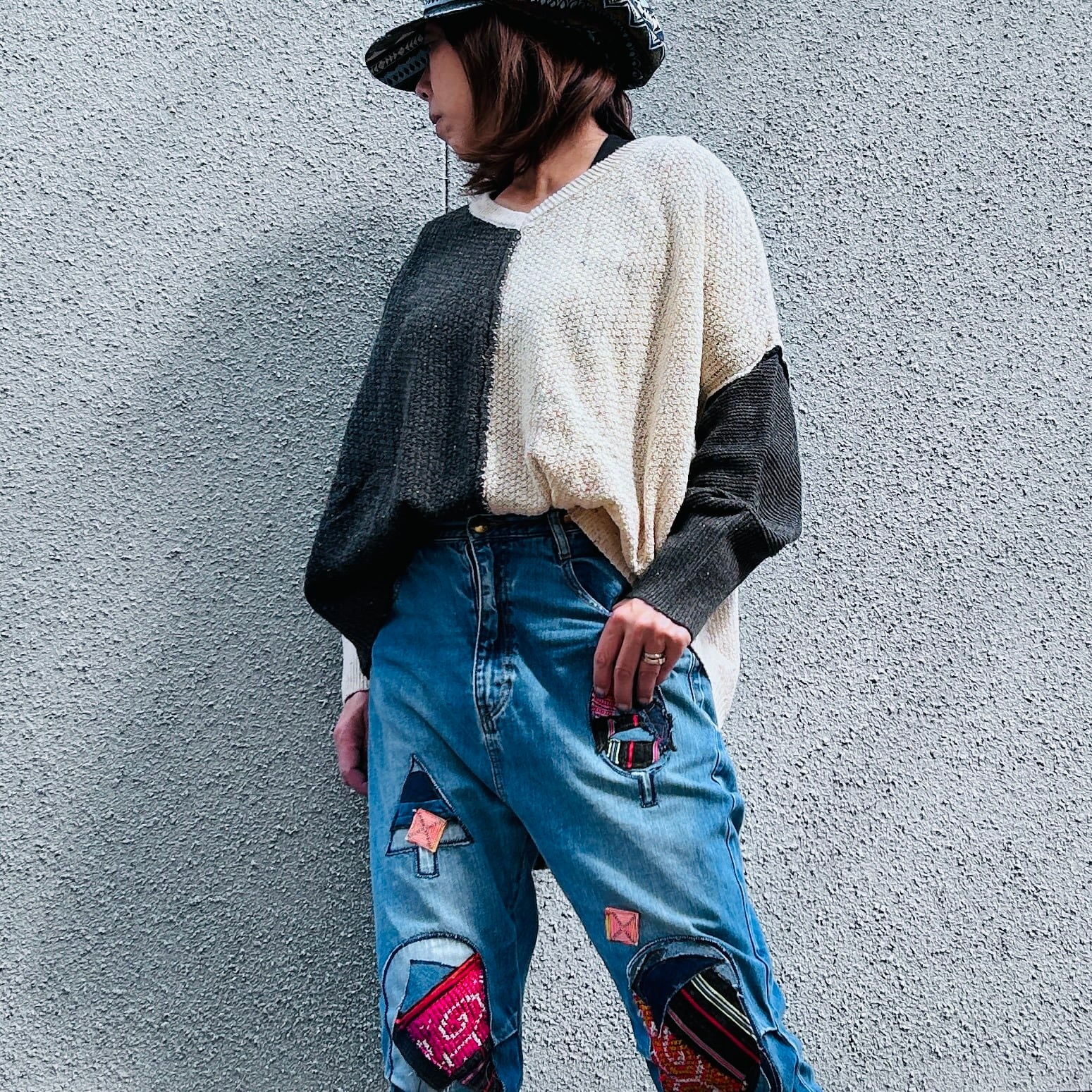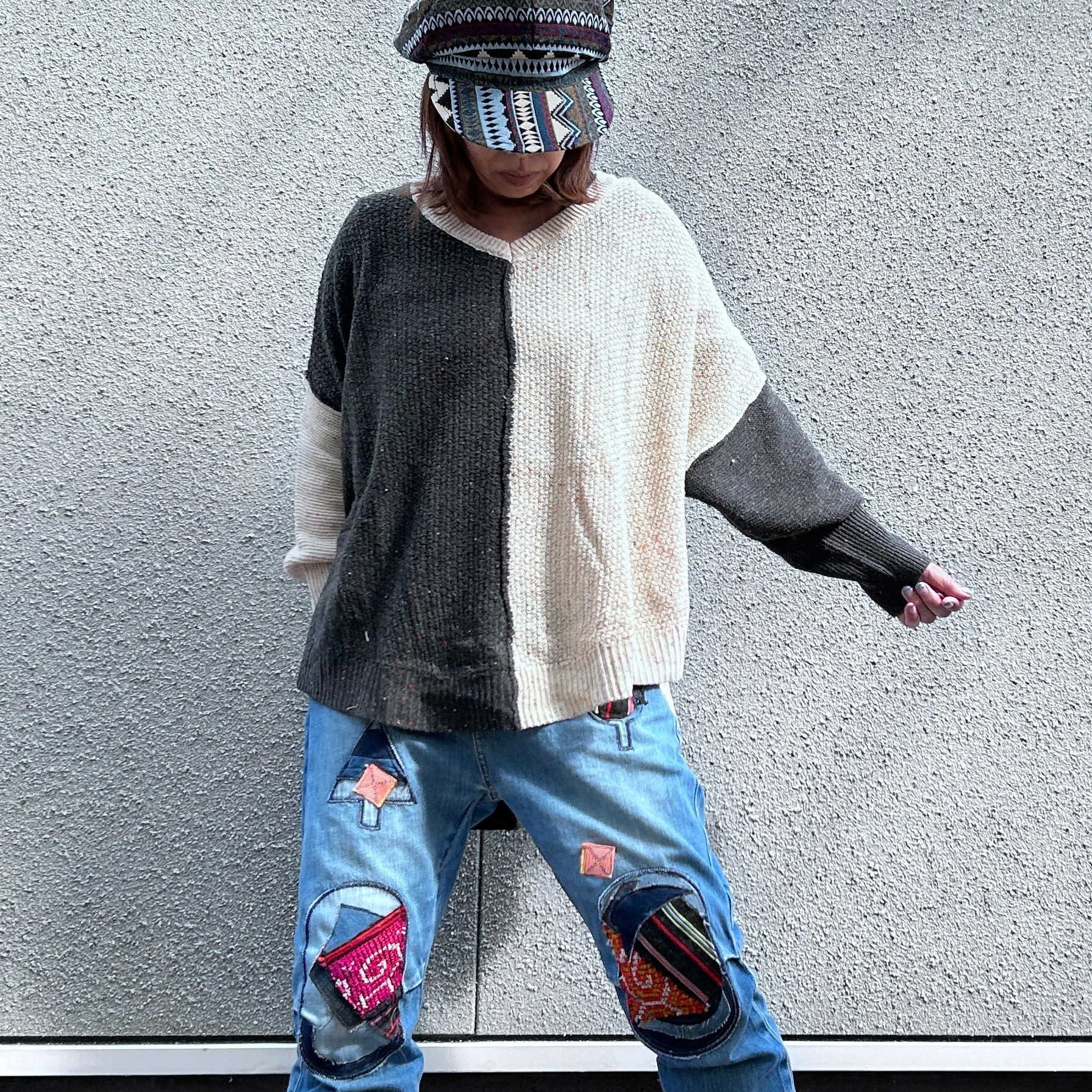 袖や左右で切り替えた配色デザインはスタイリングの主役に。