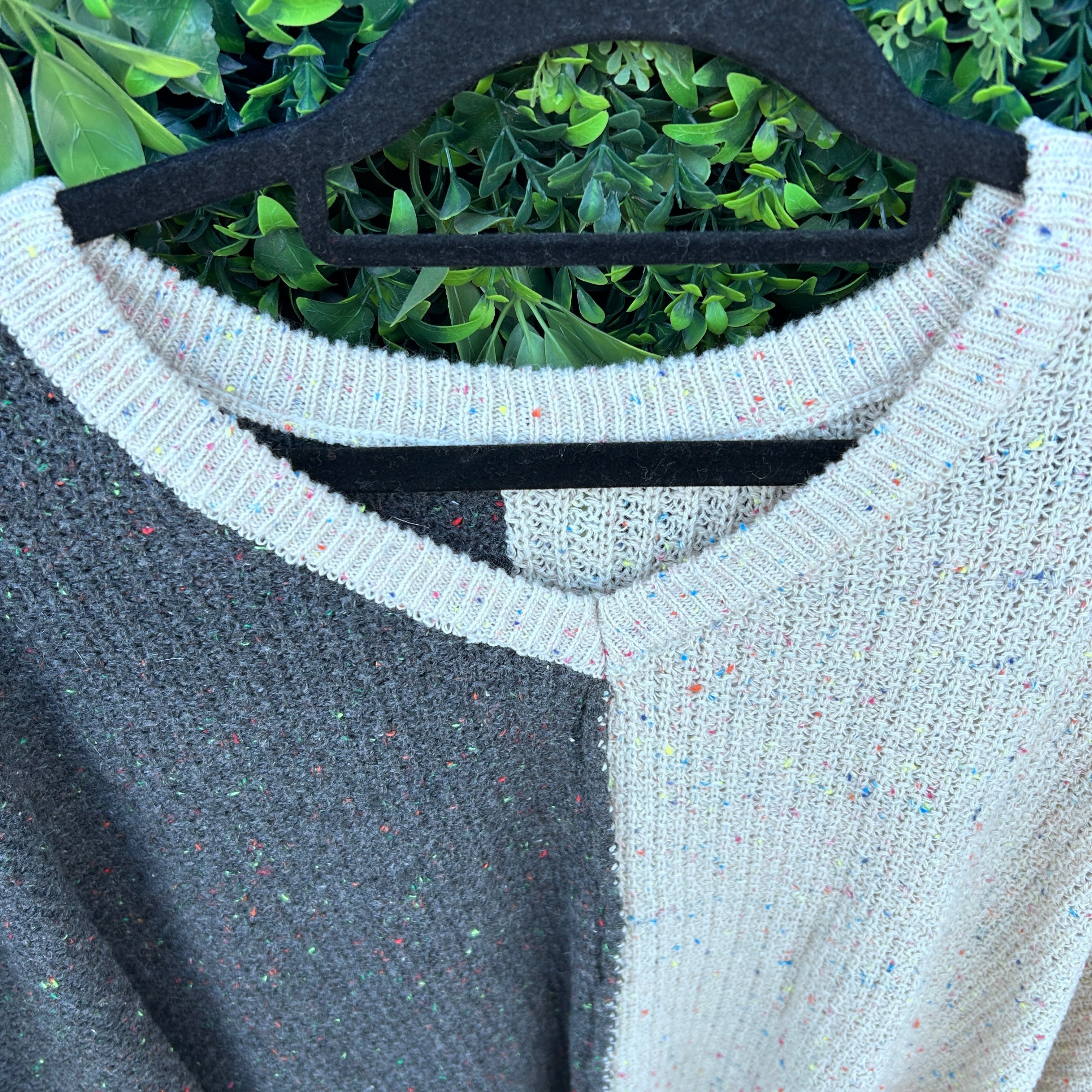 ミックスされたカラーネップがカジュアルな雰囲気のニットは、程よく薄手でさらりと着こなせます。