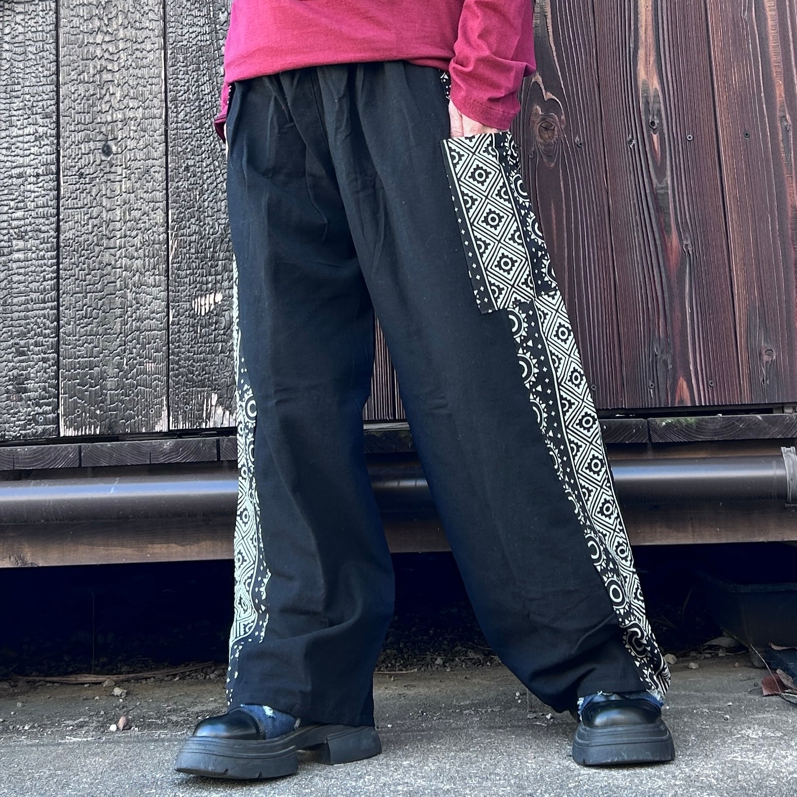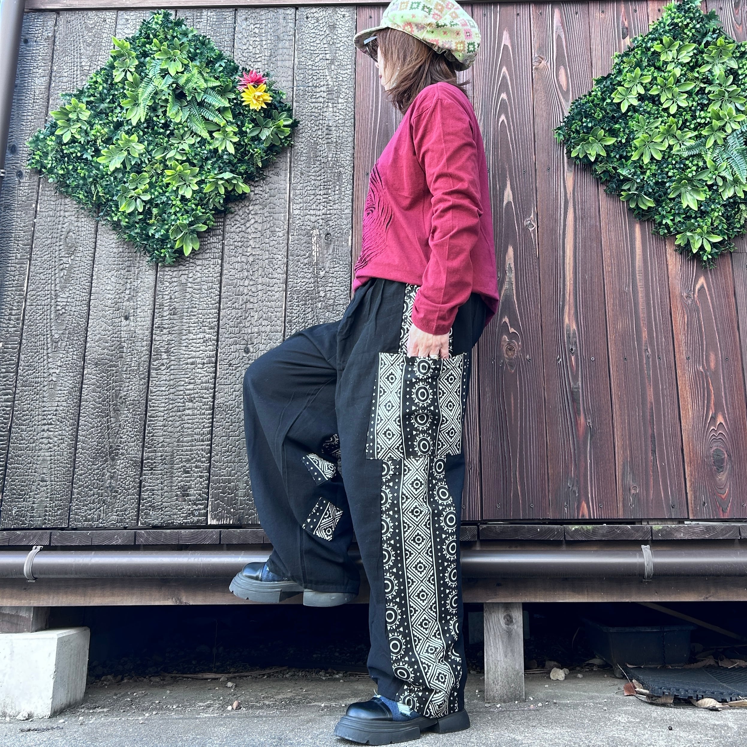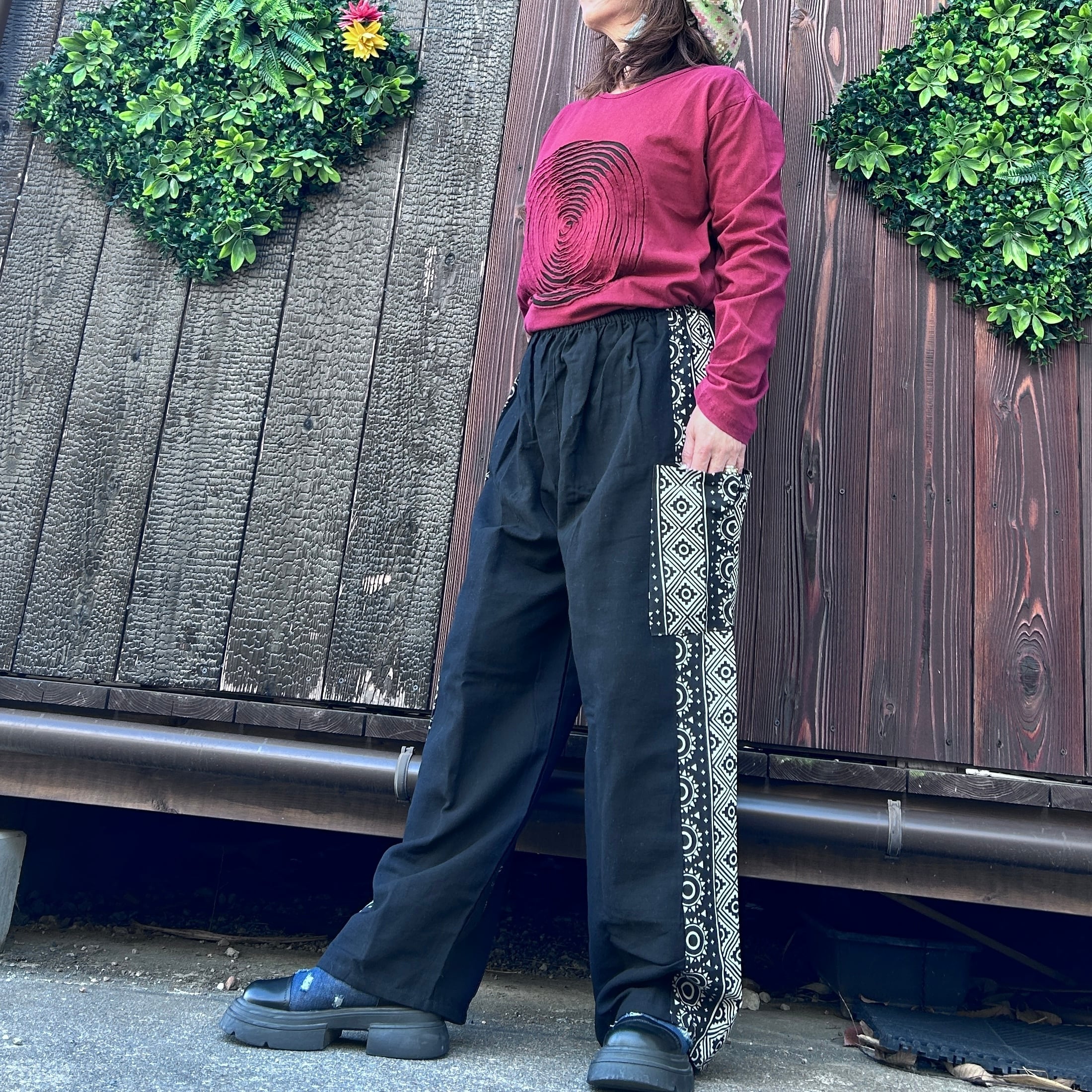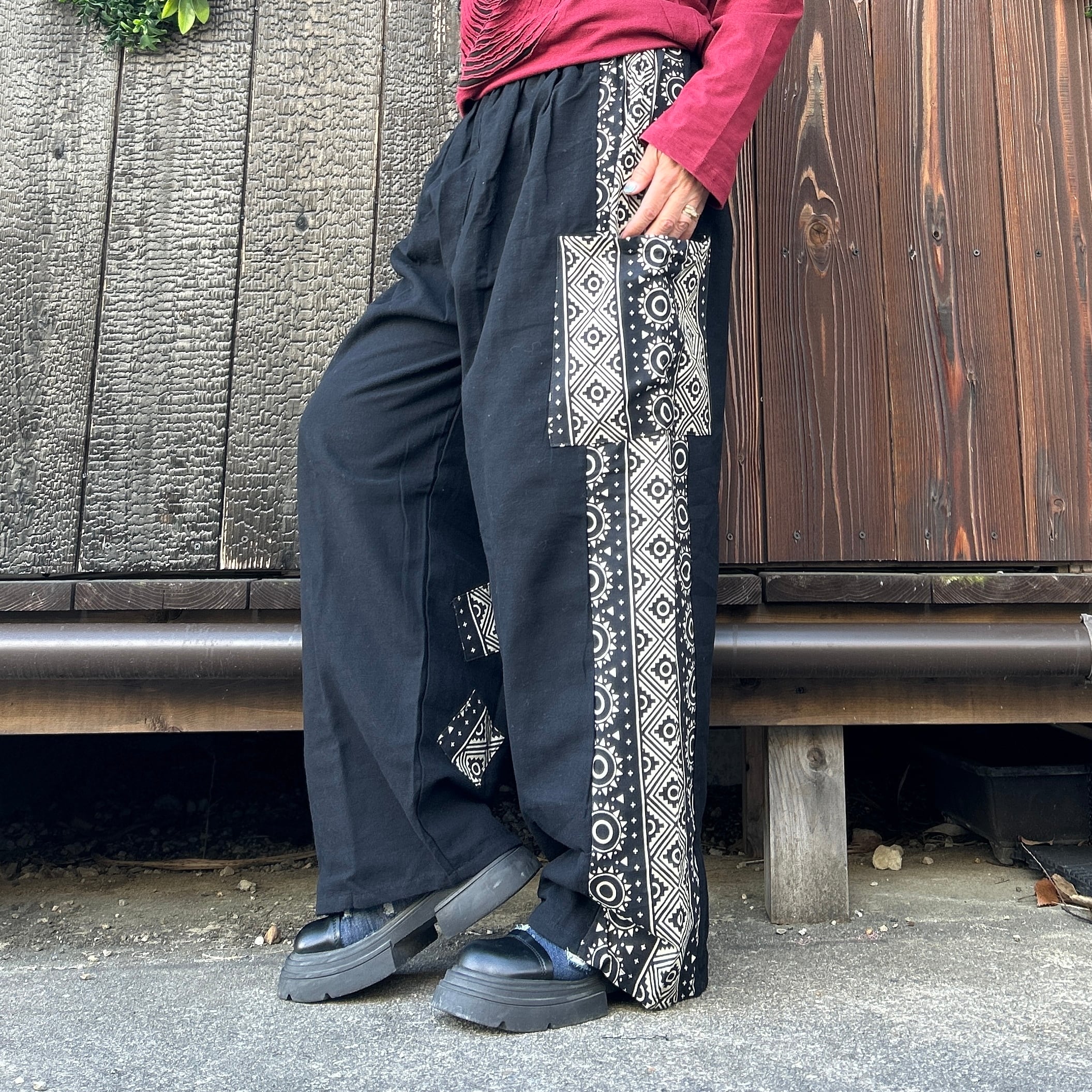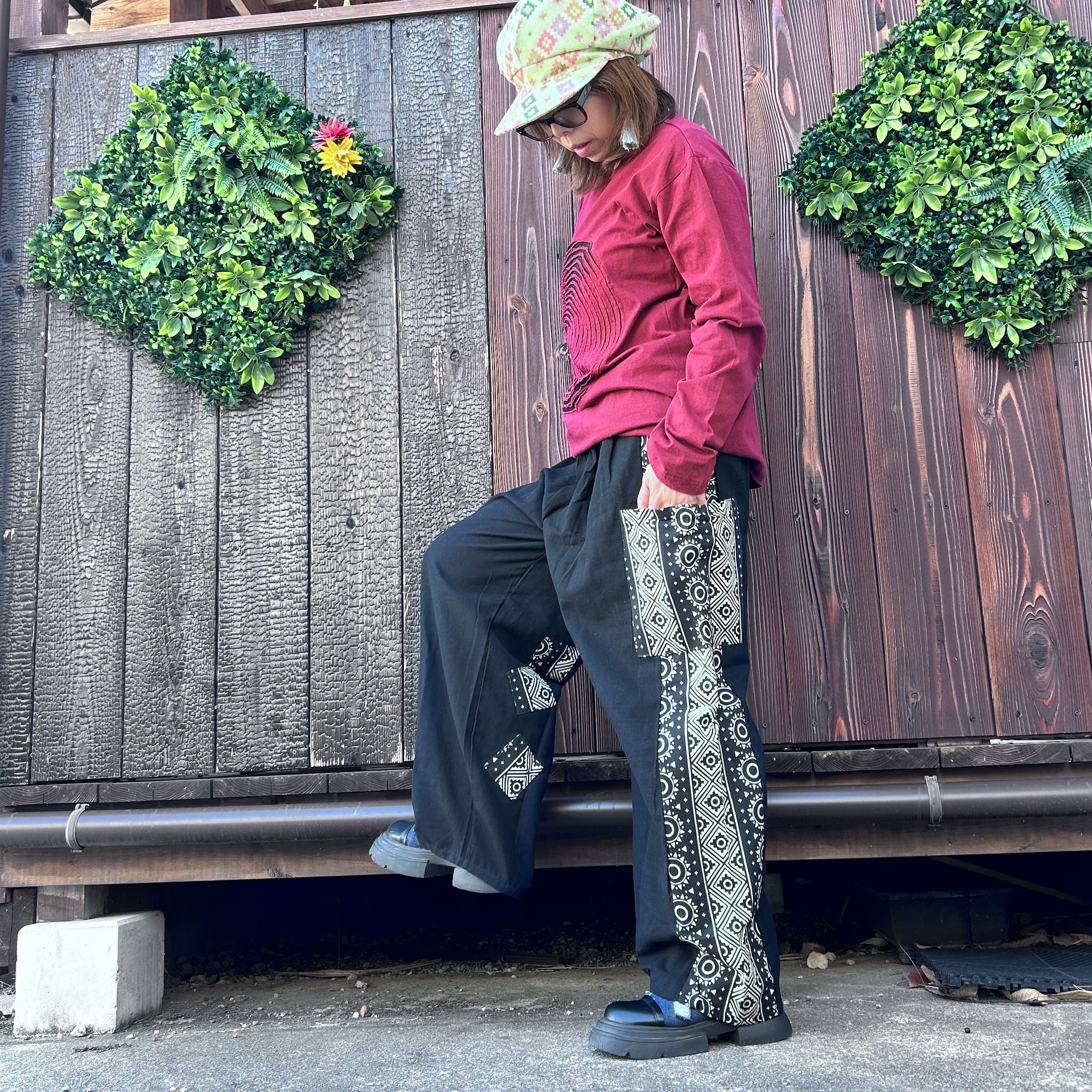 和の魅力を感じる黒と和柄のミックスストレートパンツが登場です!洗練されたデザインと心地良い素材感で、カジュアルながらもおしゃれなスタイルを実現します☆