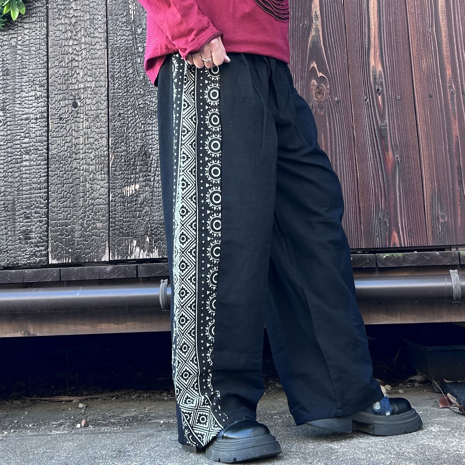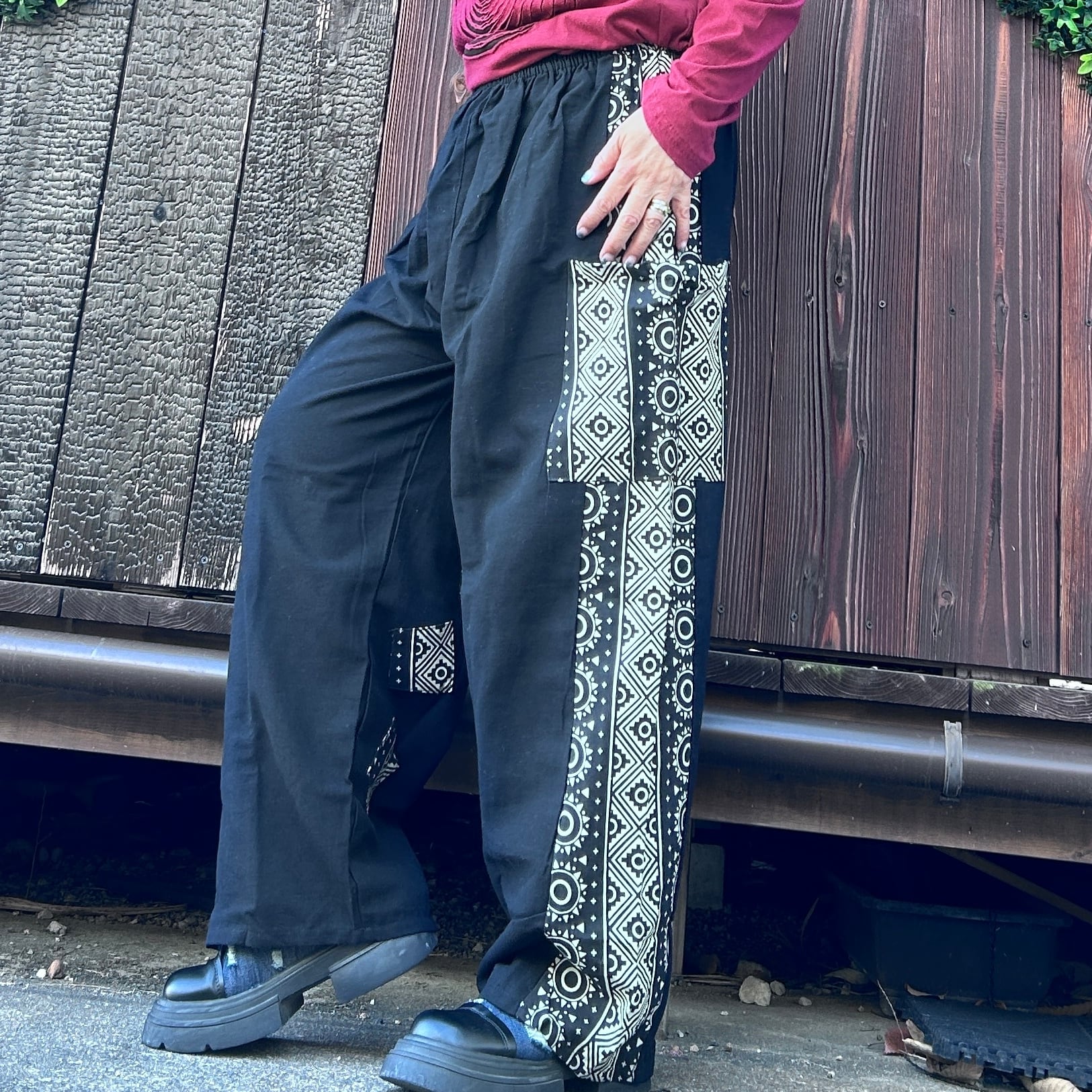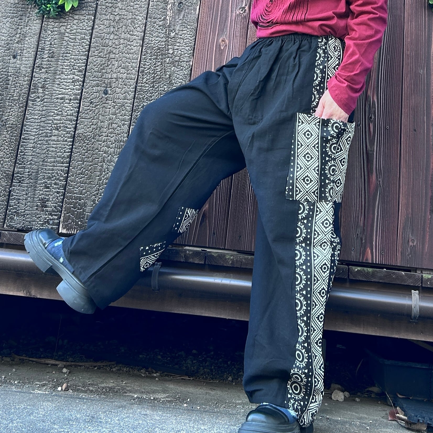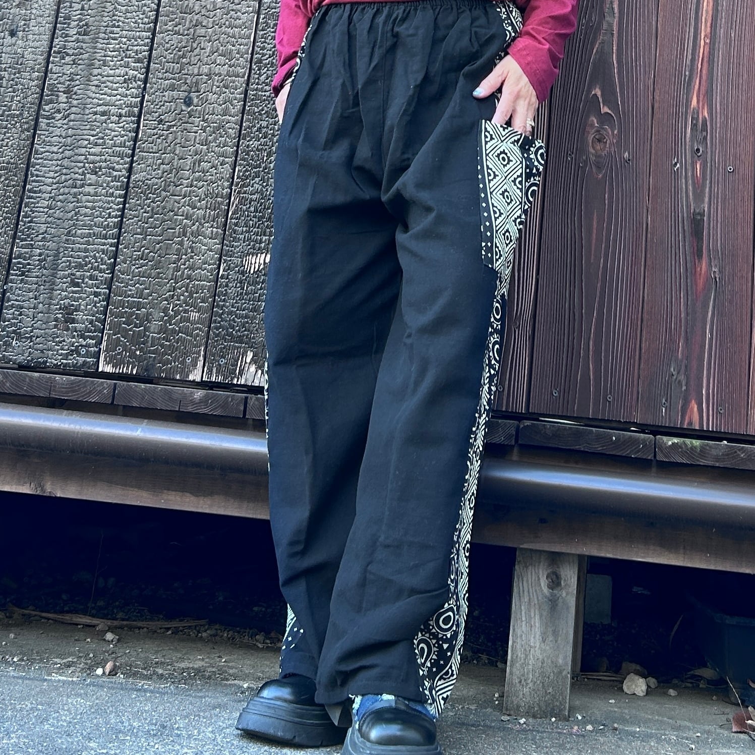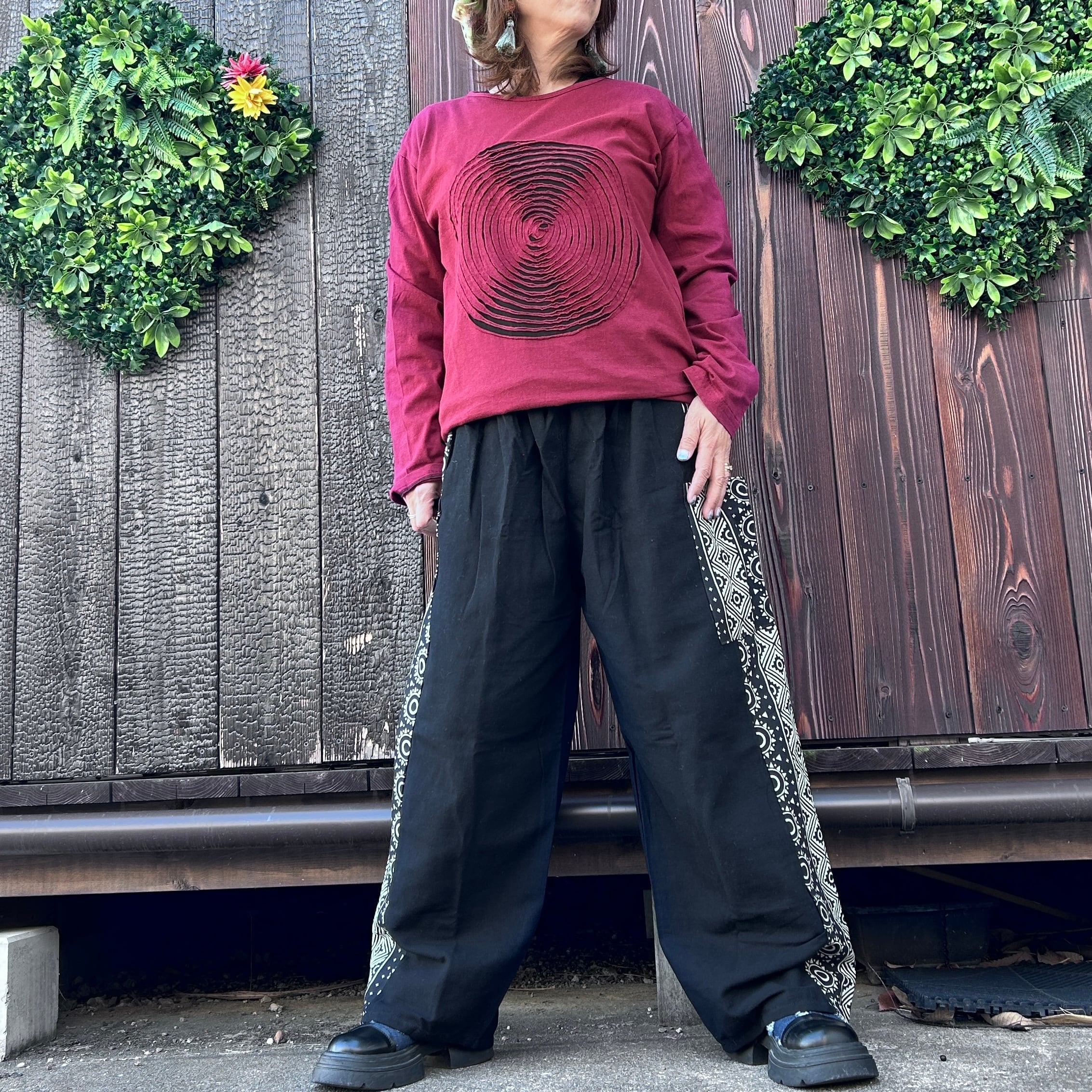 和の魅力を感じる黒と和柄のミックスストレートパンツが登場です!洗練されたデザインと心地良い素材感で、カジュアルながらもおしゃれなスタイルを実現します☆