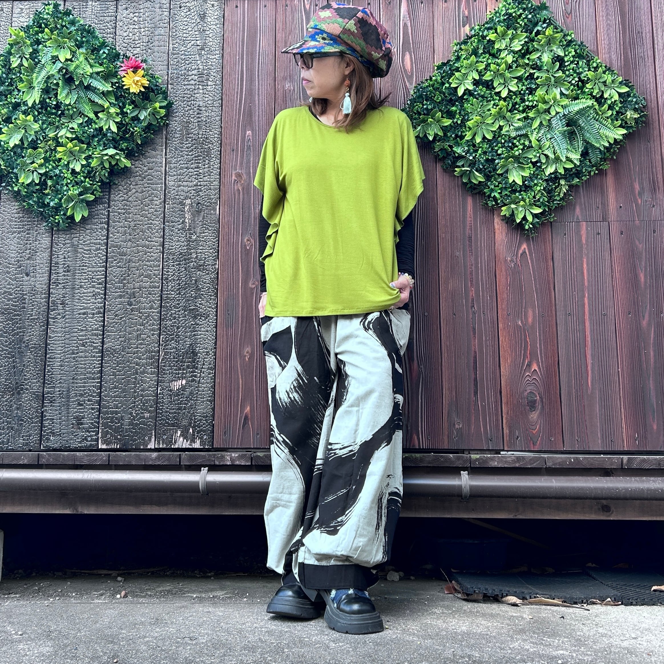 モノトーンゆったりパンツ