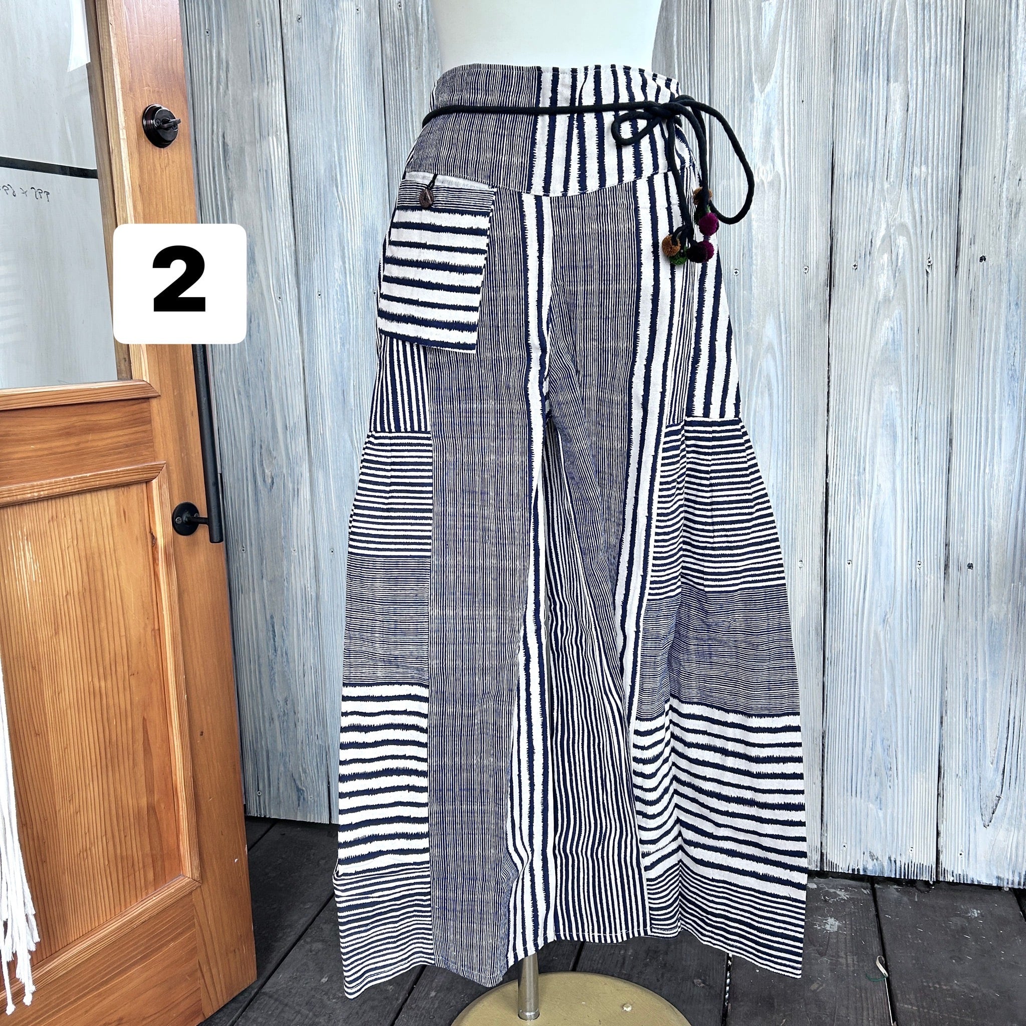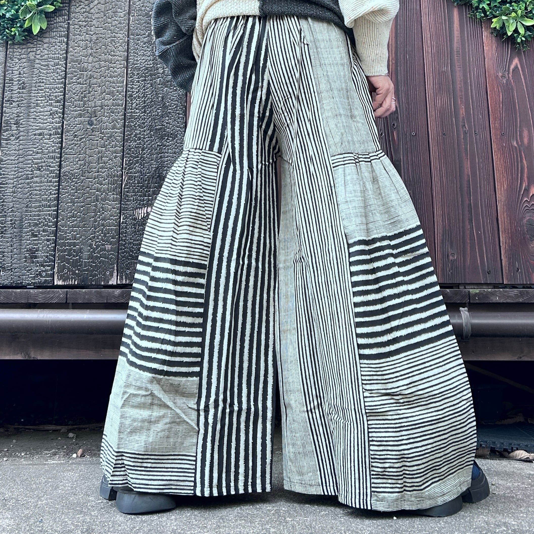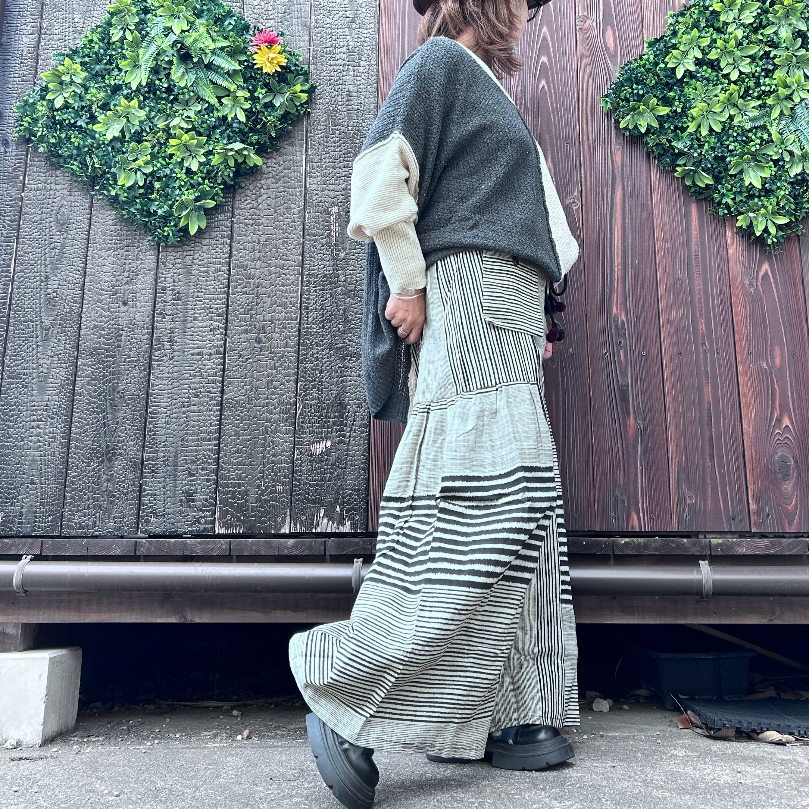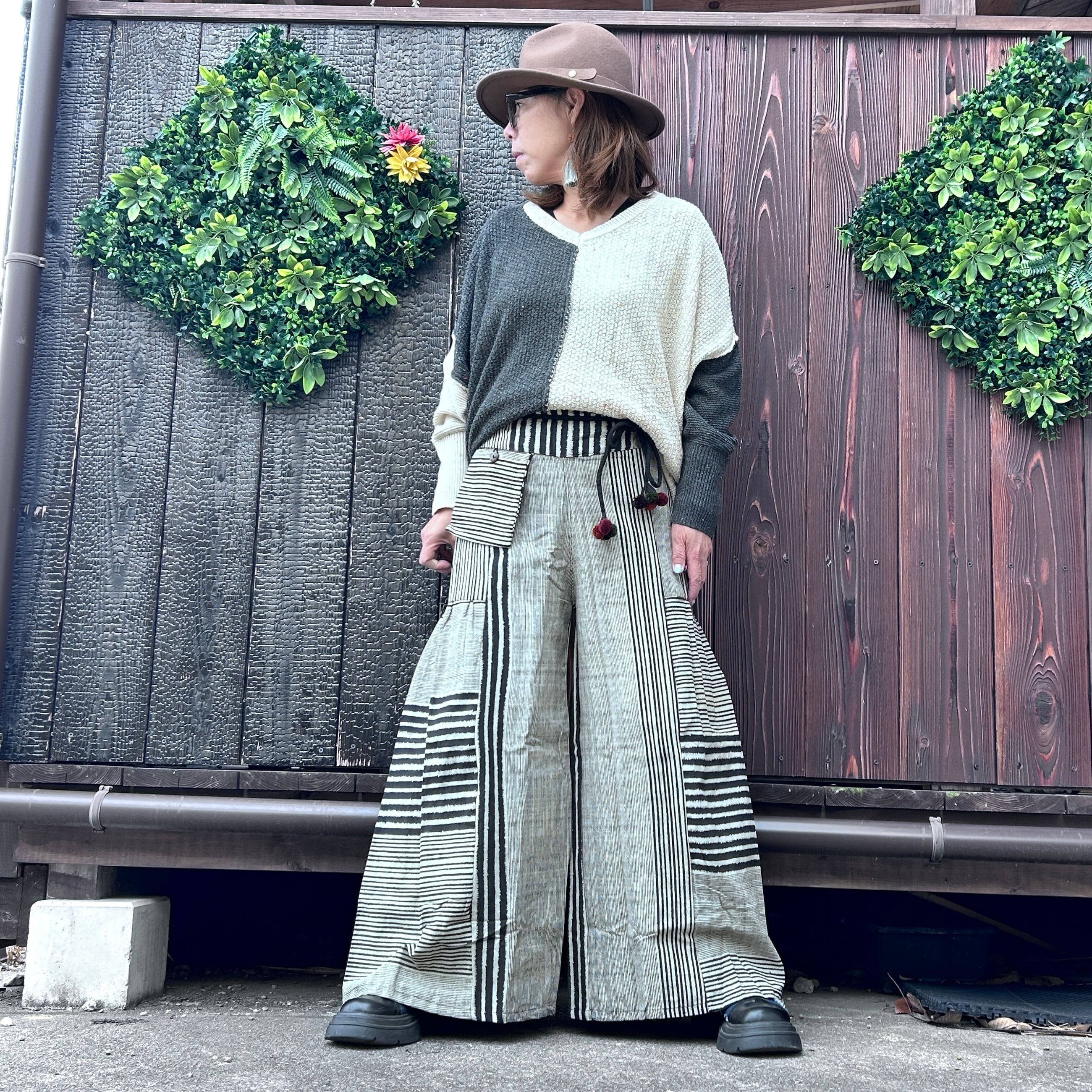 ストライプ切り替えワイドパンツ