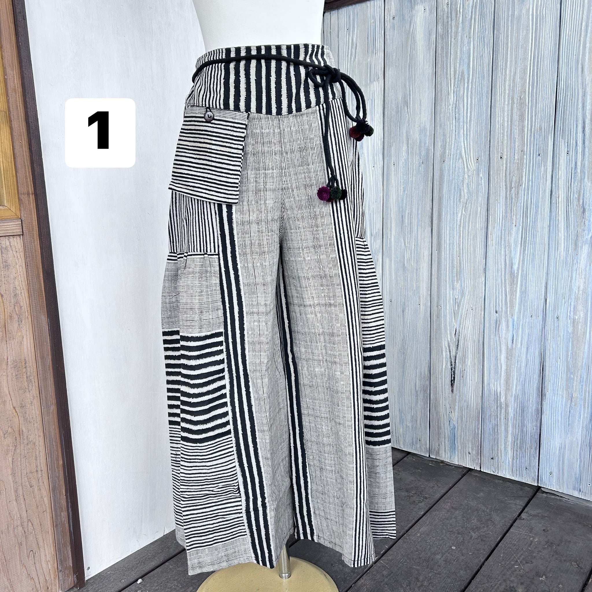 ストライプ切り替えの華やかなワイドパンツが新登場です!シンプルながらもトレンド感溢れるデザインで、カジュアルながらおしゃれな印象を与えます☆