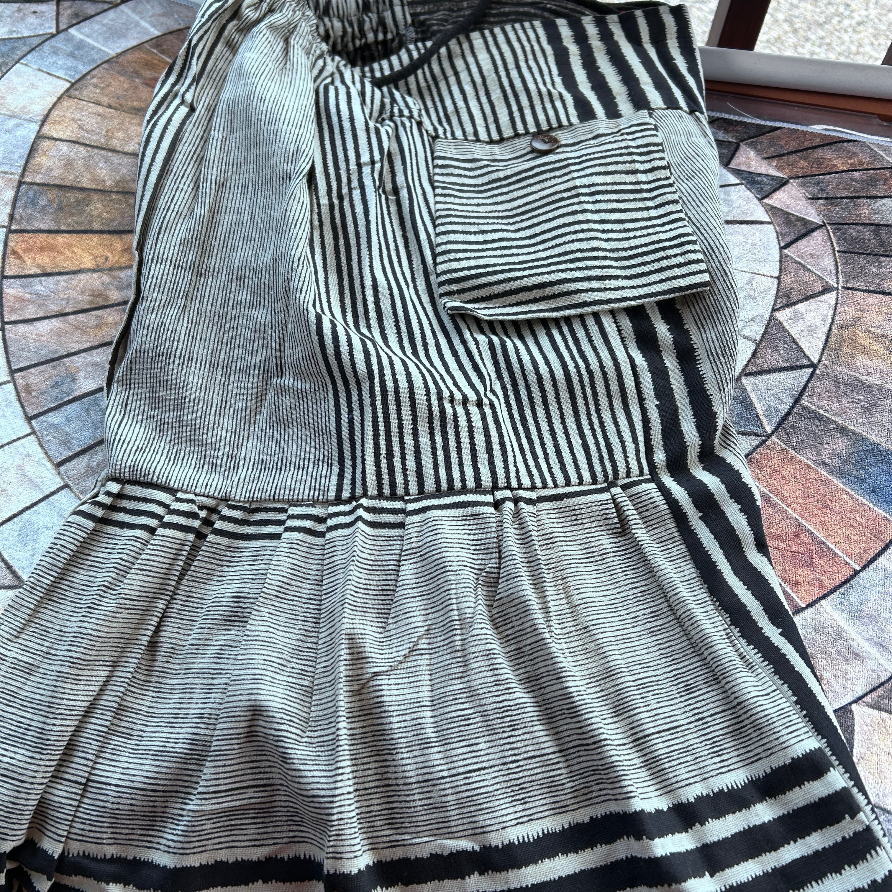ウエストはゴムと紐で調整可能。