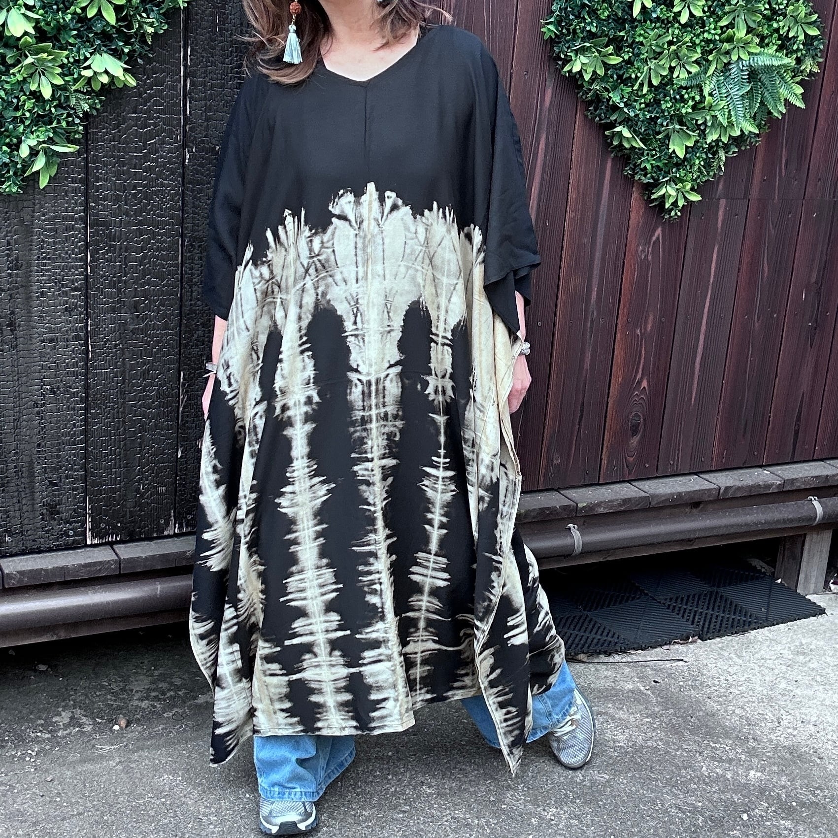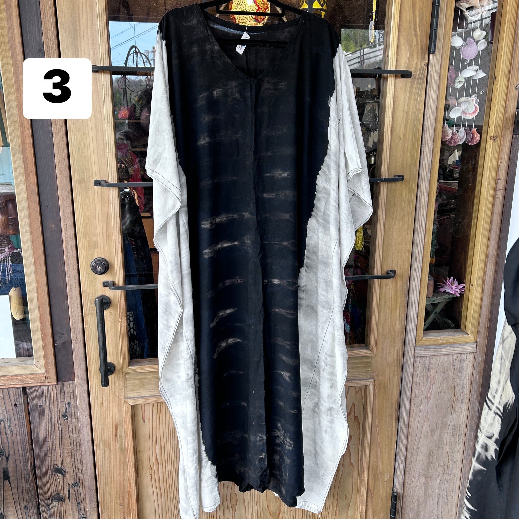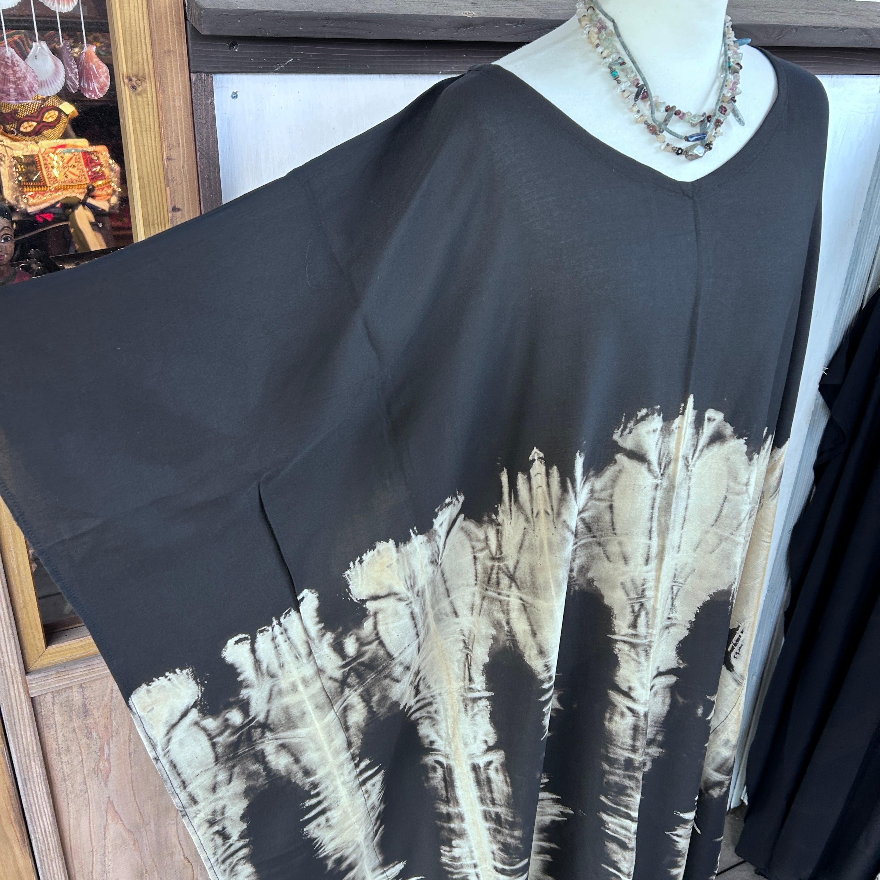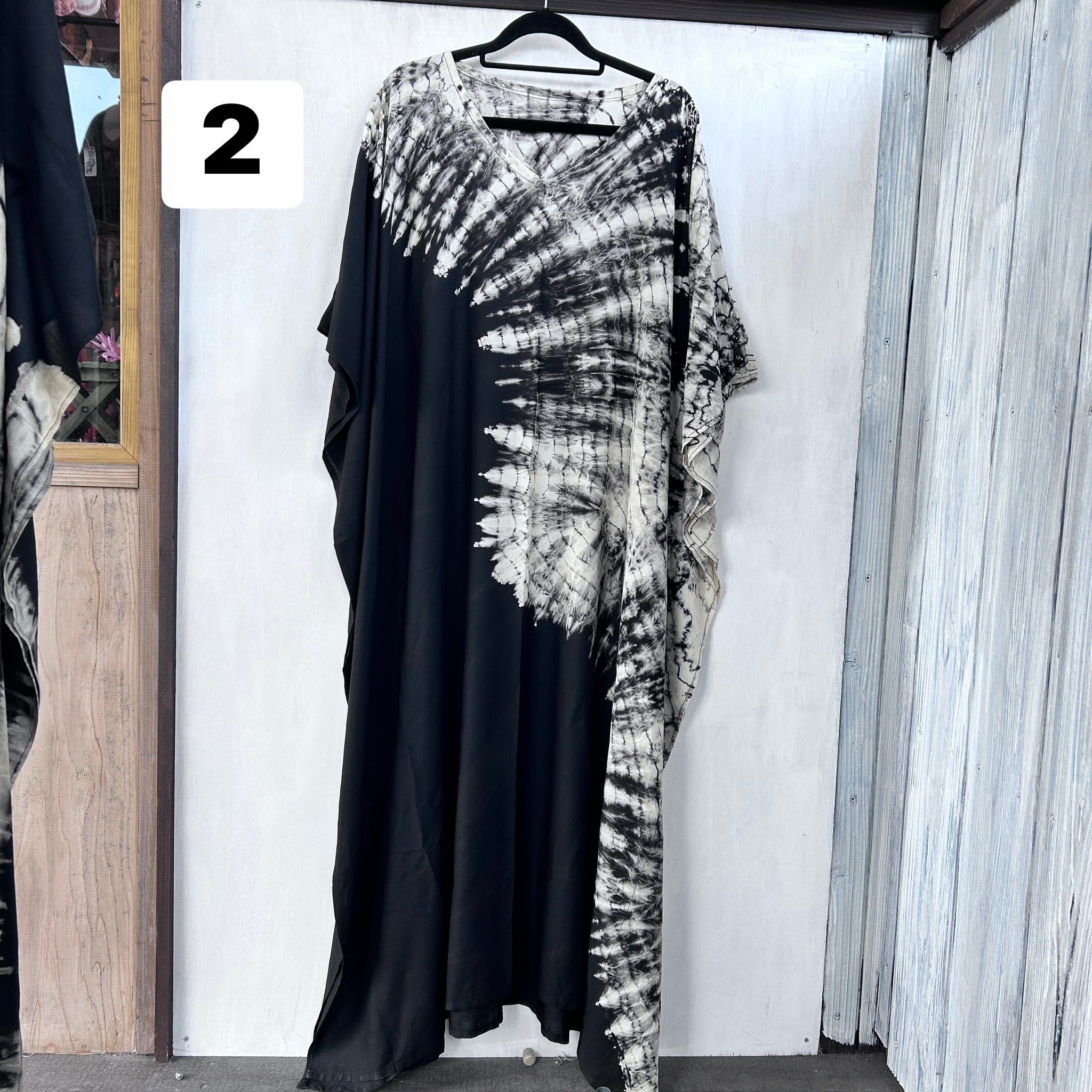 スタイリッシュなタイダイ模様が印象的なモノトーンビッグワンピース。リラックスしたシルエットながらも、個性的で洗練されたデザインが特徴です。そして、さまざまなシーンで大活躍すること間違いなし!