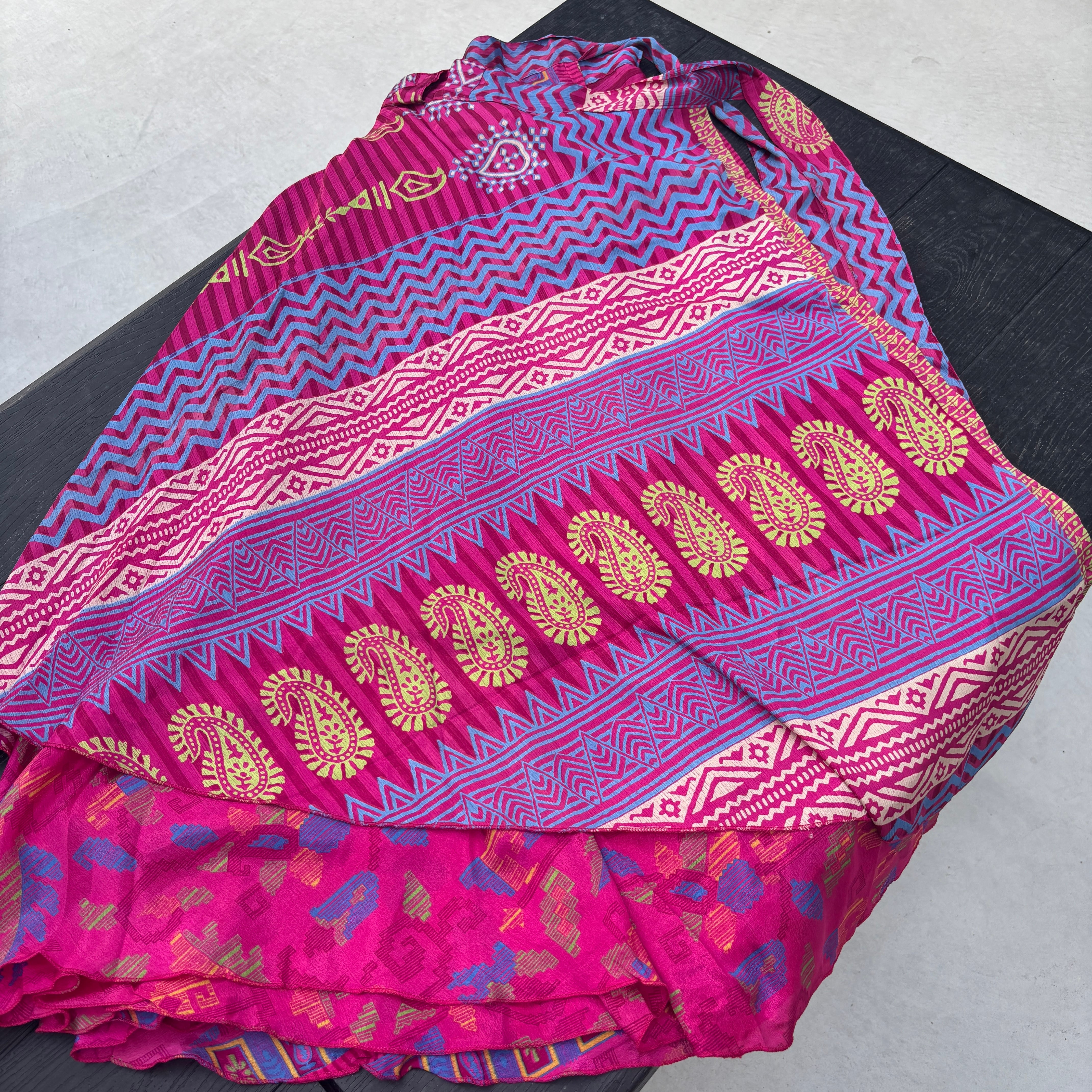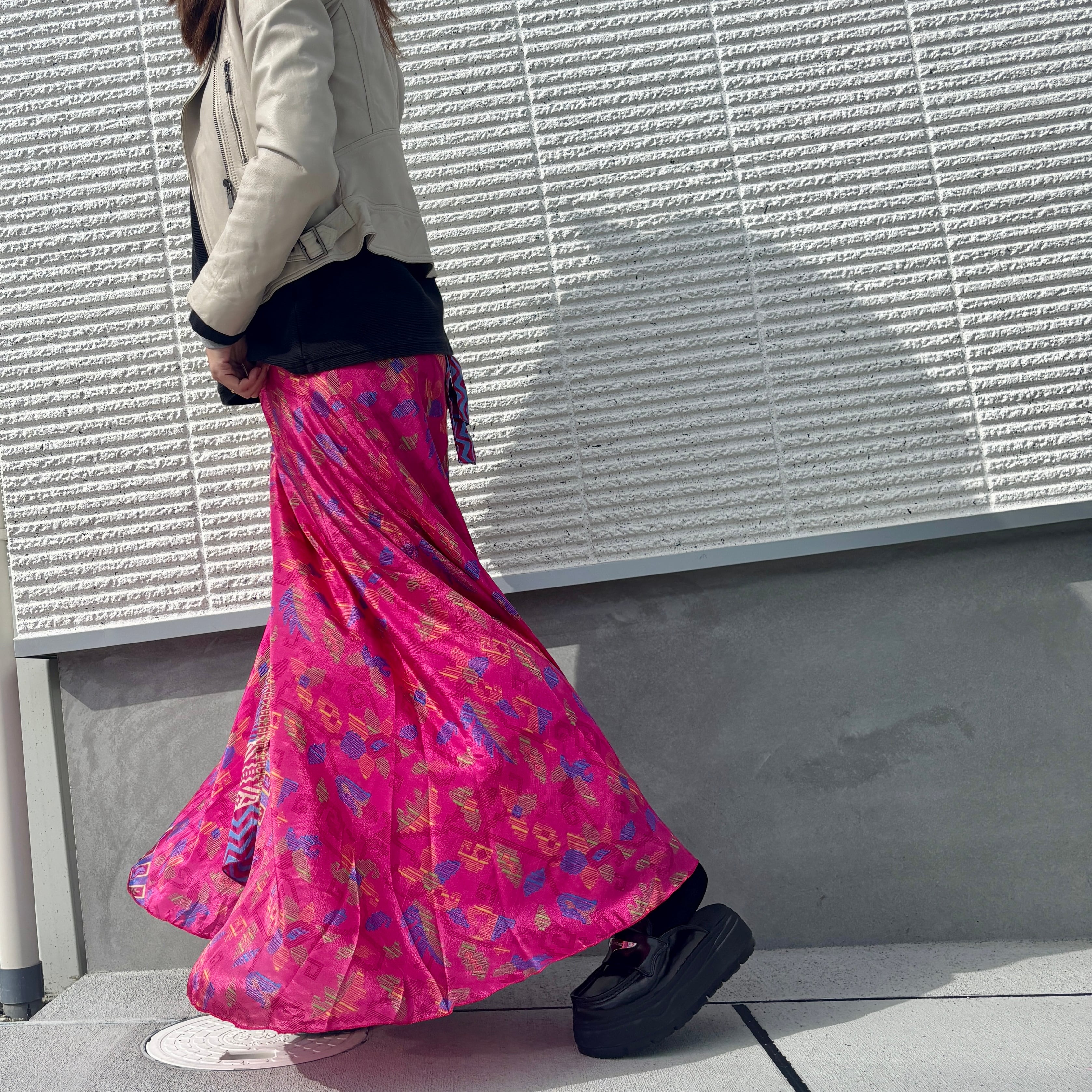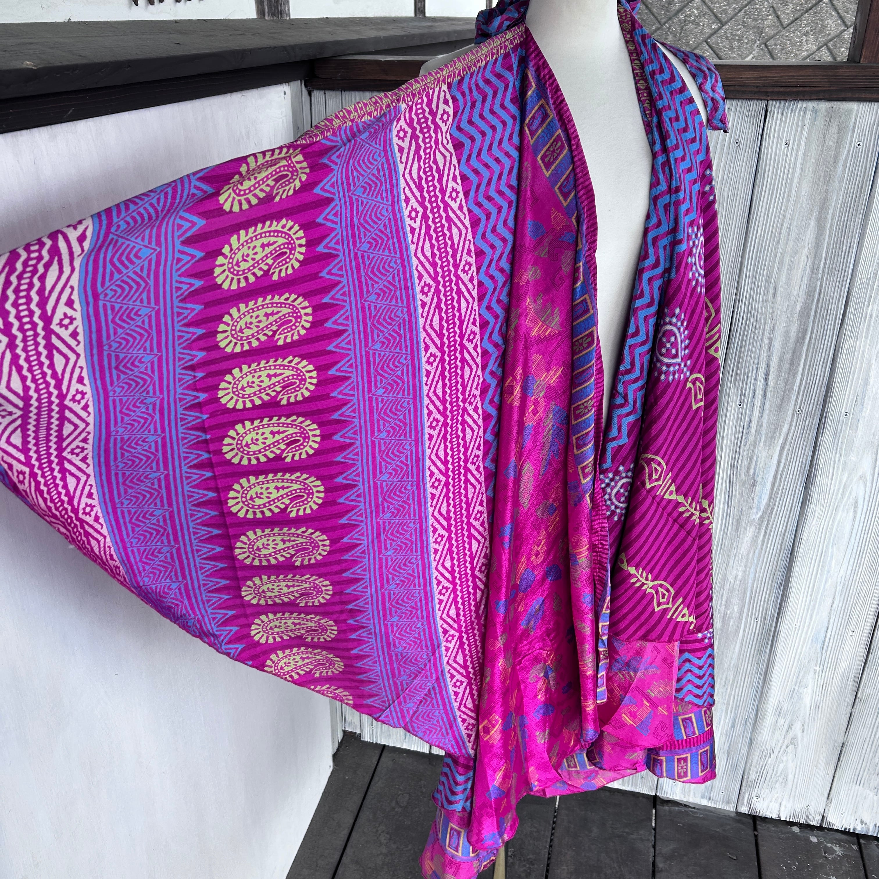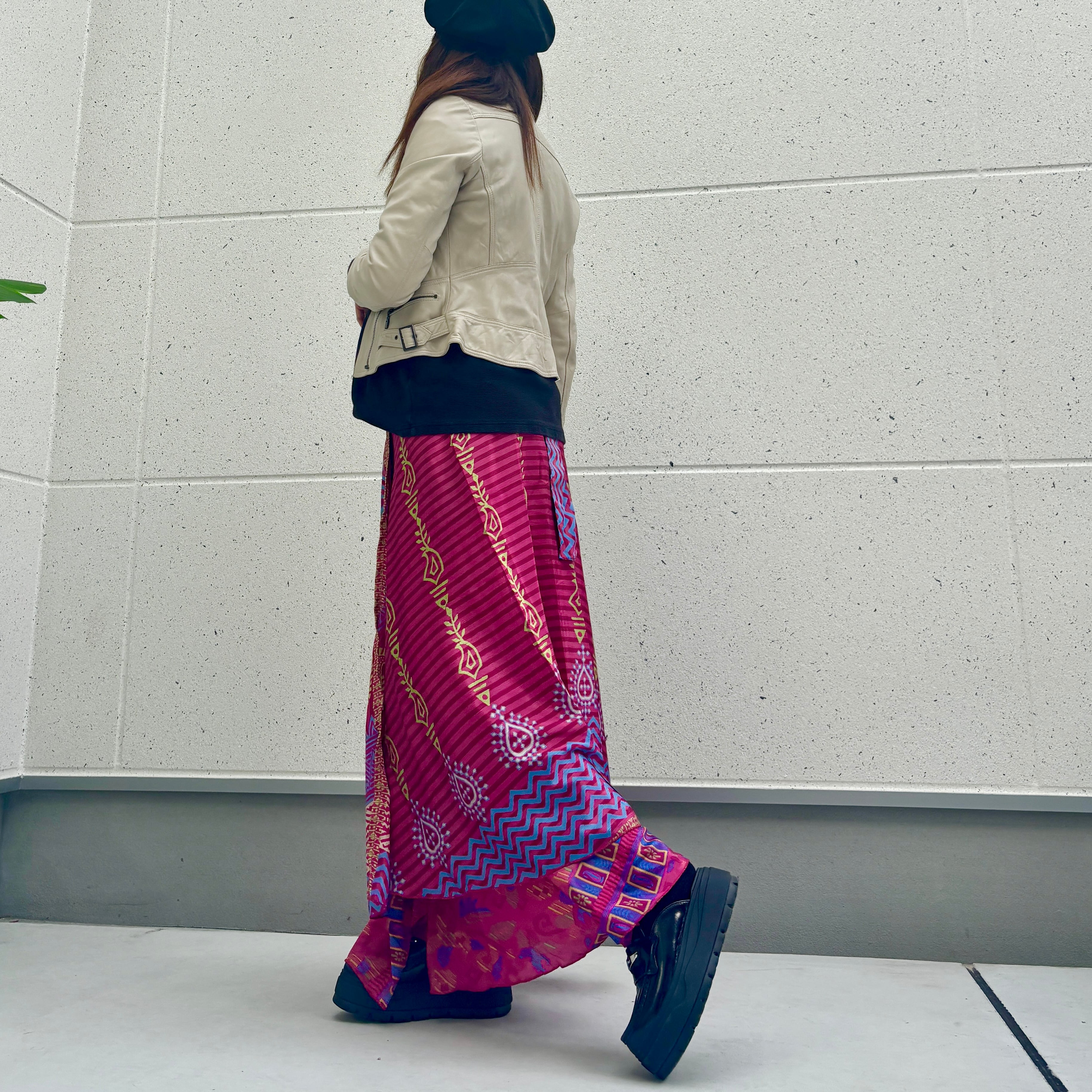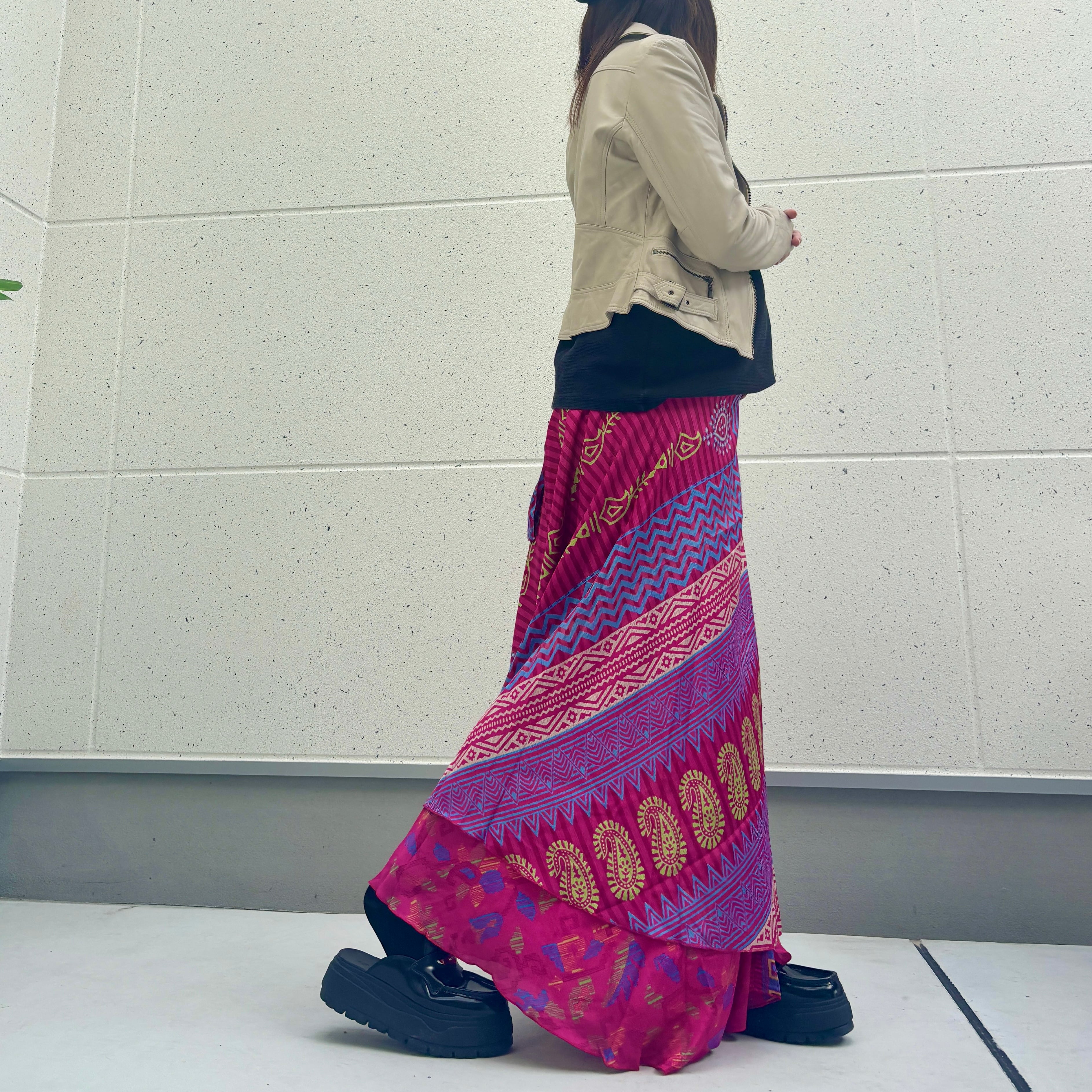 一枚で2通りのコーデが楽しめる、リバーシブルインドサリー巻きスカートです。