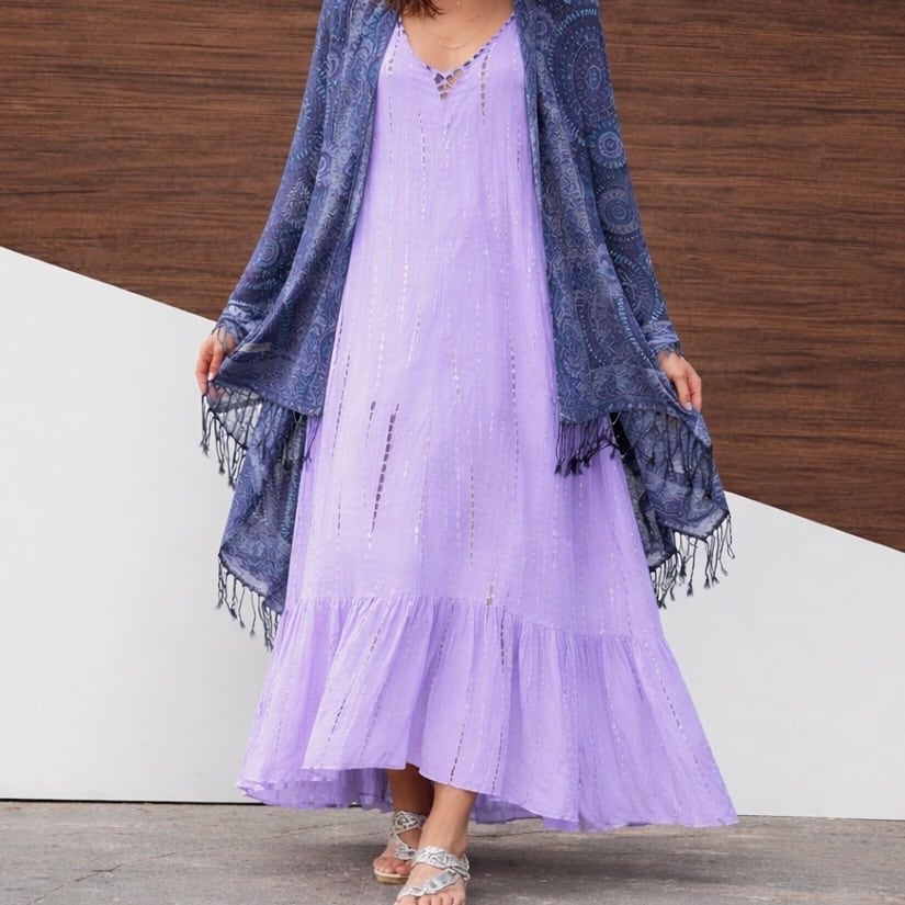 シンプルスタイルに羽織るだけでパッと明るい印象にしてくれます