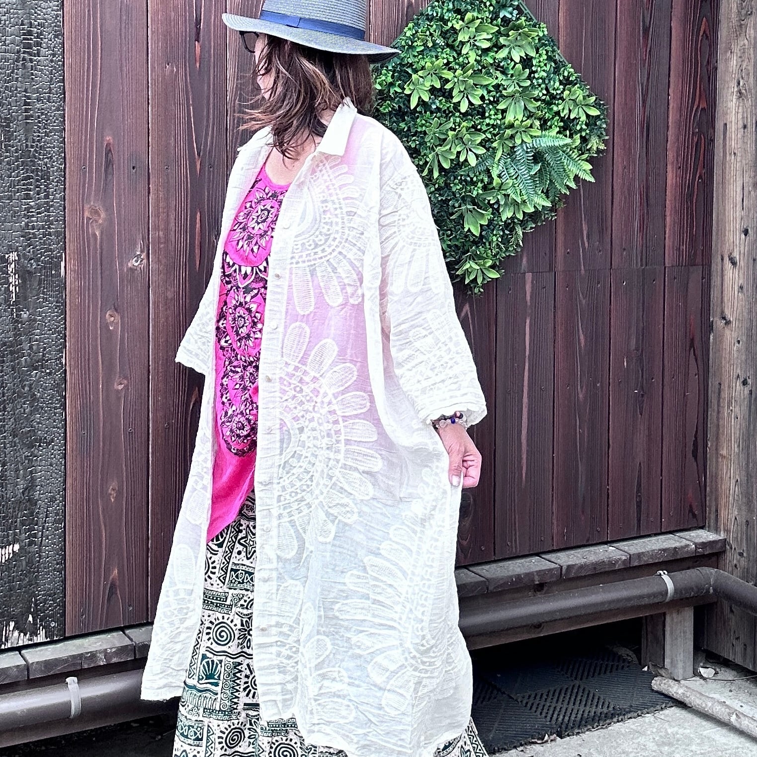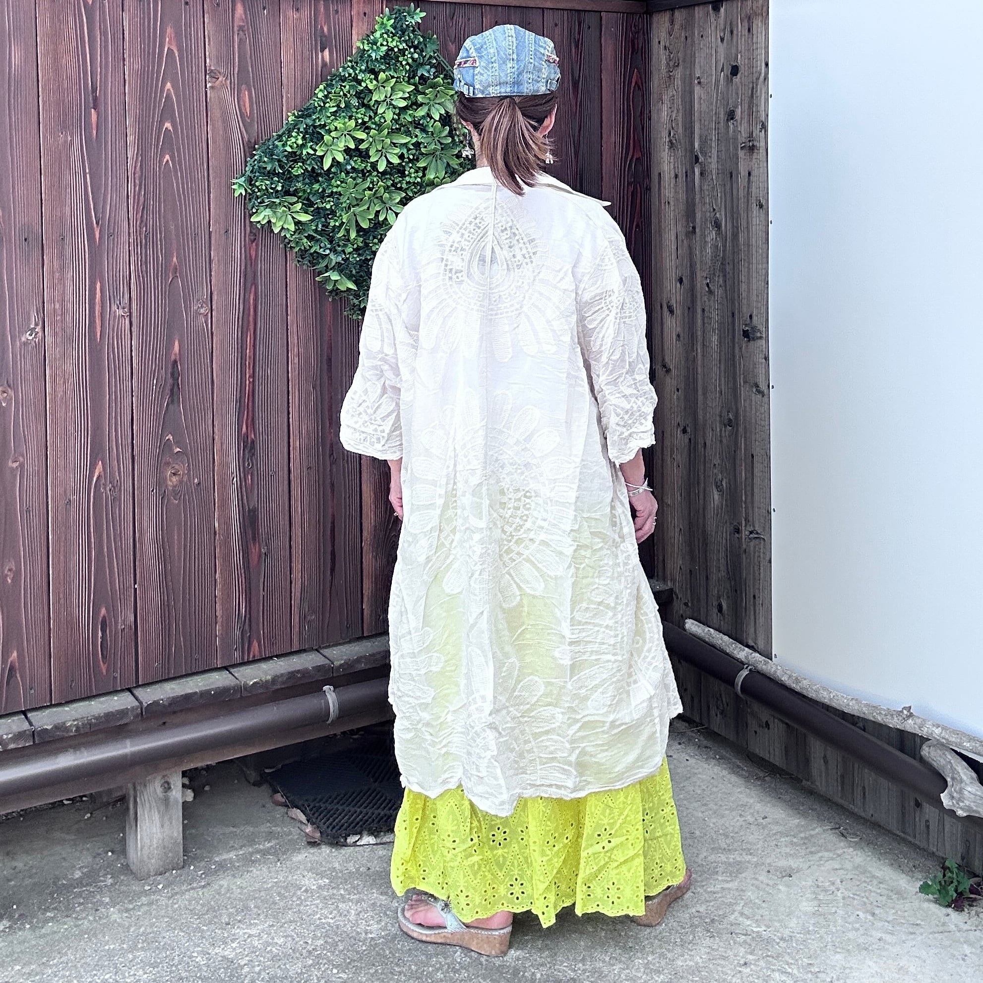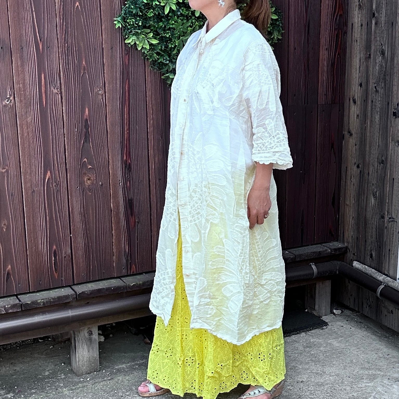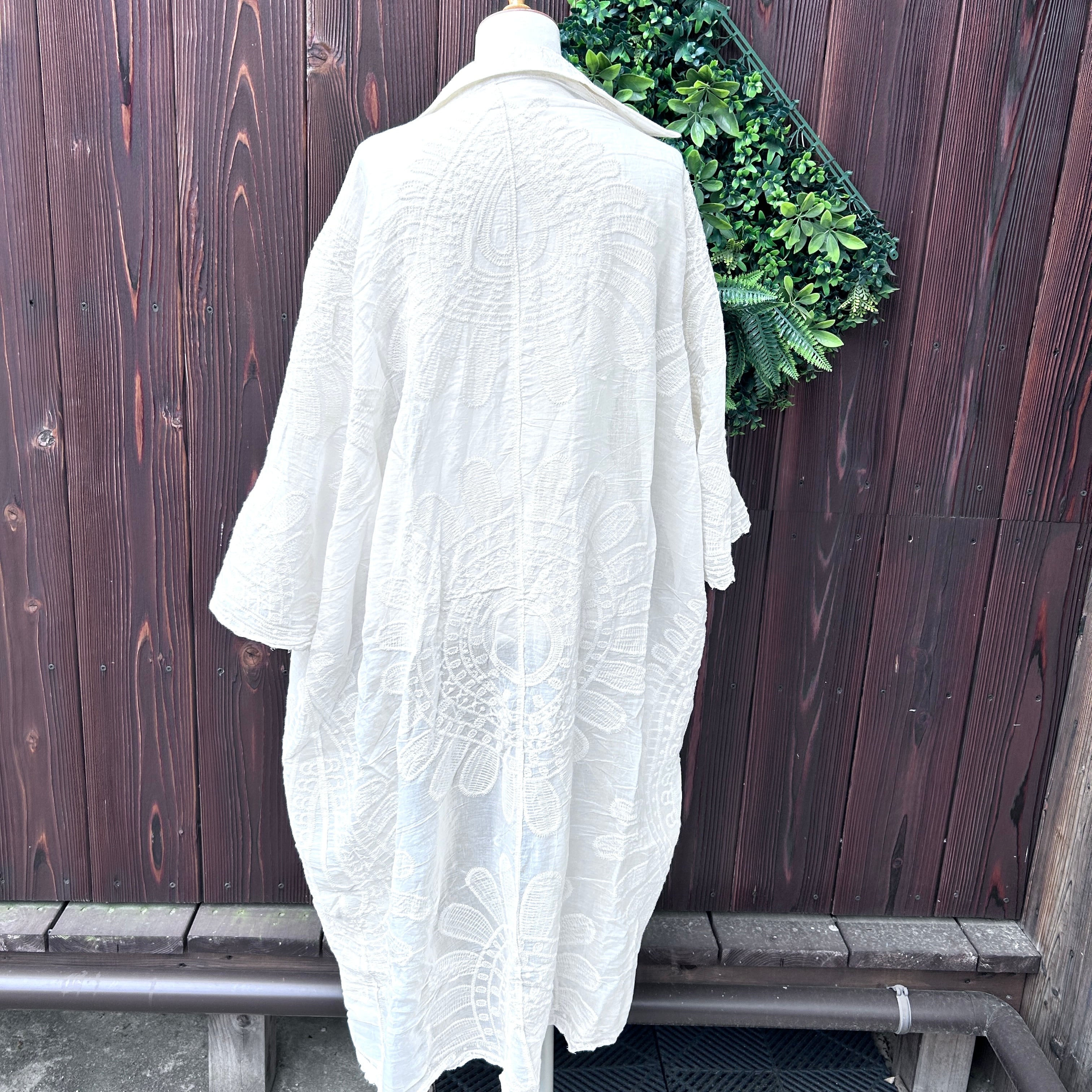 繊細で美しいレースが全体に施され、軽やかで上品な印象に仕上がっています。
