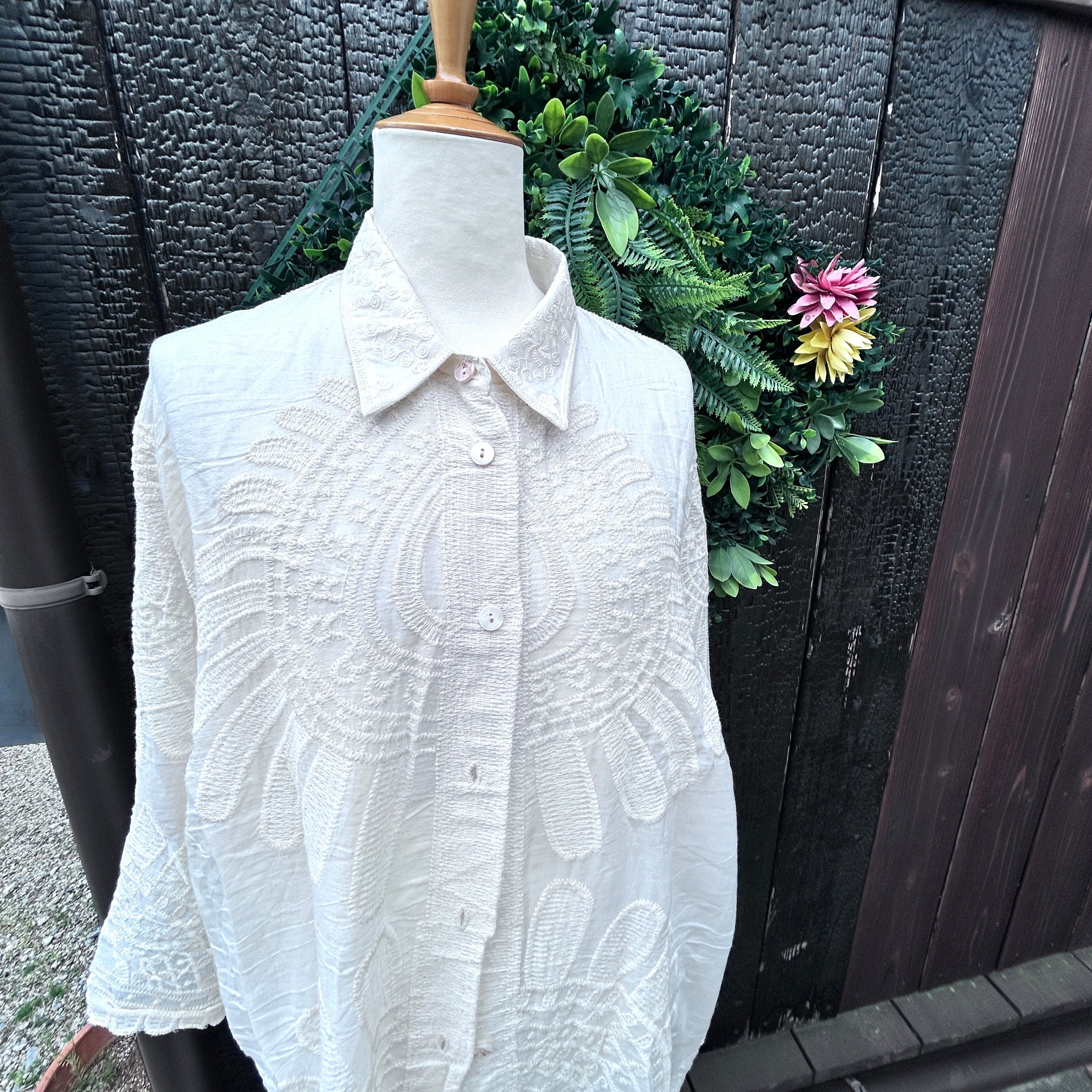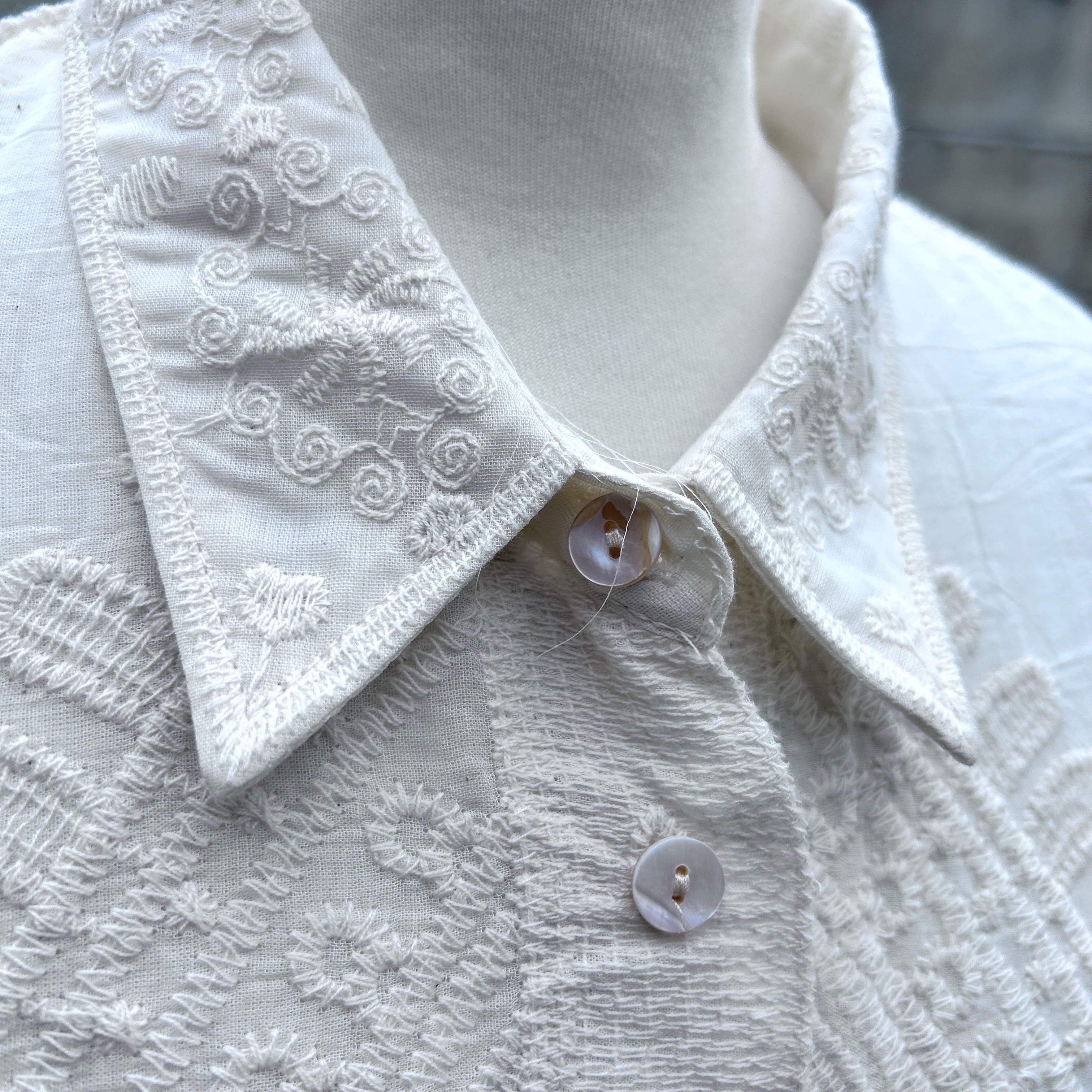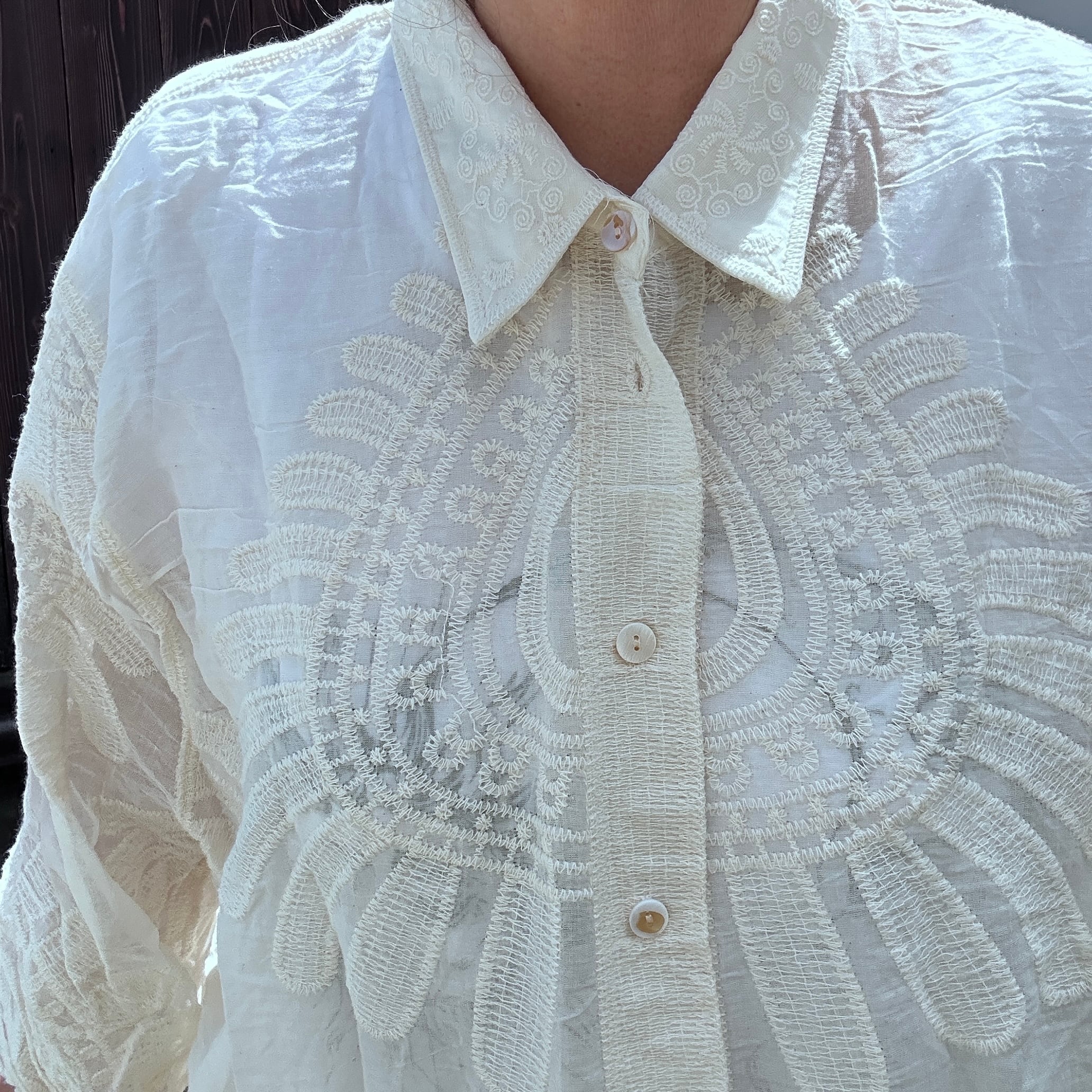 ふんわりとしたゆったりシルエットが魅力のレースブラウス。