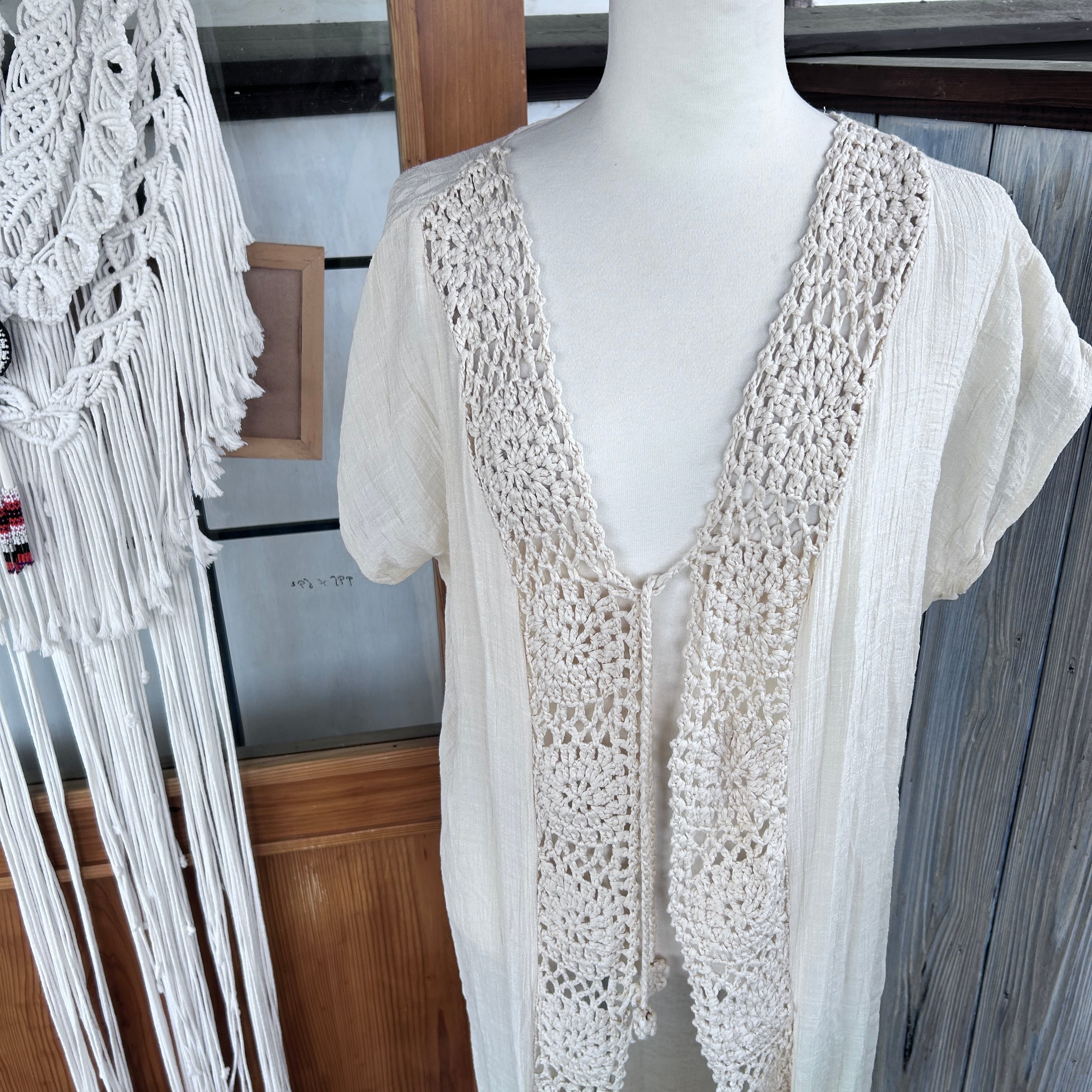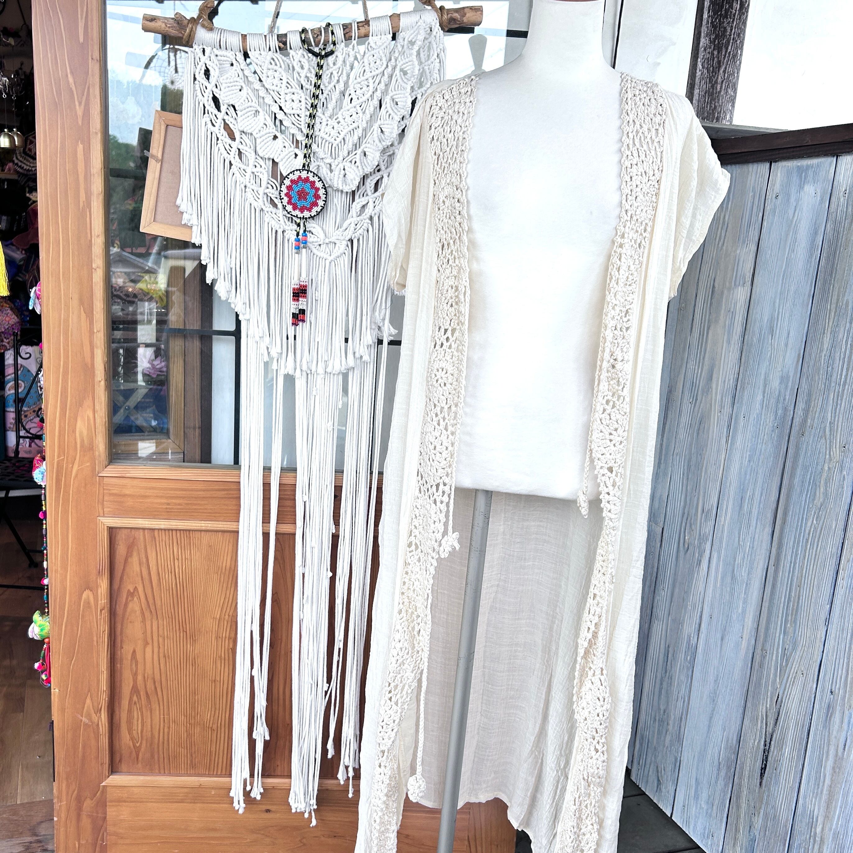 前側が縦ラインでコットンレースを使ったロングカーディガンです。