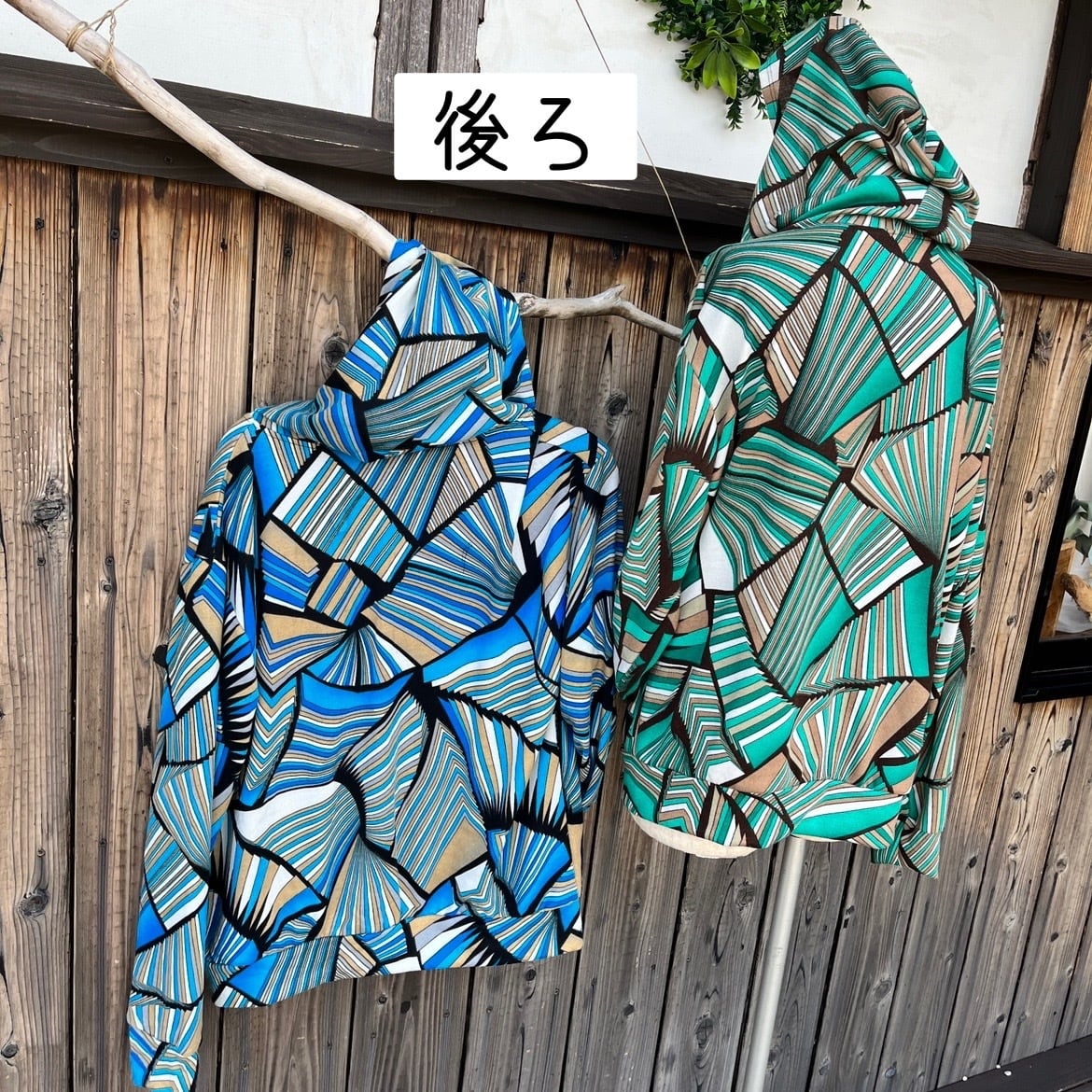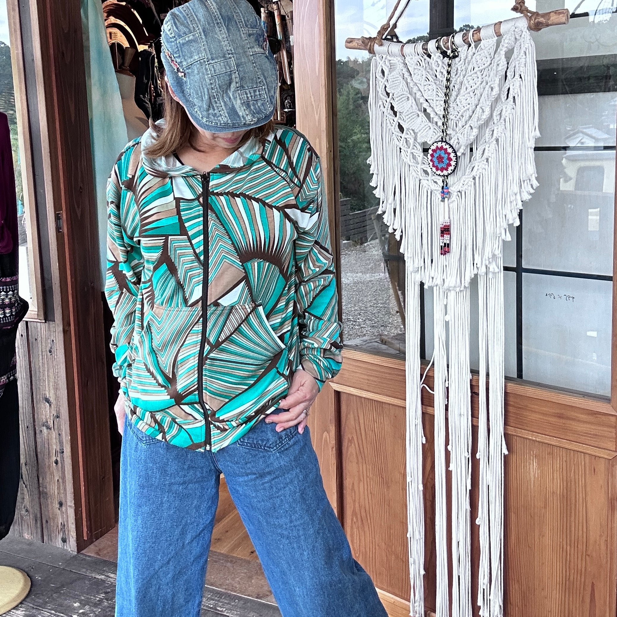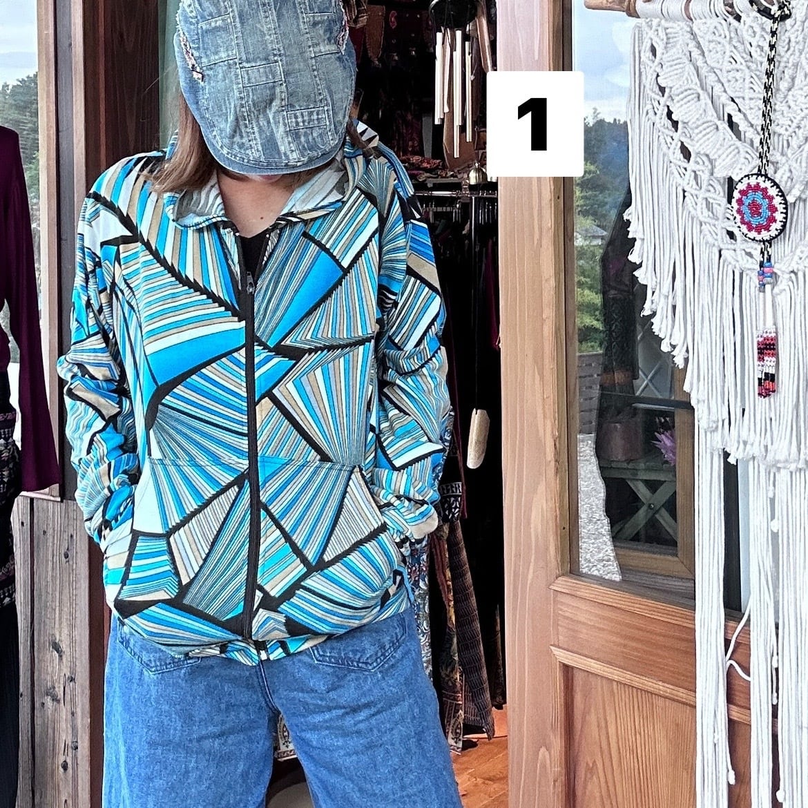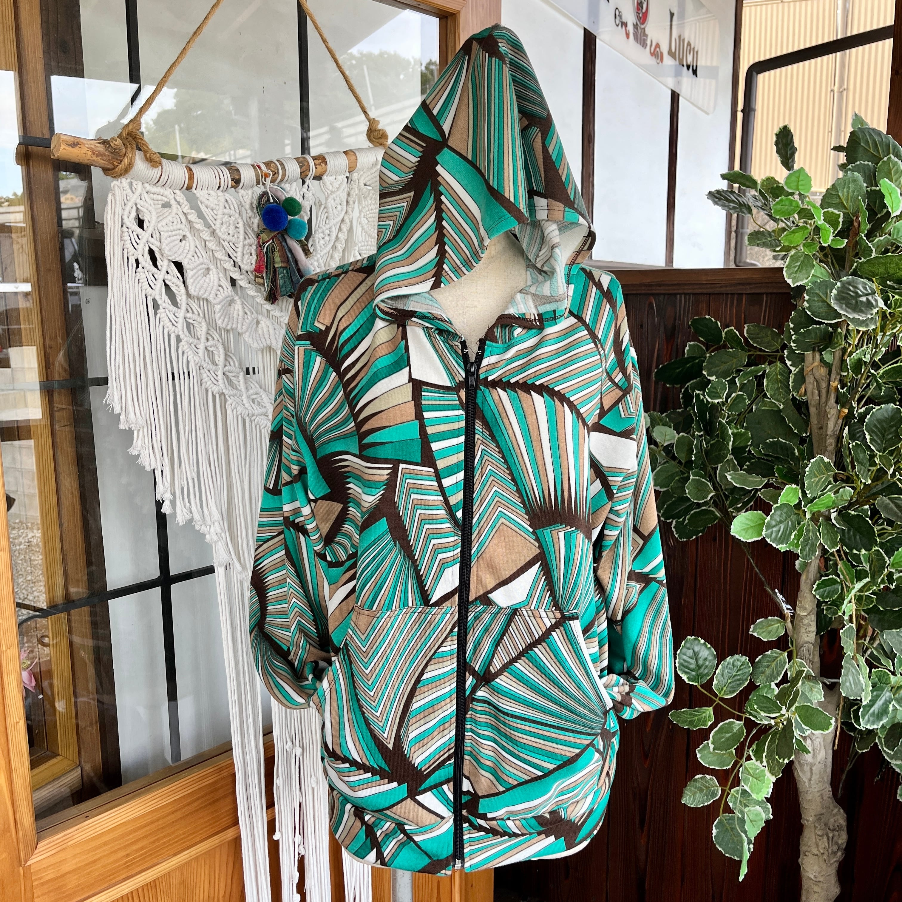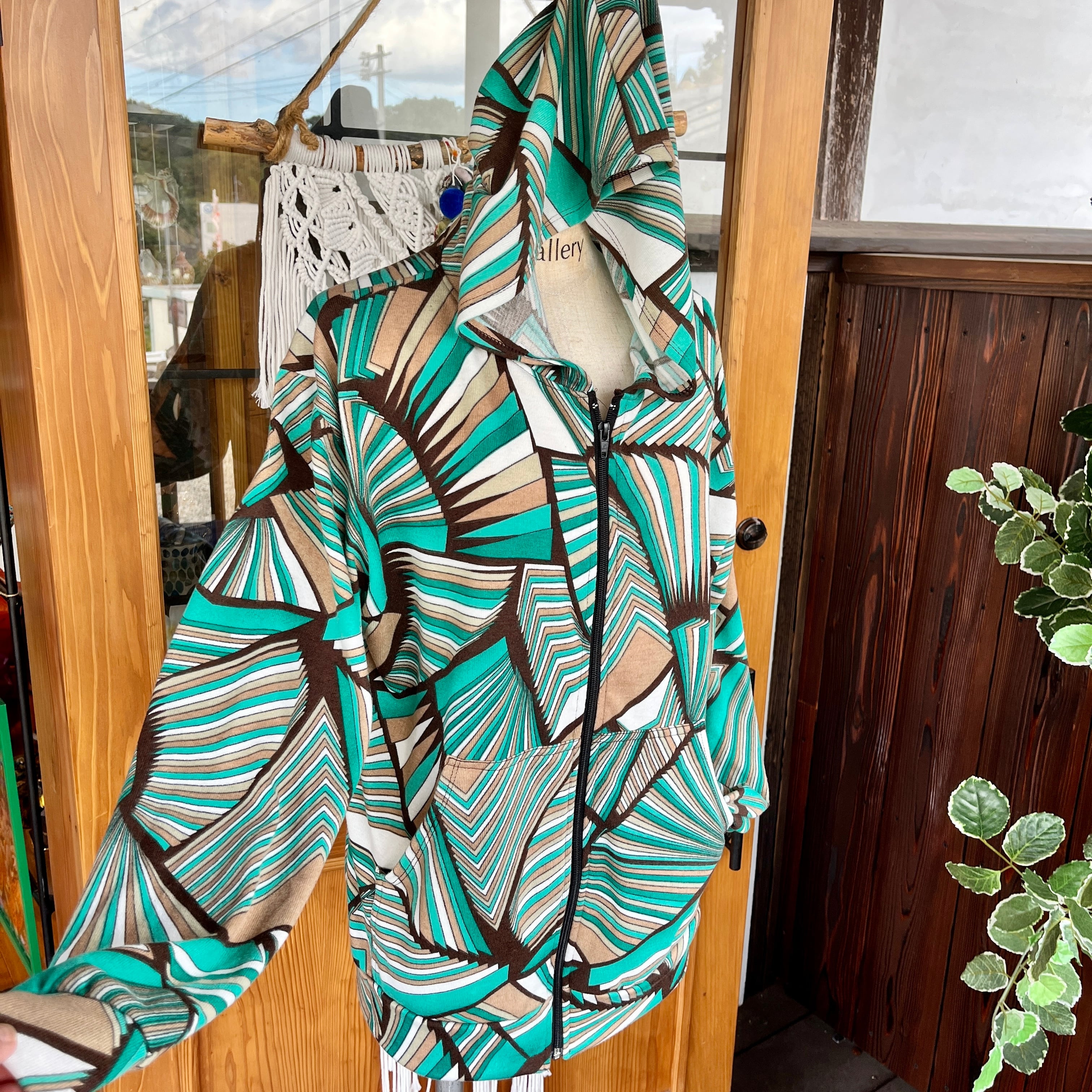 斬新なデザインが魅力のニットパーカー。クールなサイケ柄で注目度アップしそうです