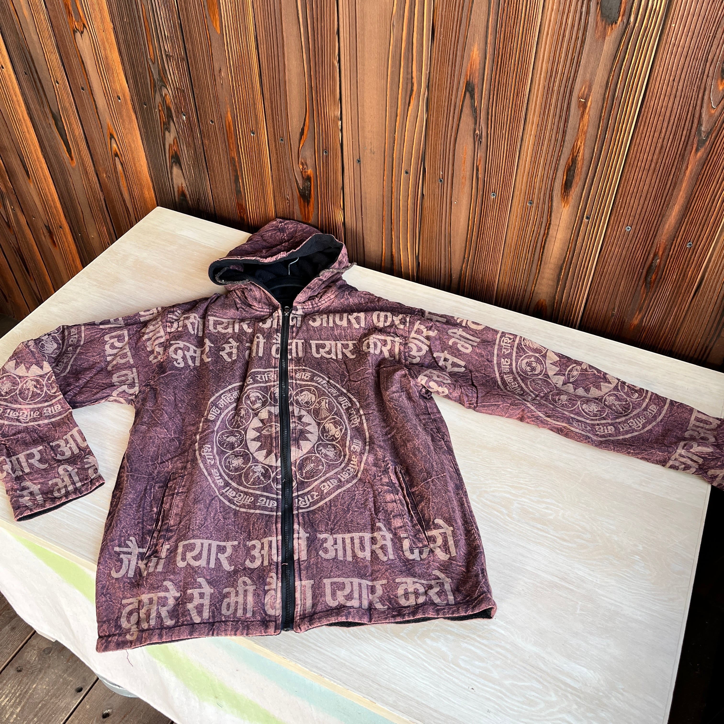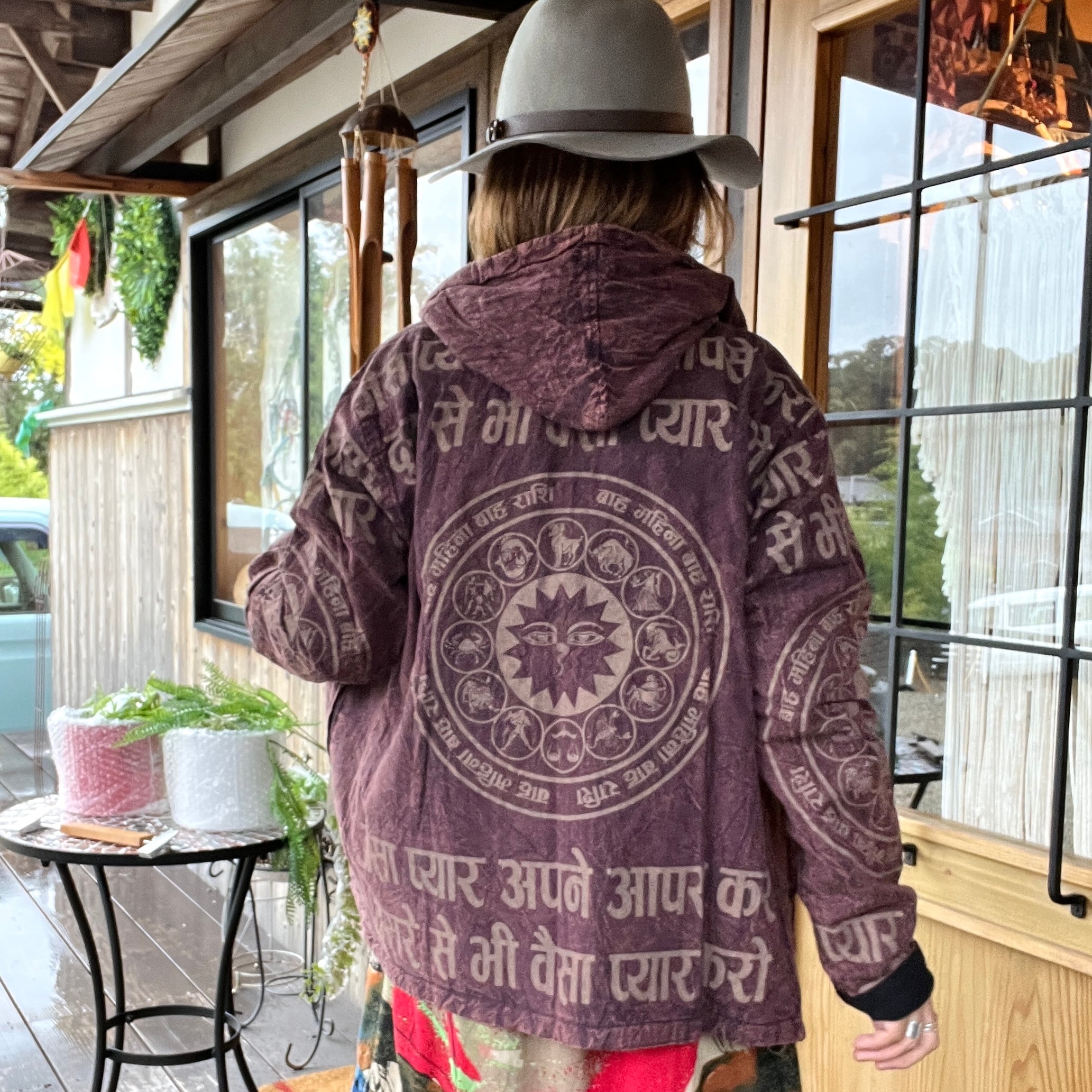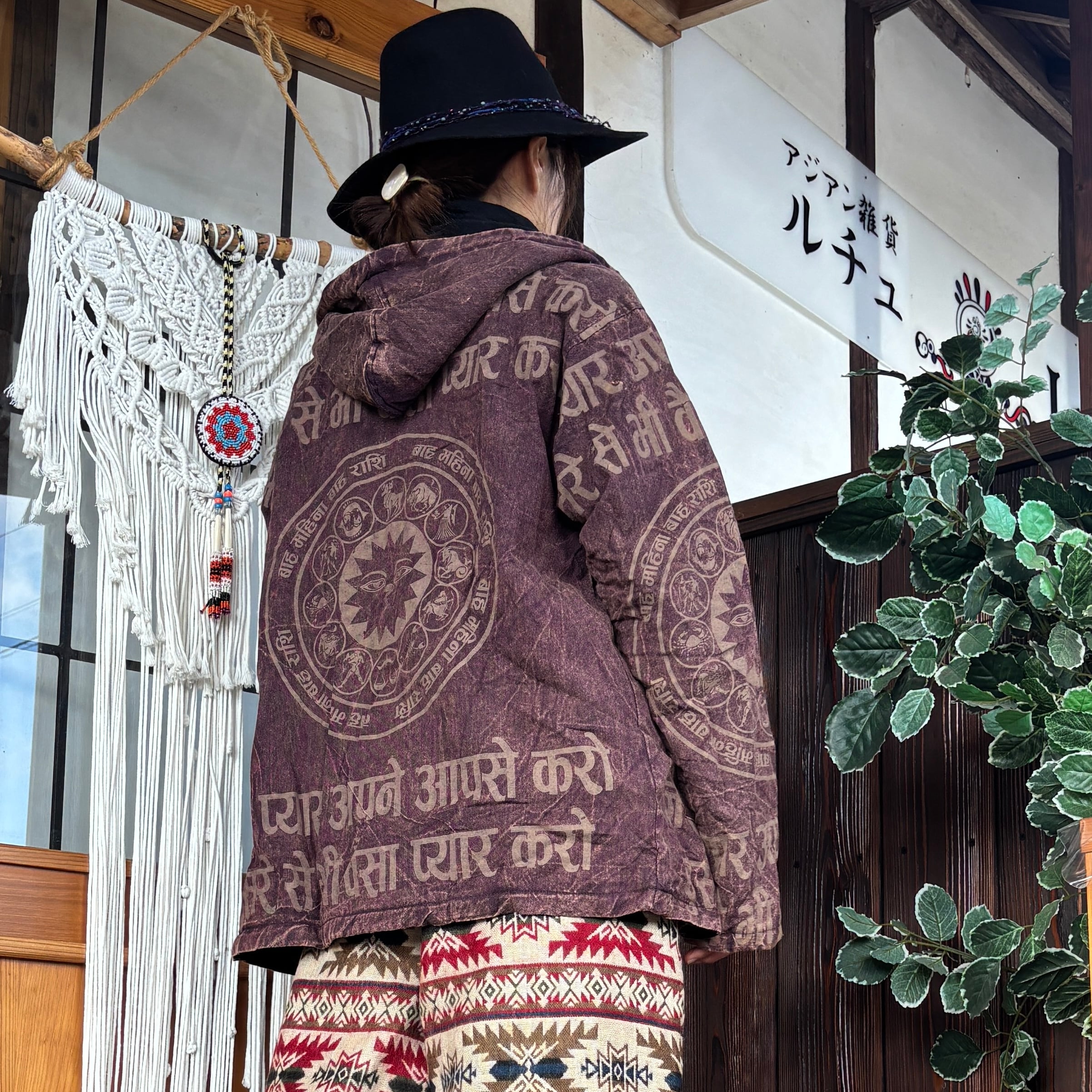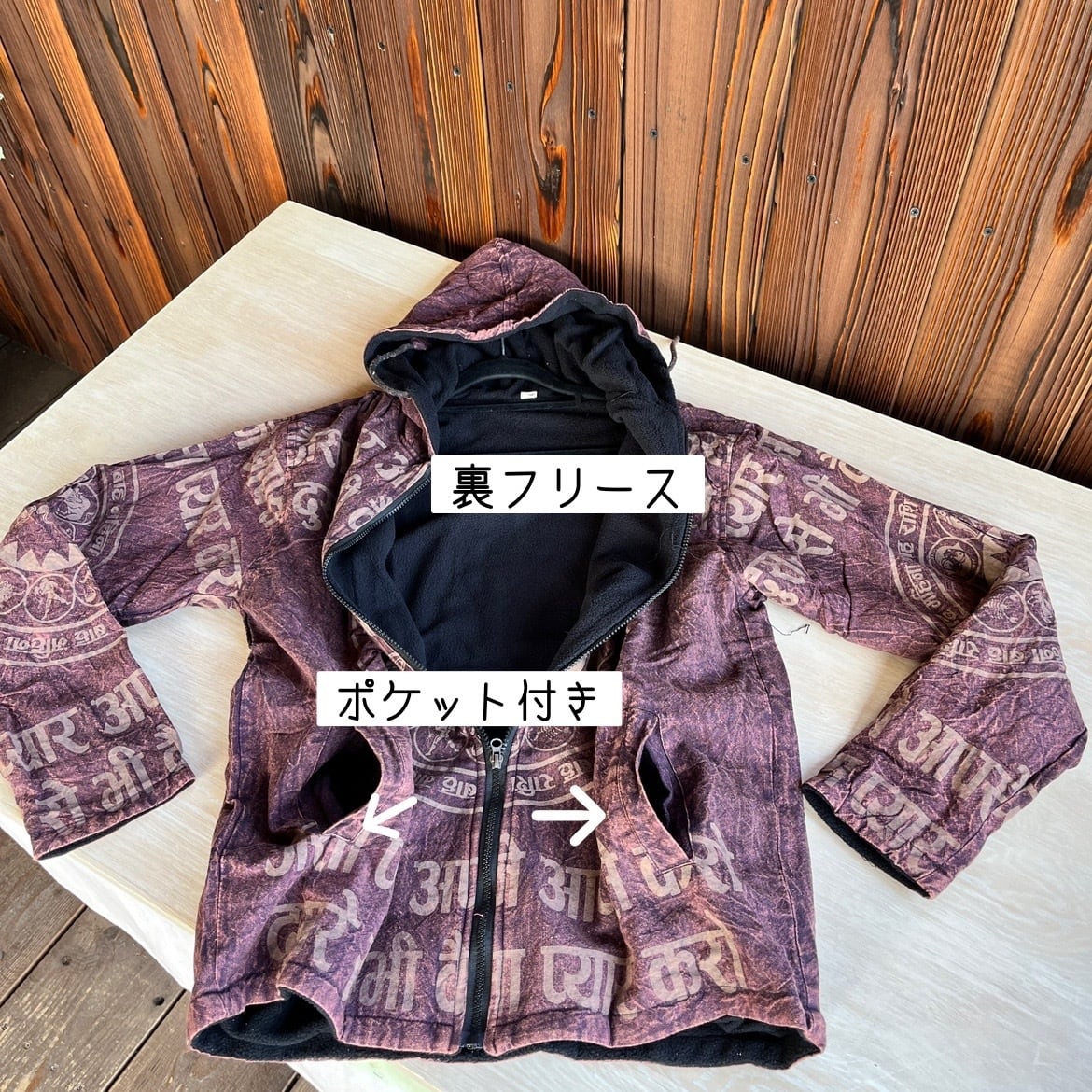 全面に施された「ストーンウォッシュ加工」と「プリント」の組み合わせが、エスニックに魅力をグッと高めてくれます。しっかりとしたコットン生地に加工が施されています。裏地はフリース!! 軽くて暖かく、ストーンウォッシュ加工が渋めですよ!