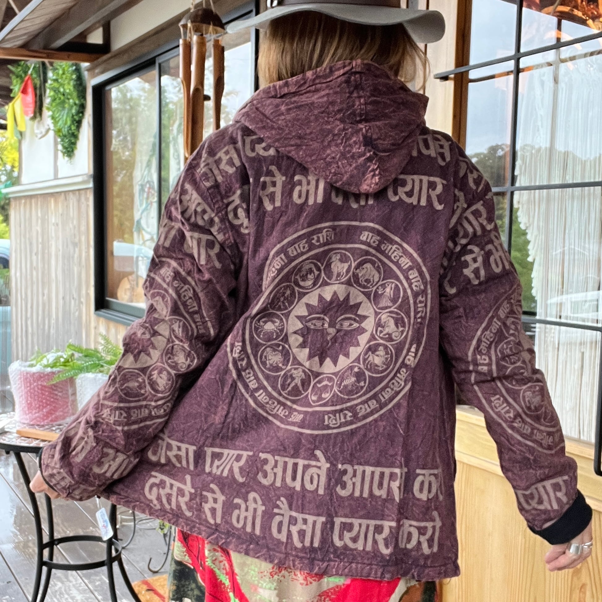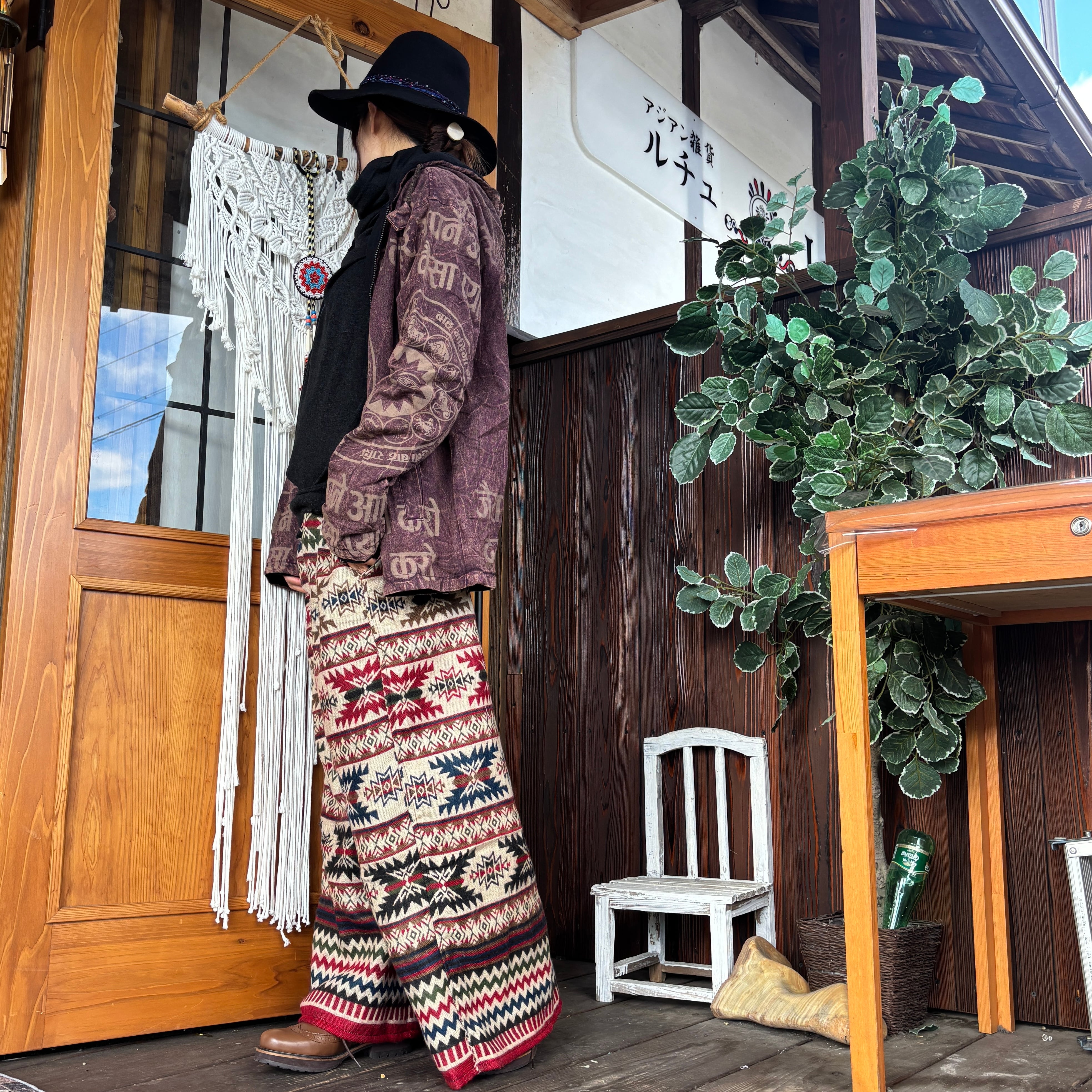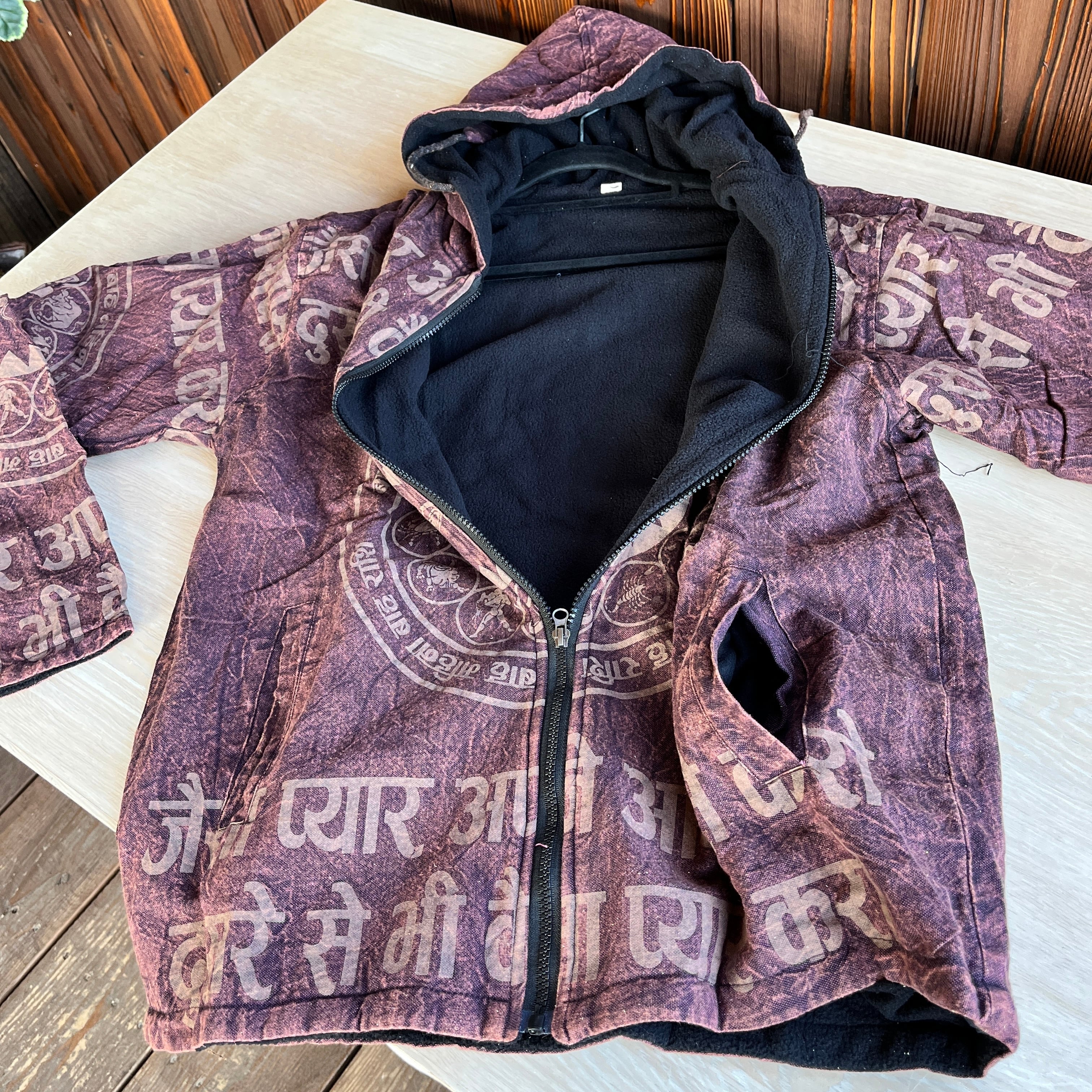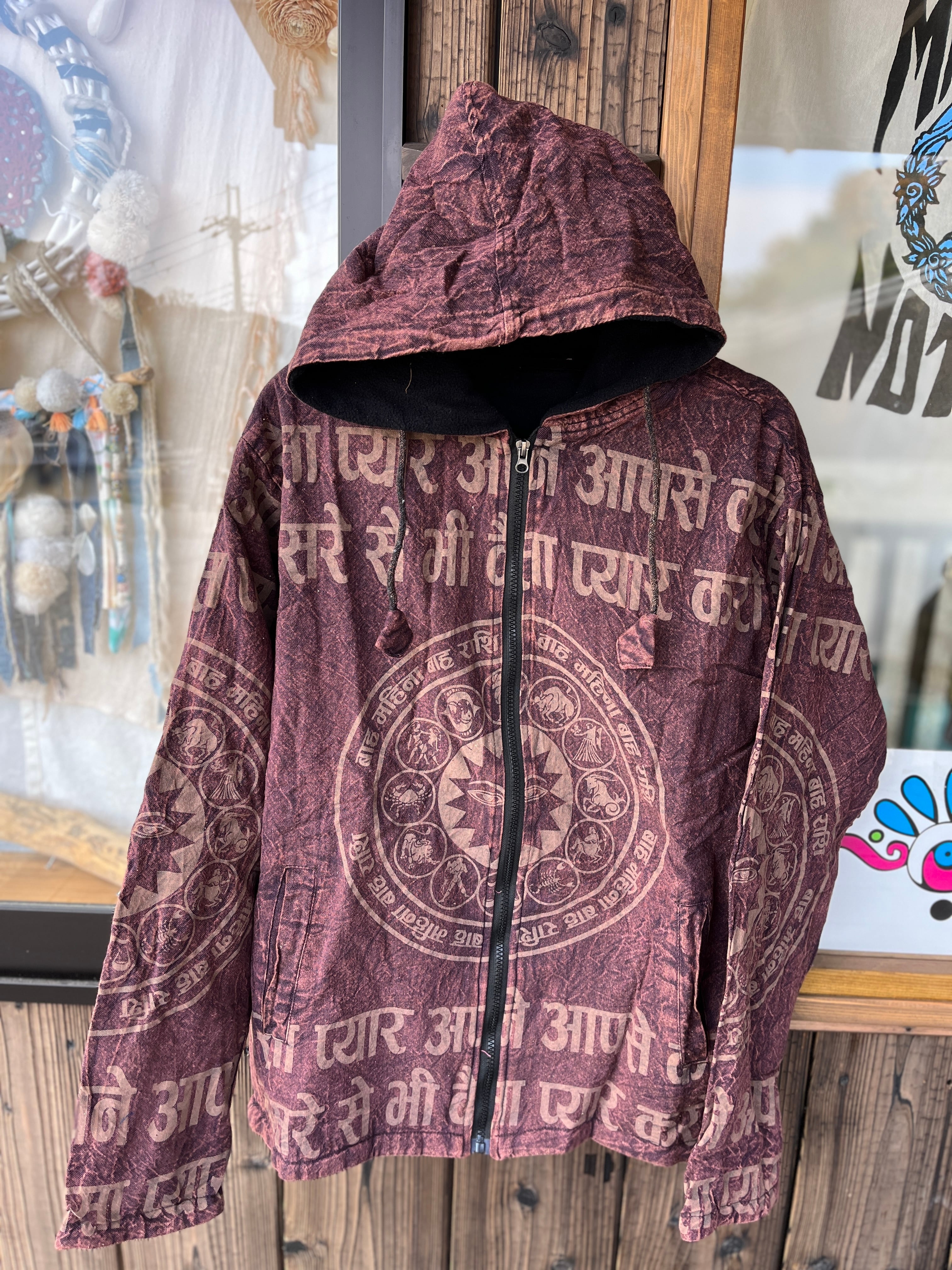 全面に施された「ストーンウォッシュ加工」と「プリント」の組み合わせが、エスニックに魅力をグッと高めてくれます。しっかりとしたコットン生地に加工が施されています。裏地はフリース!! 軽くて暖かく、ストーンウォッシュ加工が渋めですよ!