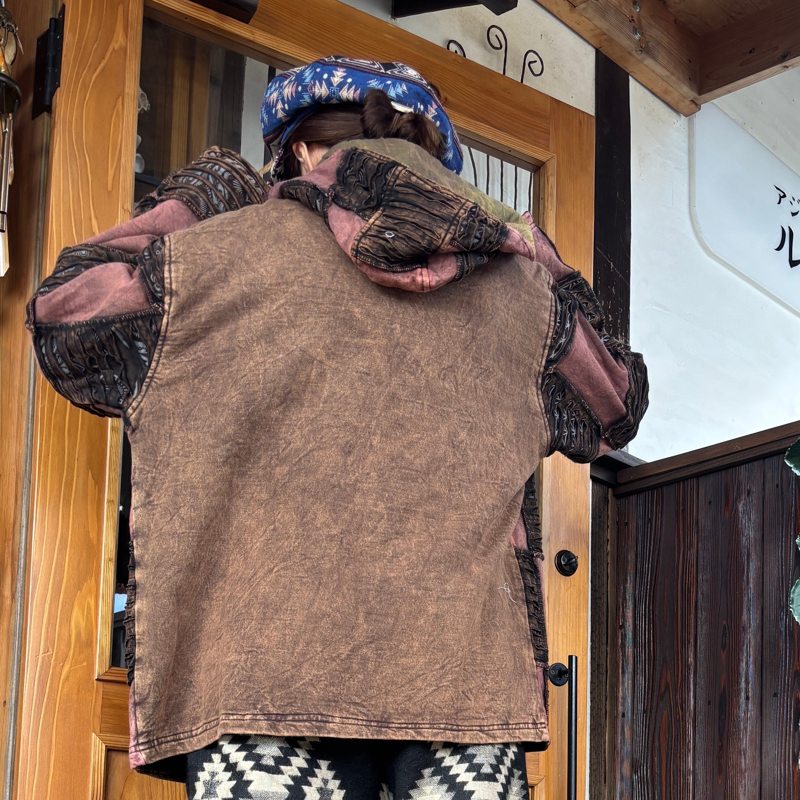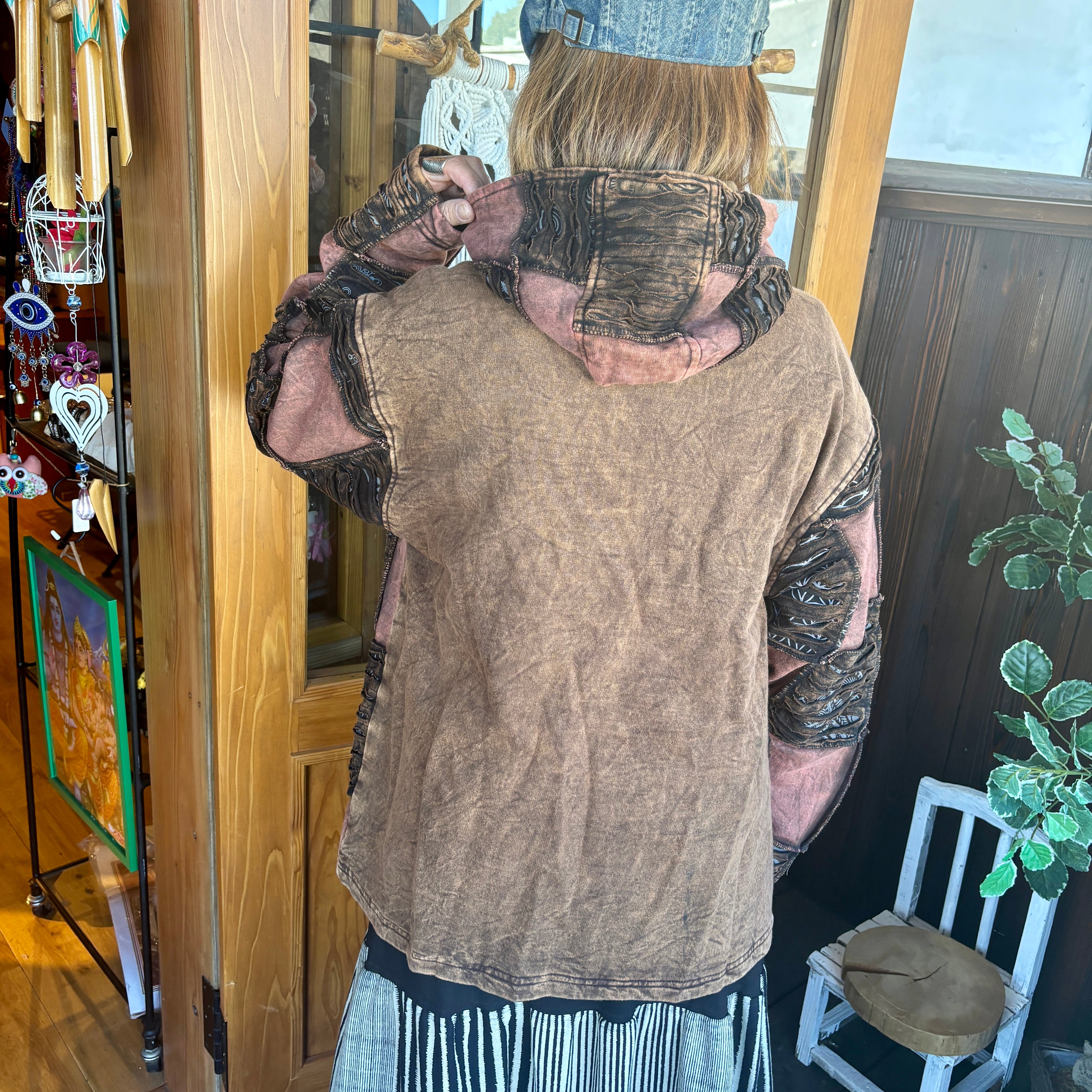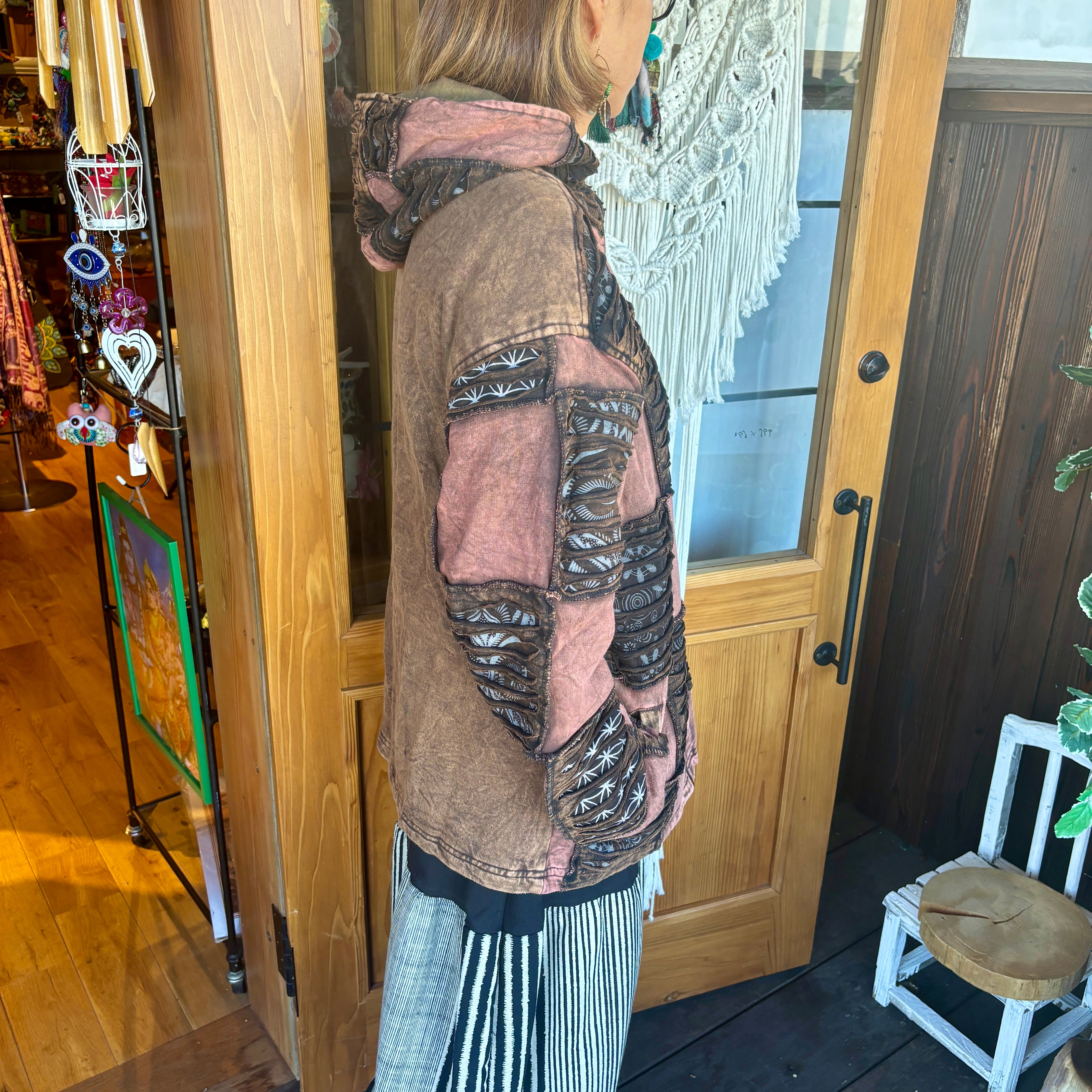 しっかりとしたコットン素材で作られたパッチワークパーカー。